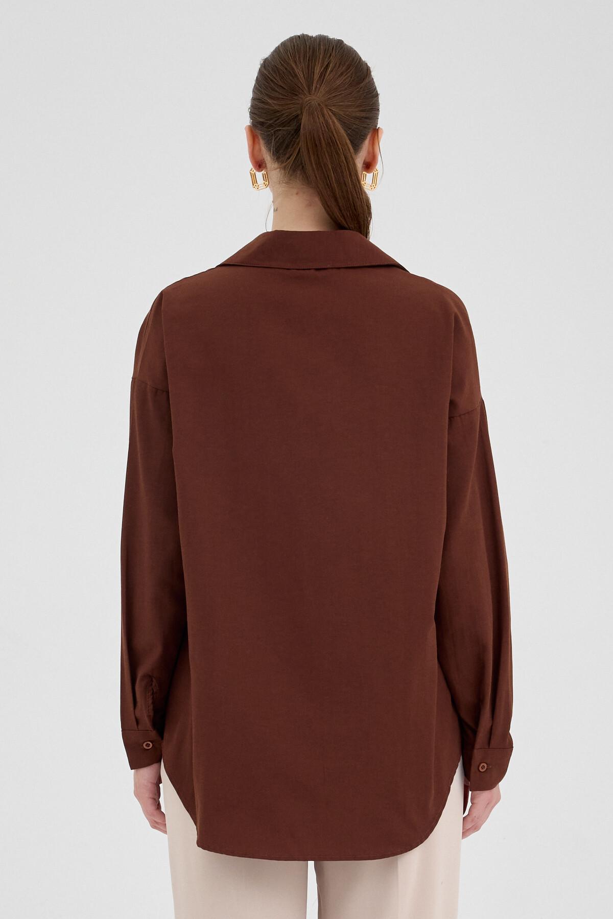 Kahve Tek Cepli Oversize Gömlek 8158A