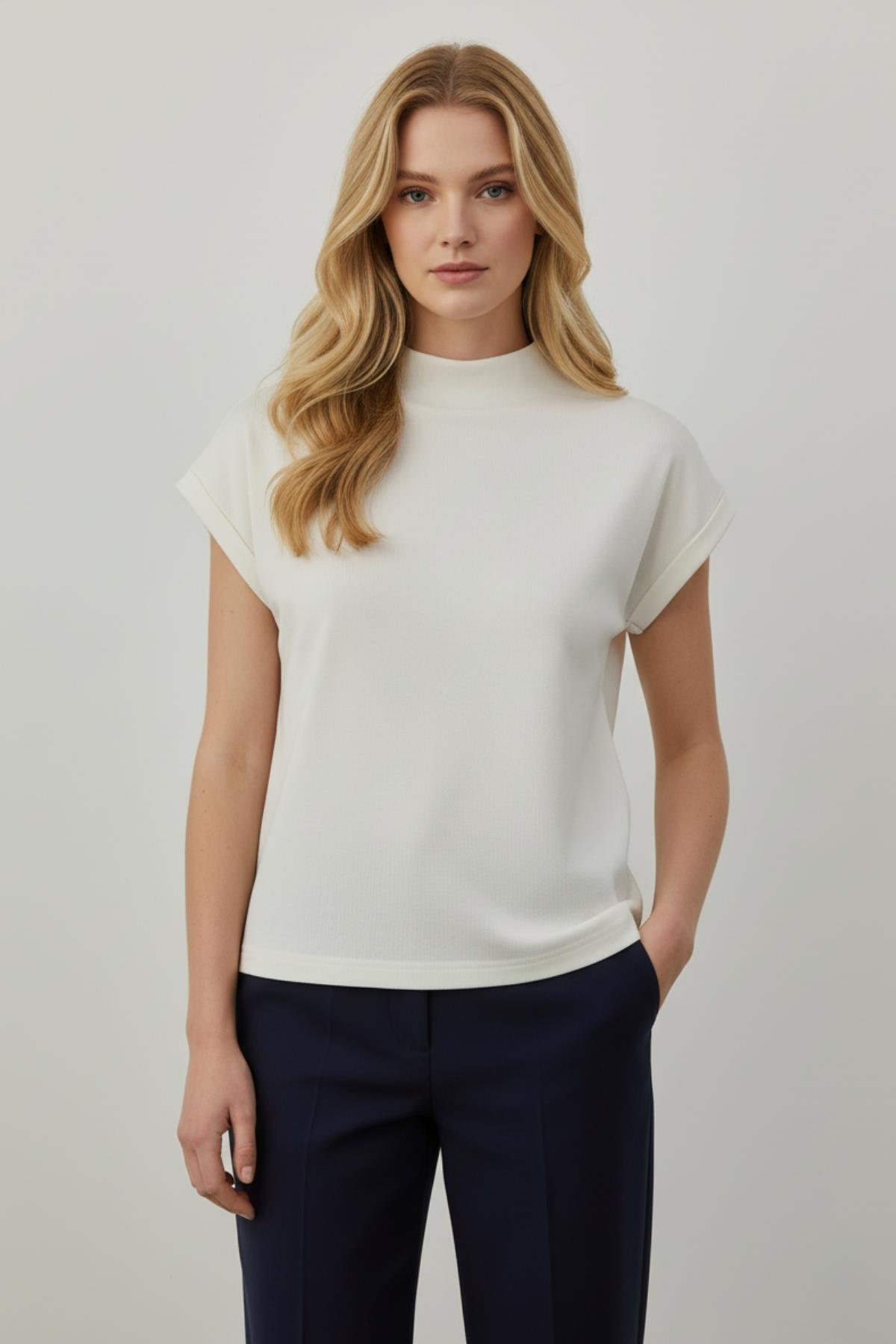 8174A Dik Yaka Kısa Kol Badi Ekru