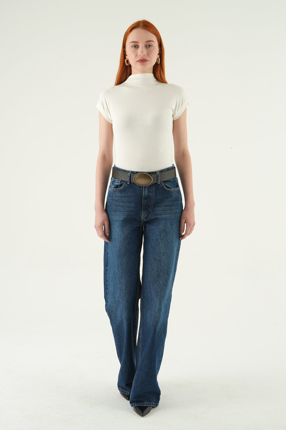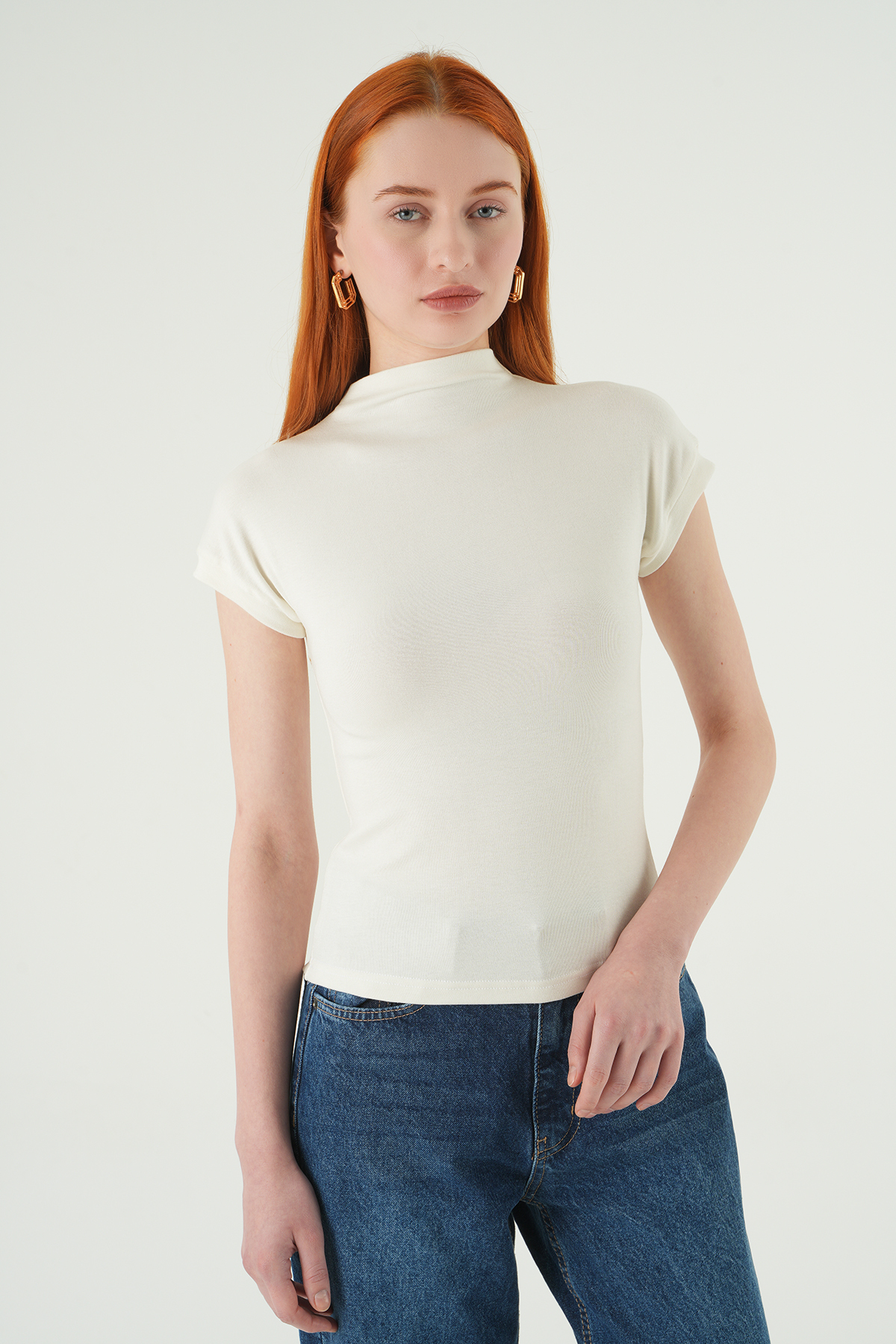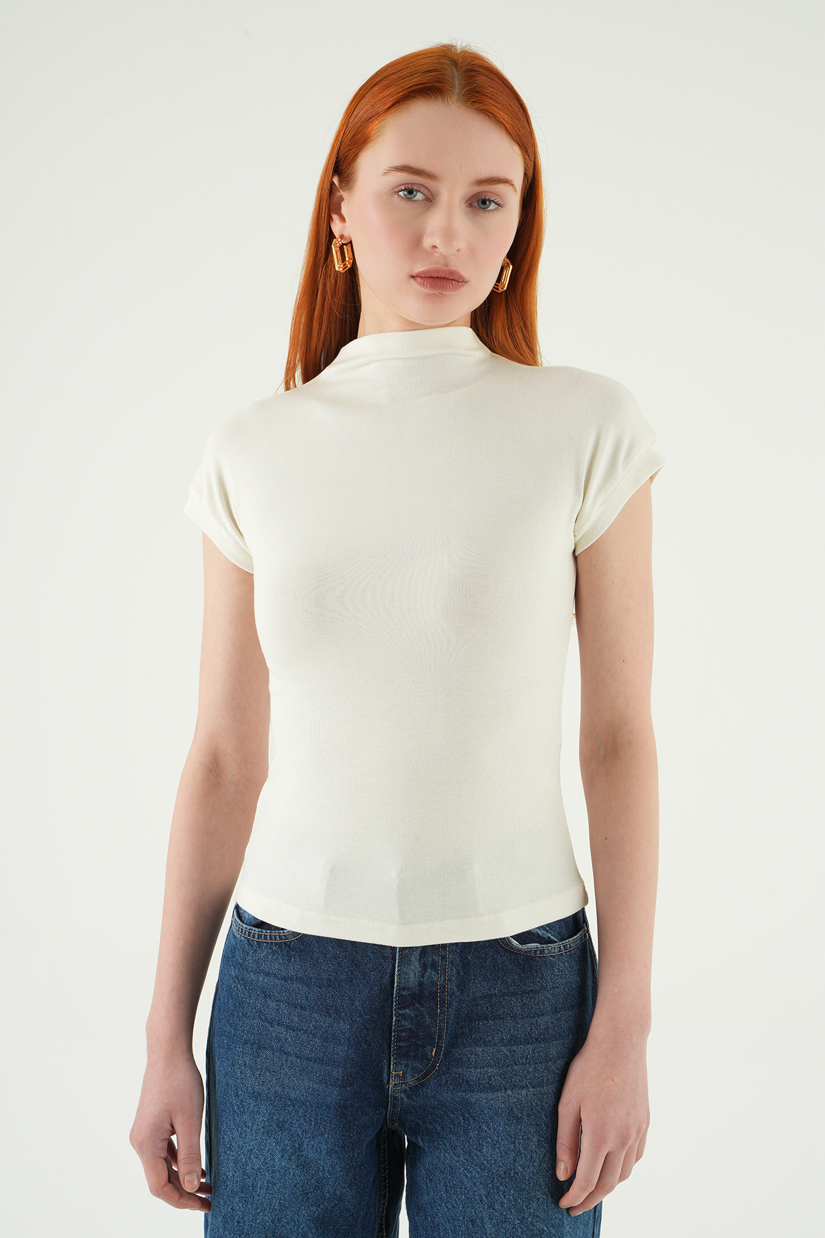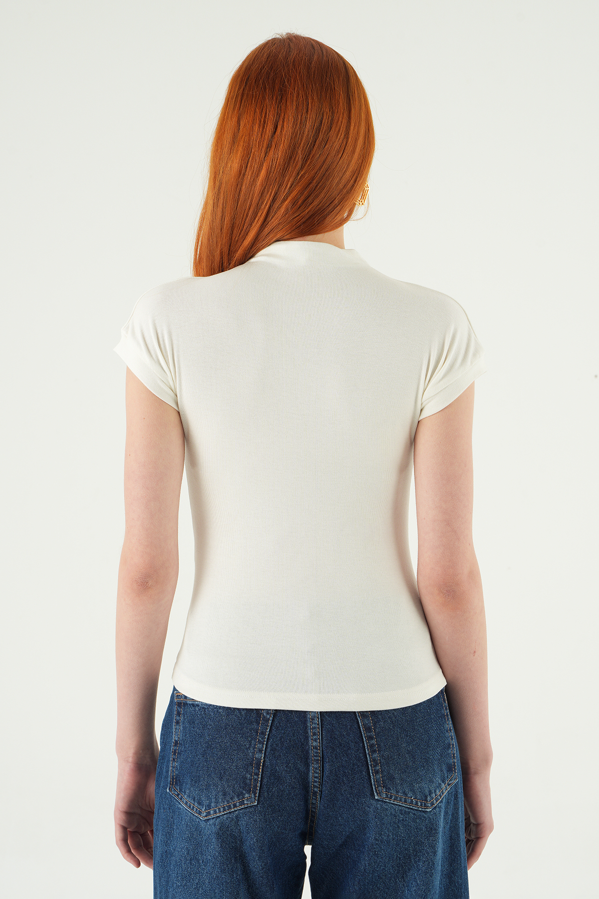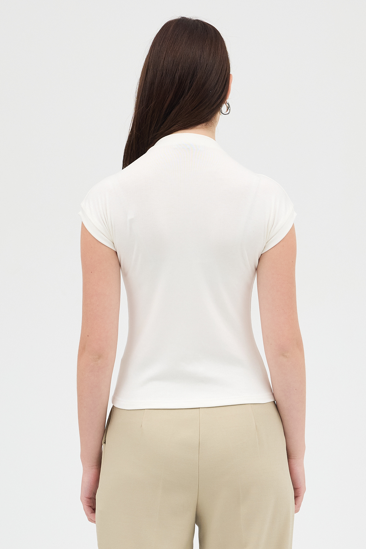 Ekru Dik Yaka Kısa Kol Body 8174A
