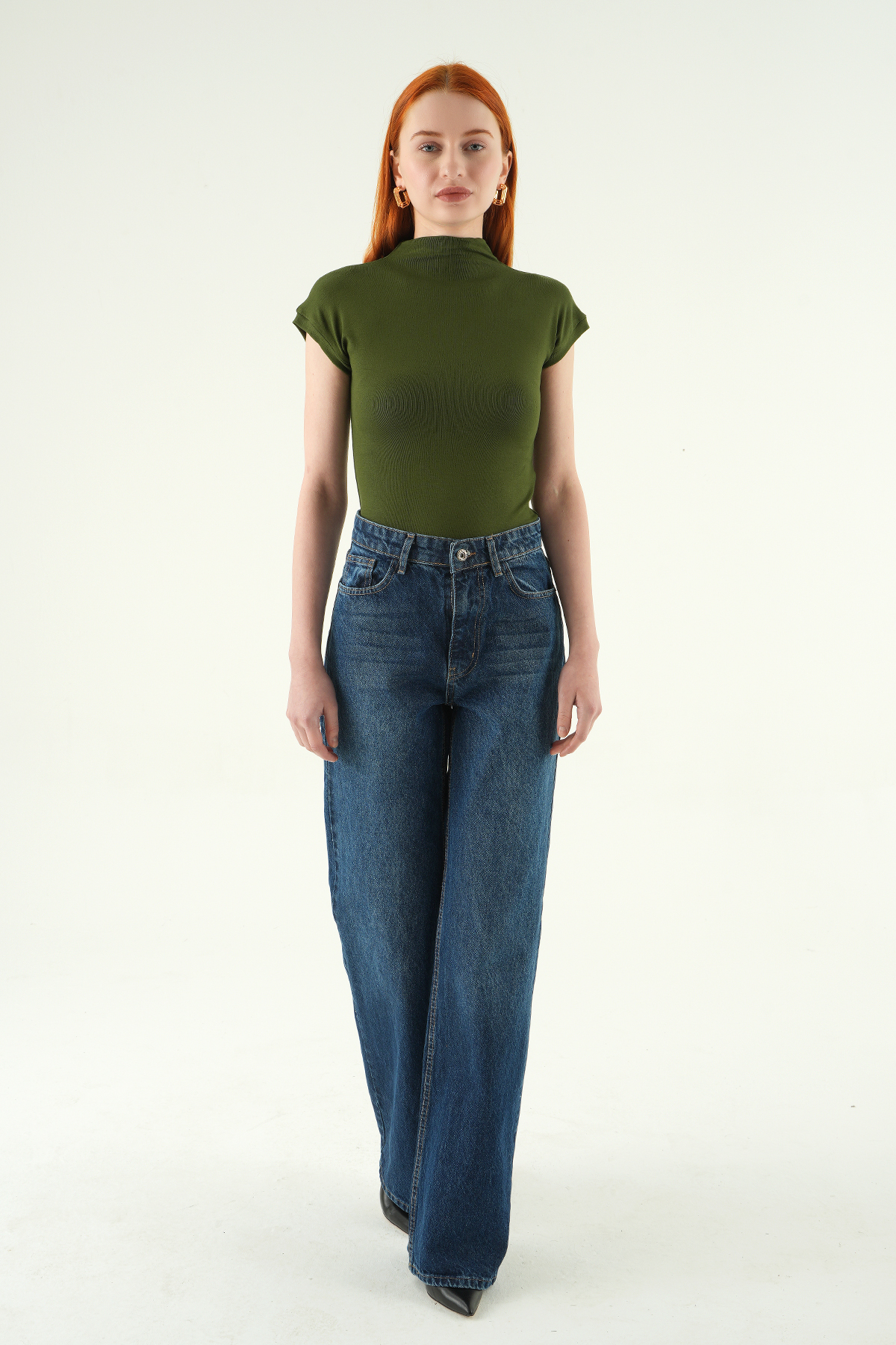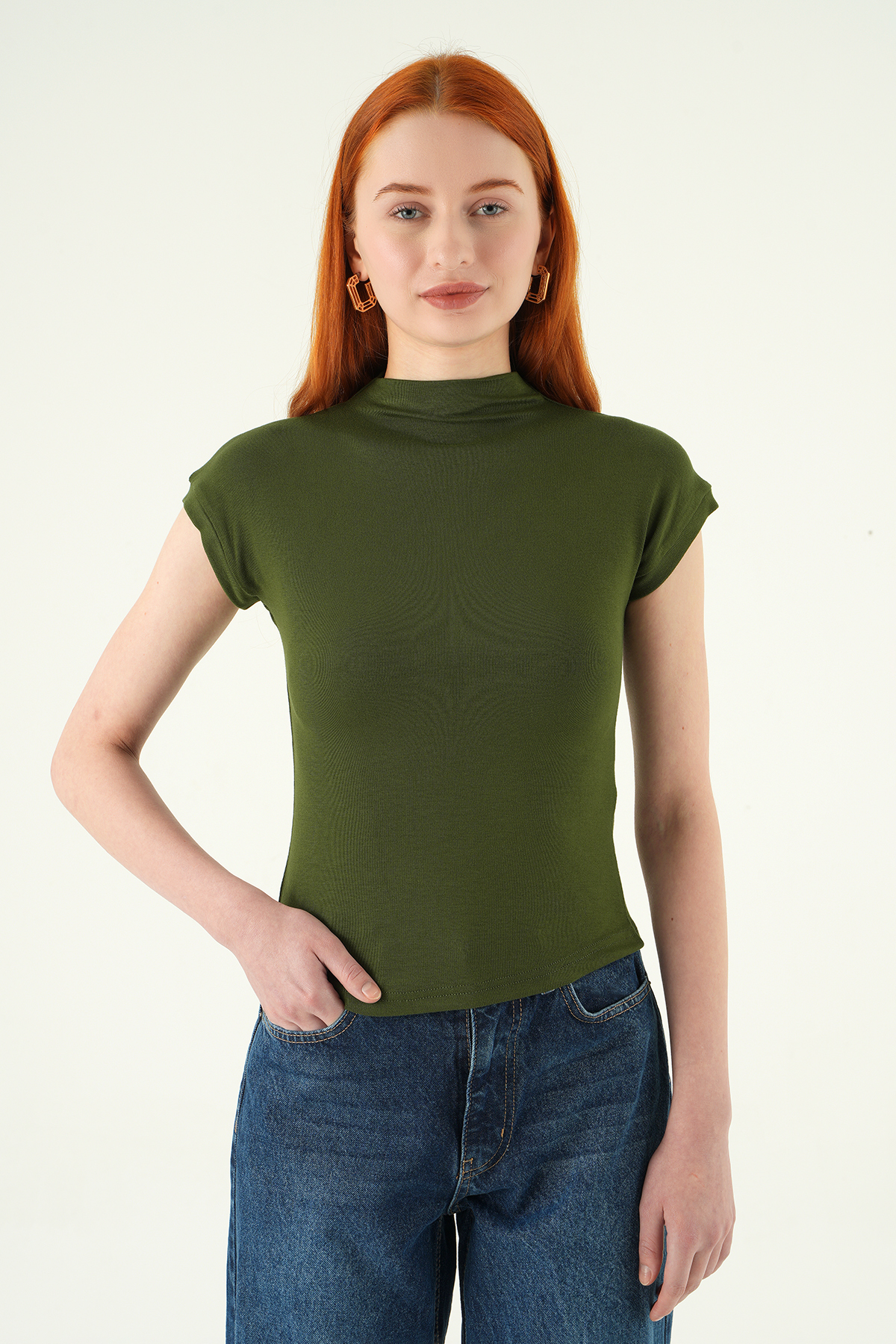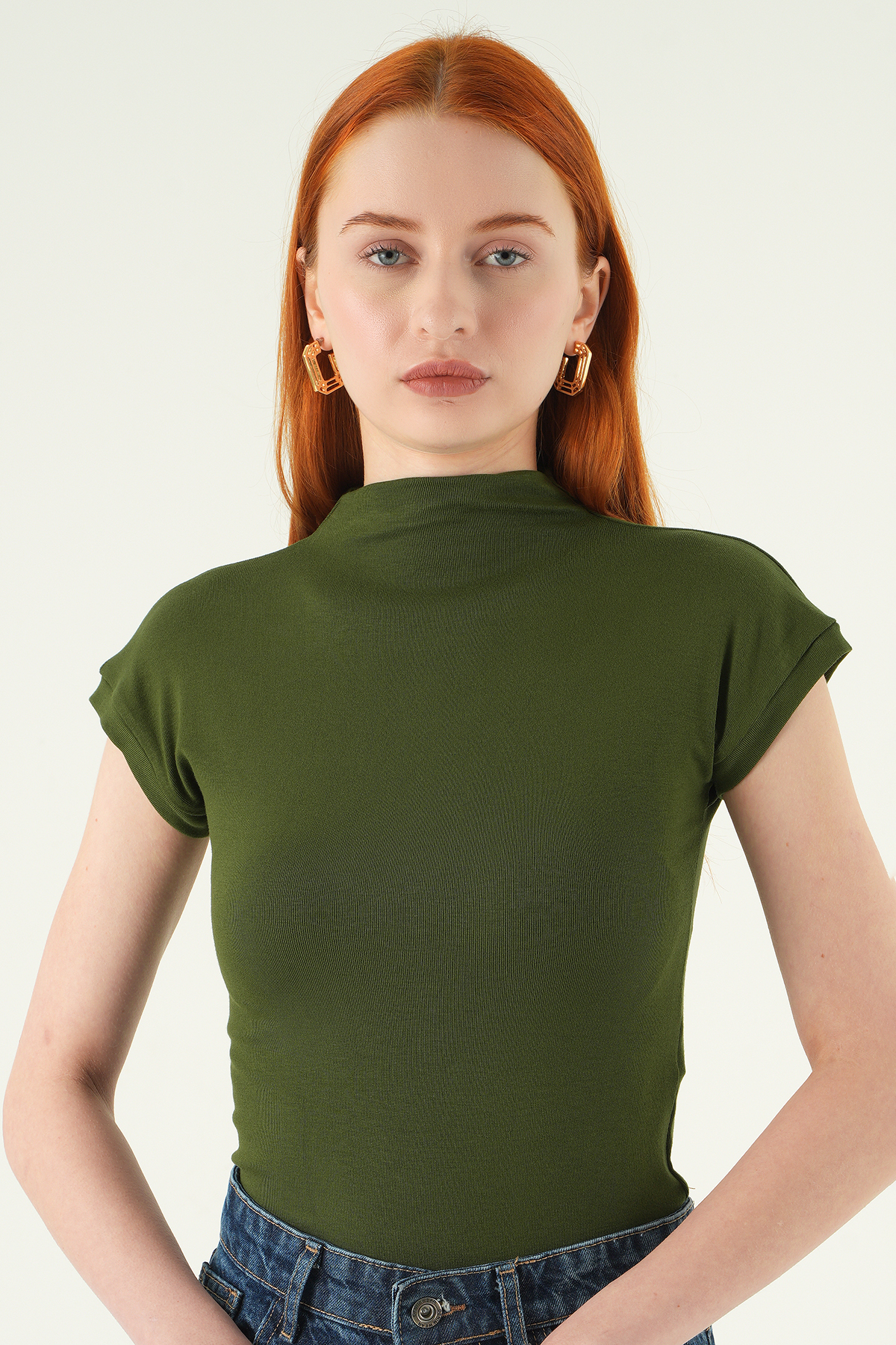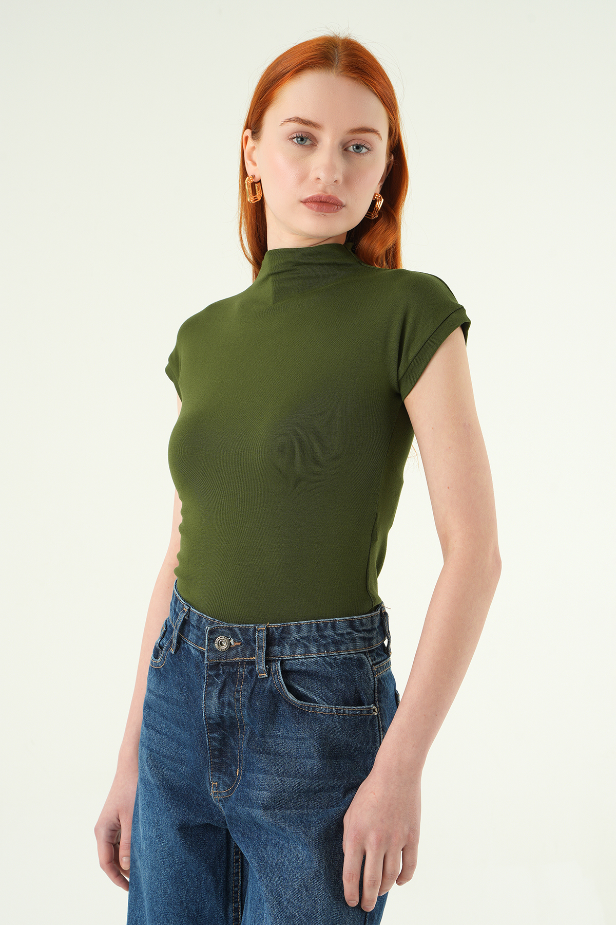 8174A Dik Yaka Kısa Kol Badi Haki