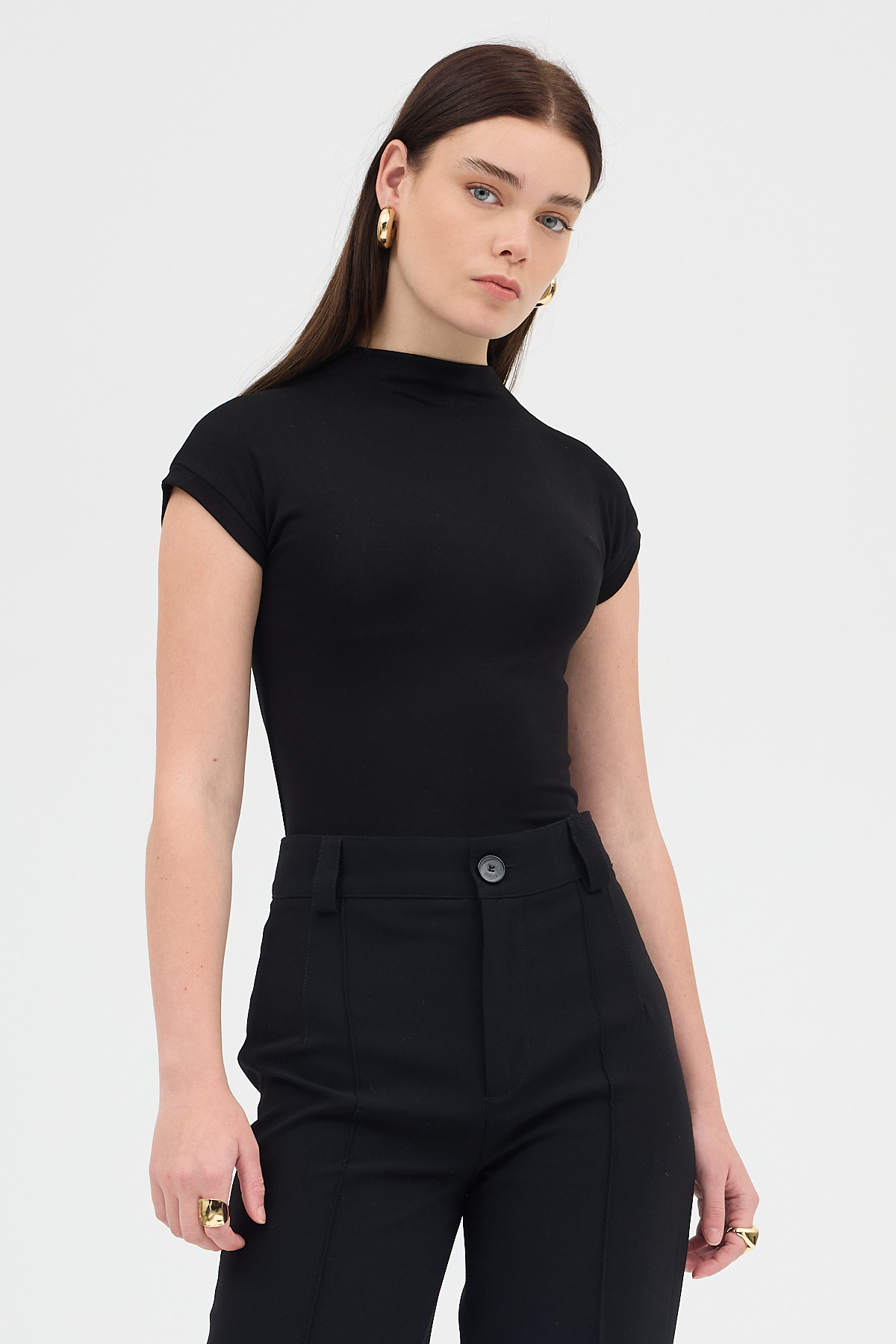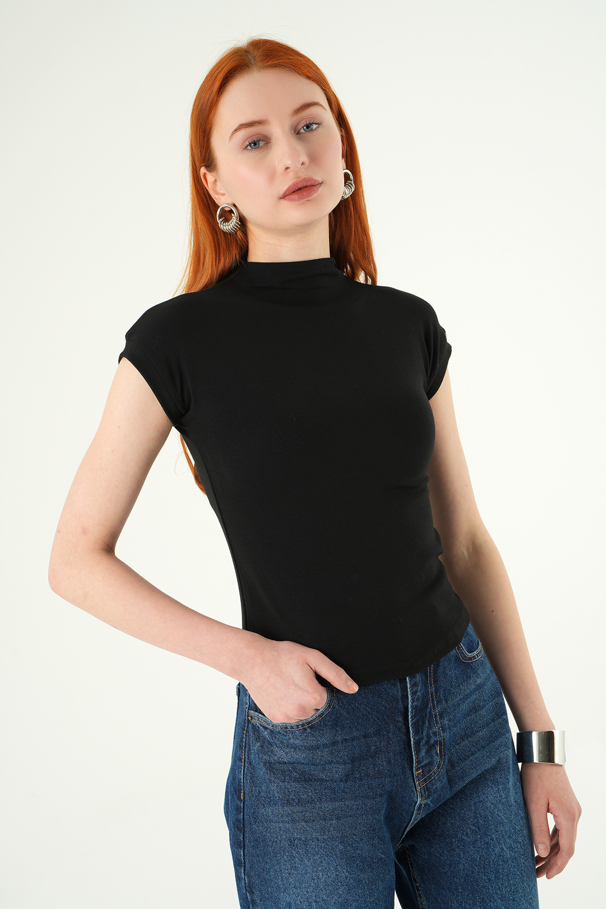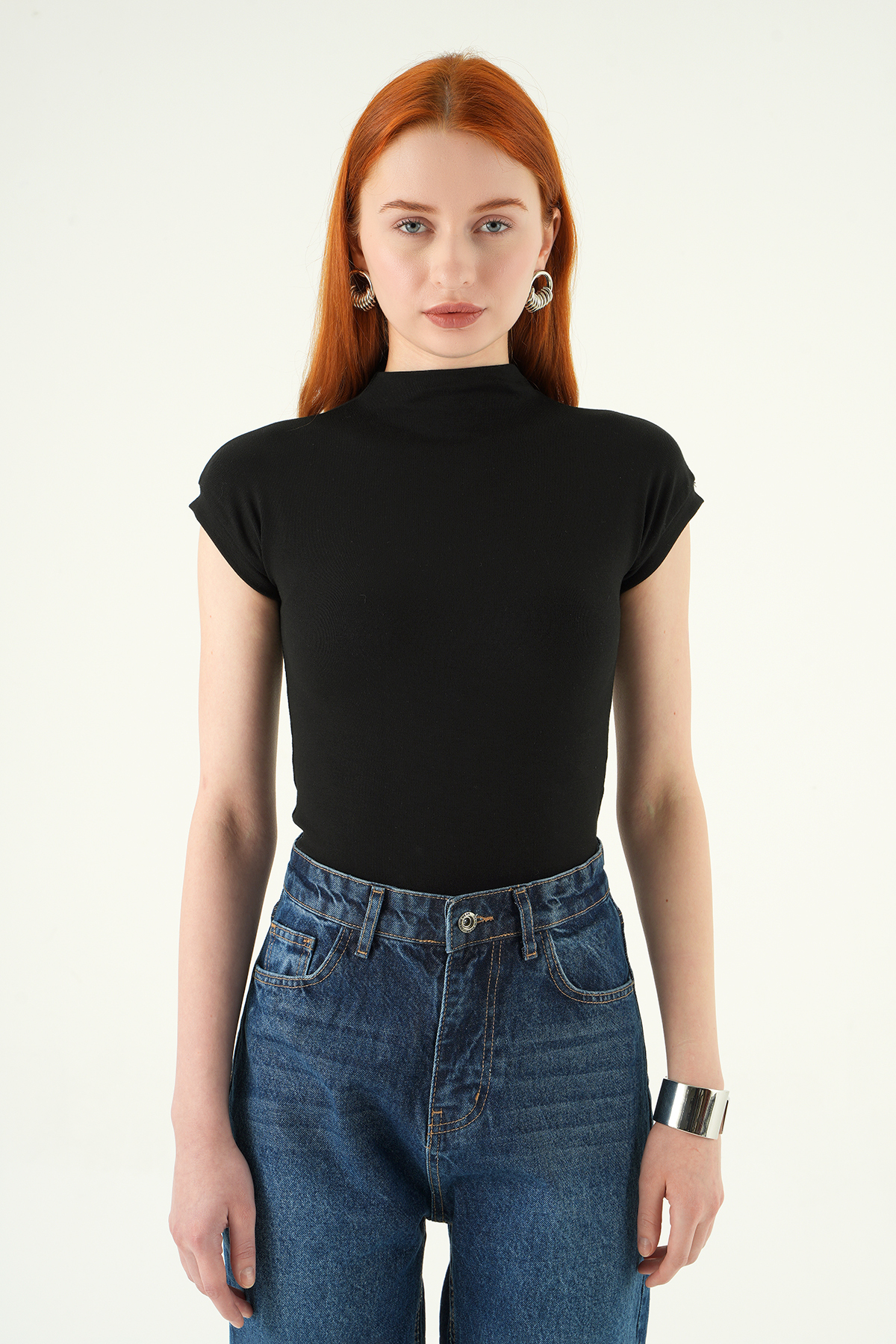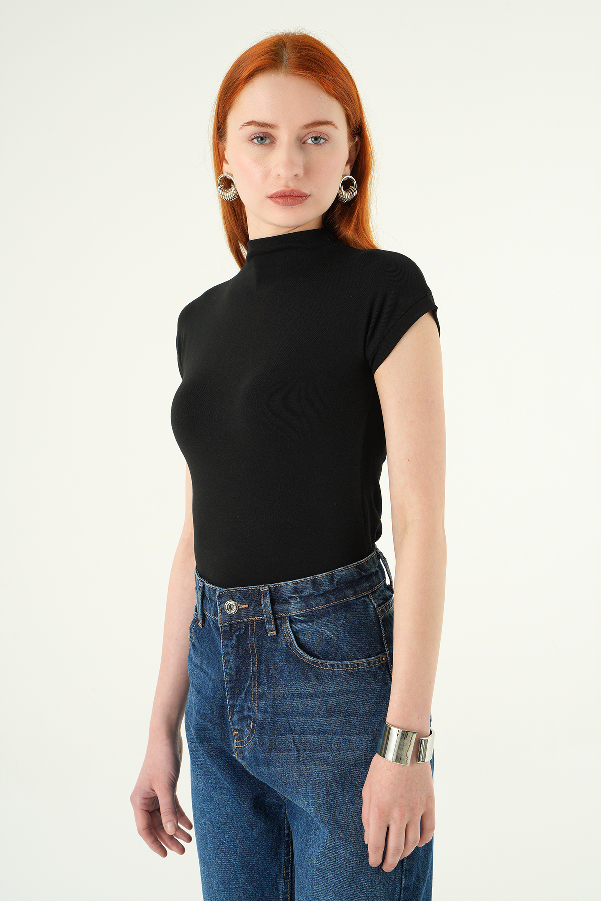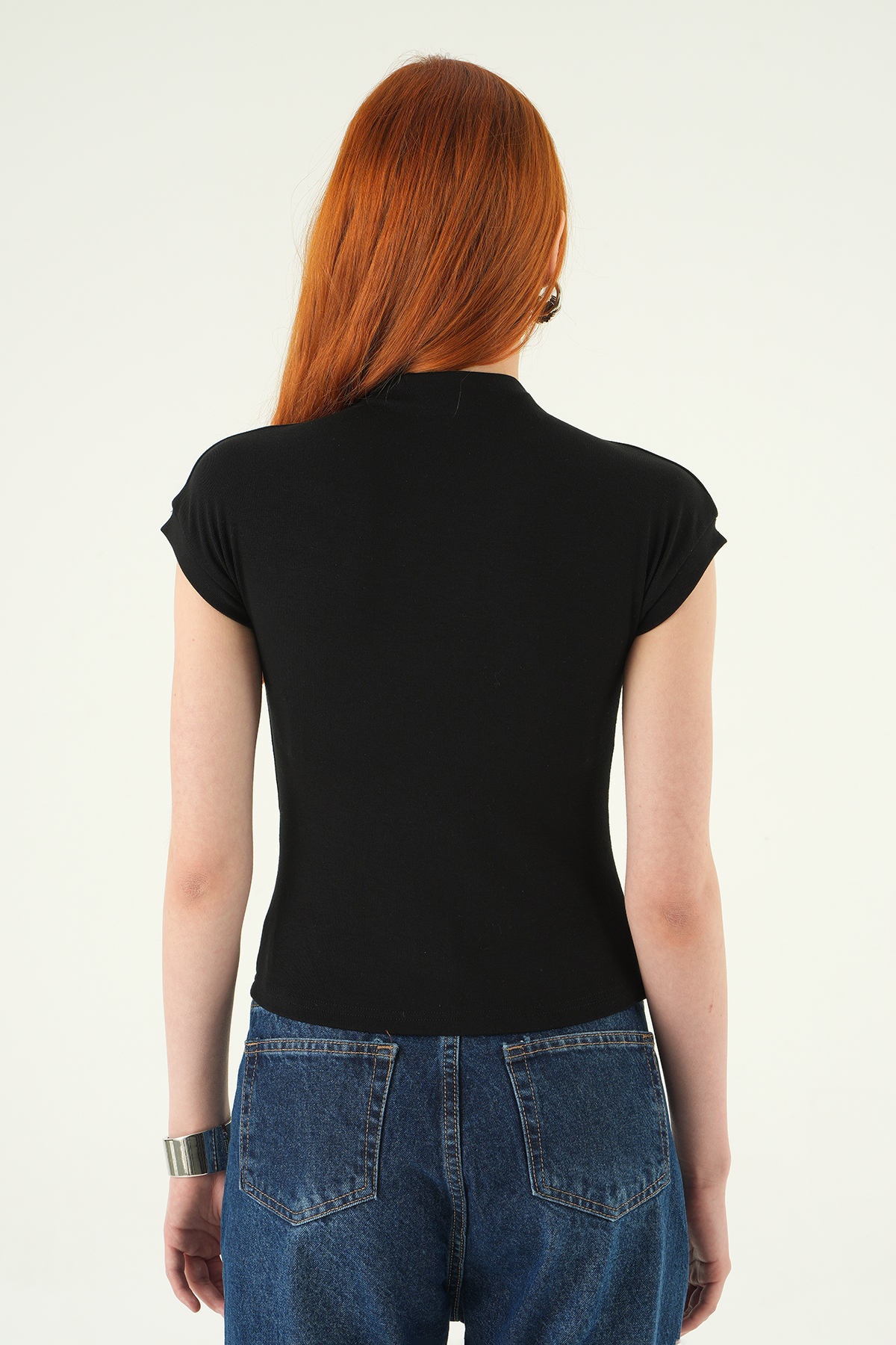 Siyah Dik Yaka Kısa Kol Body 8174A