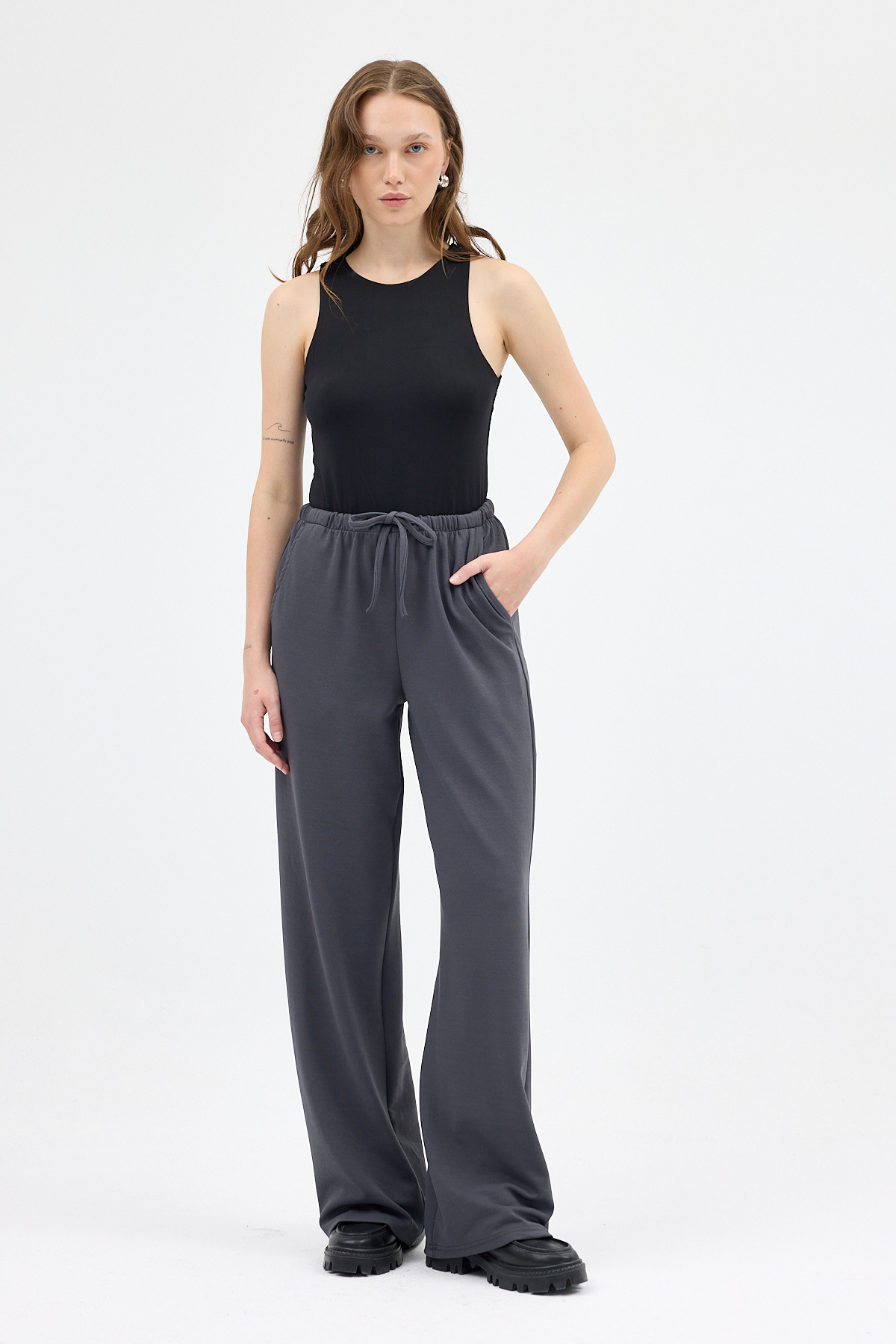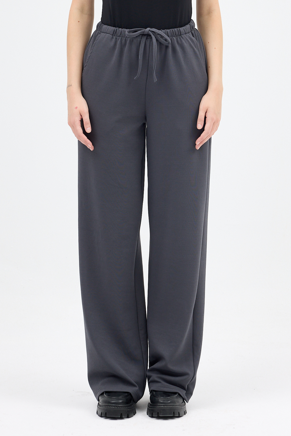 Antrasit Bel Lastikli Bol Paça Kadın Pantolon 8194A
