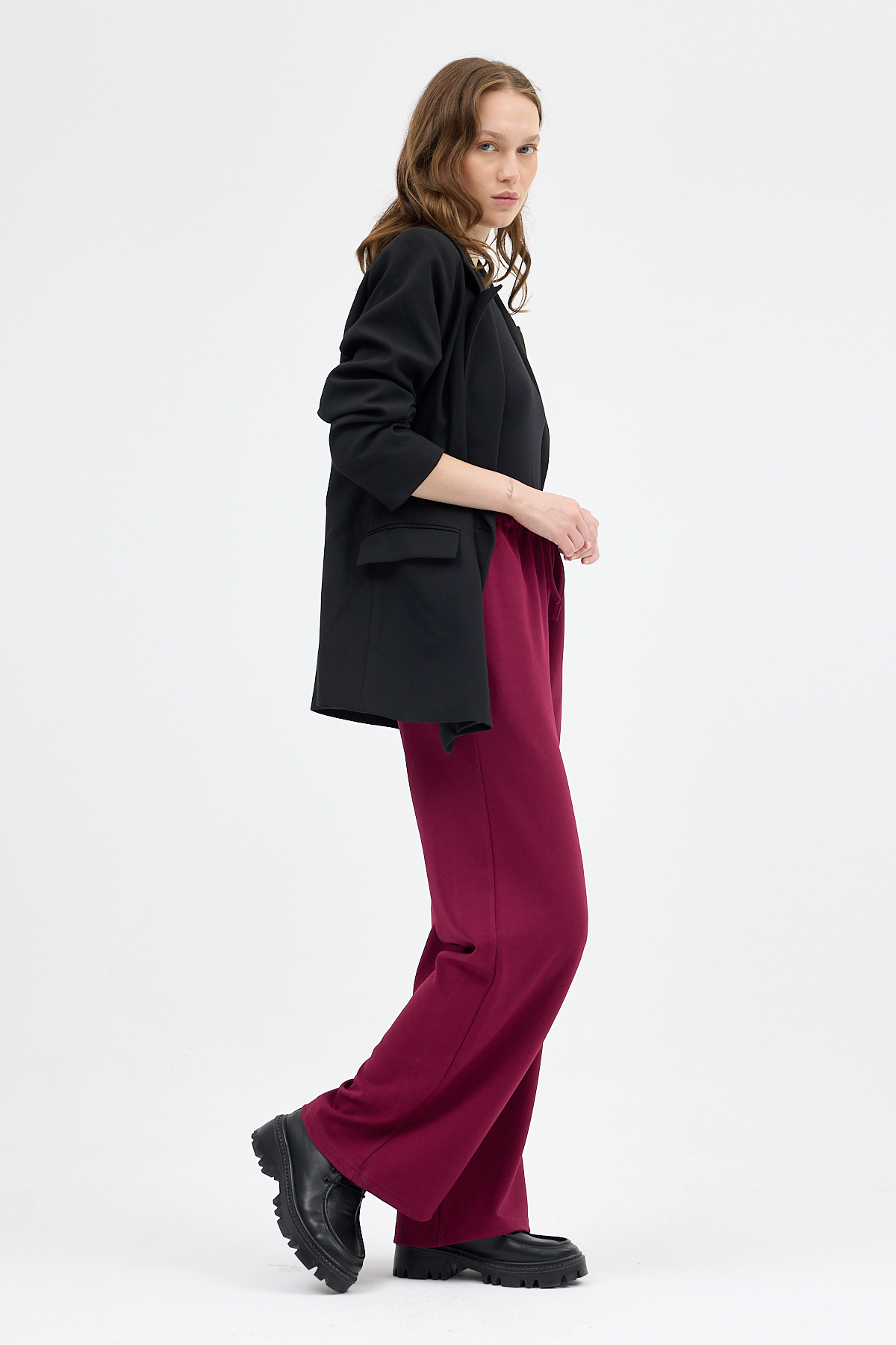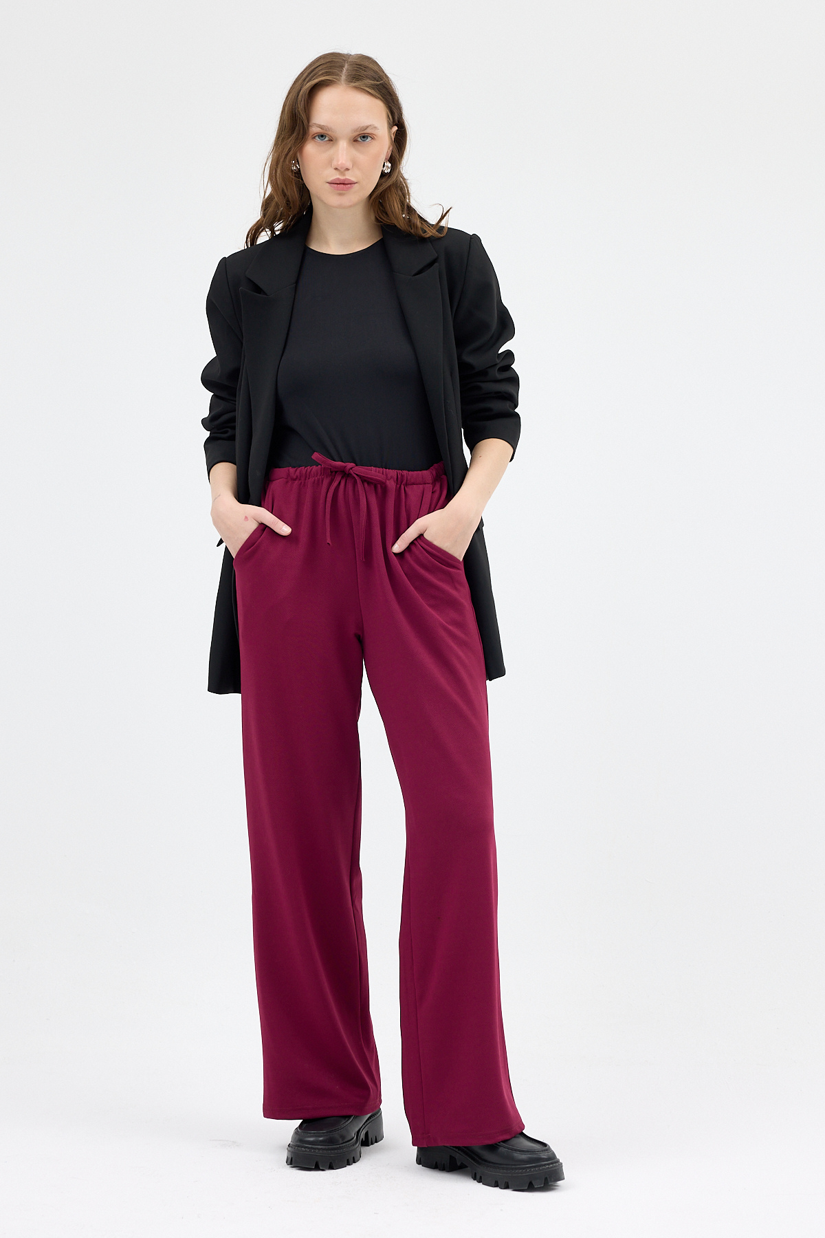 Bordo Bel Lastikli Bol Paça Kadın Pantolon 8194A