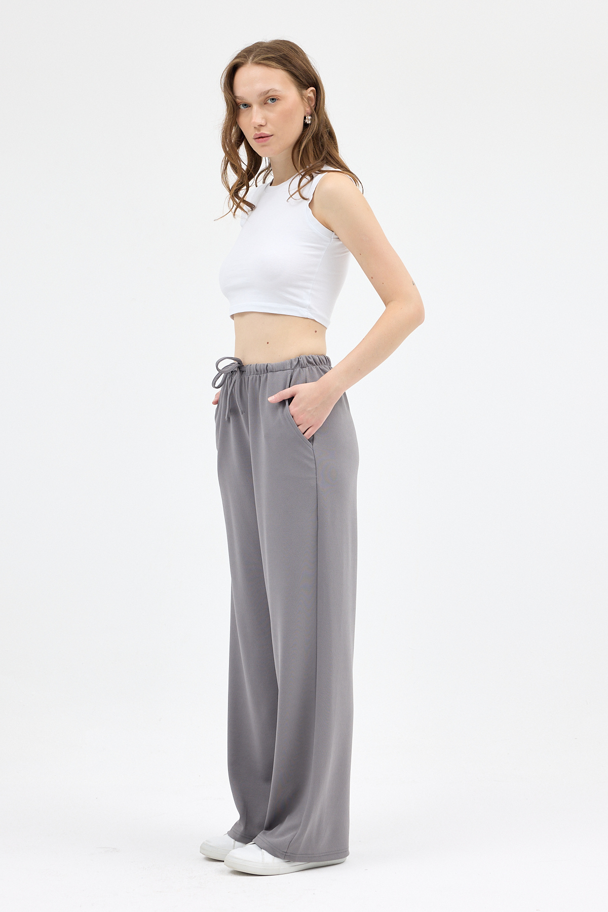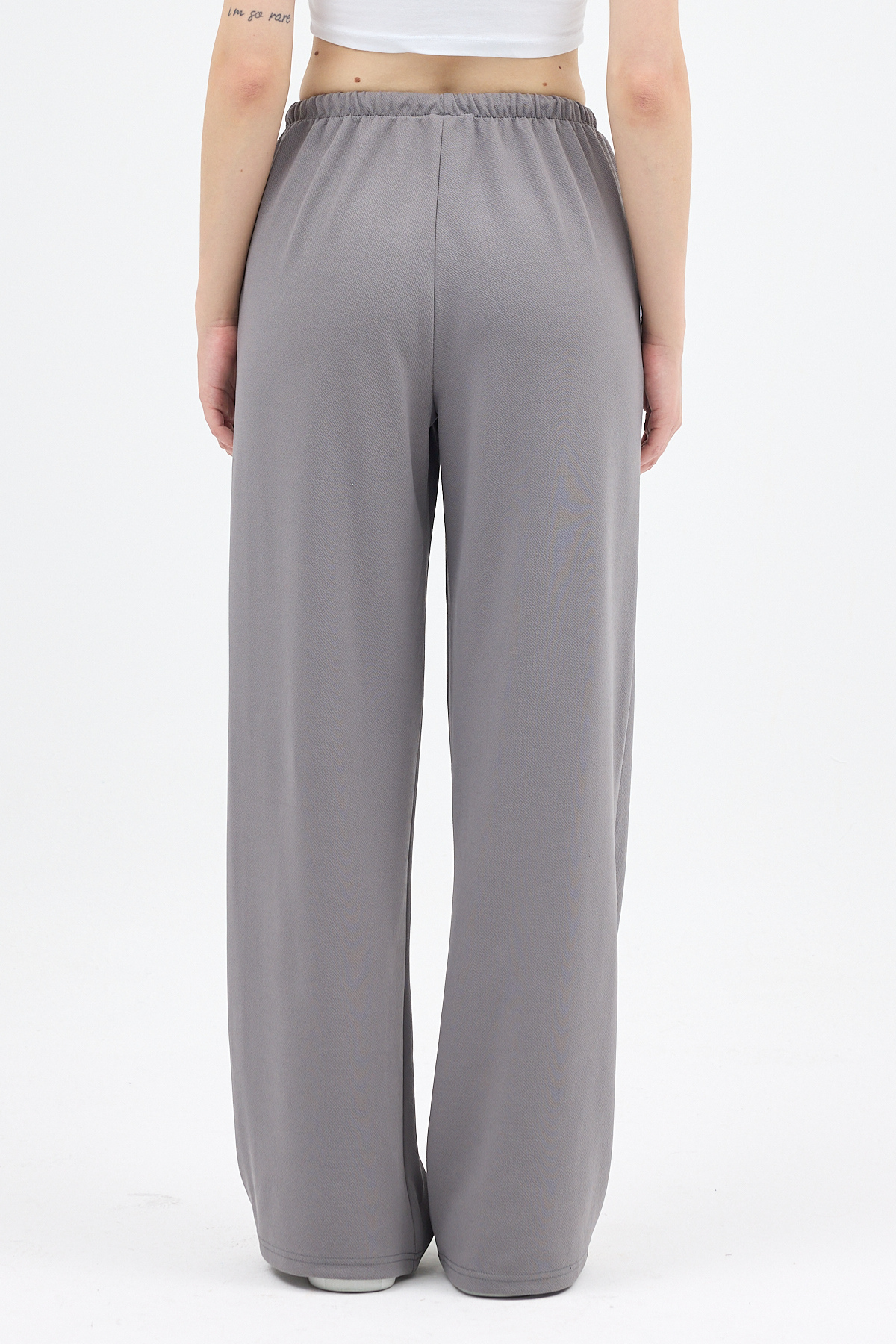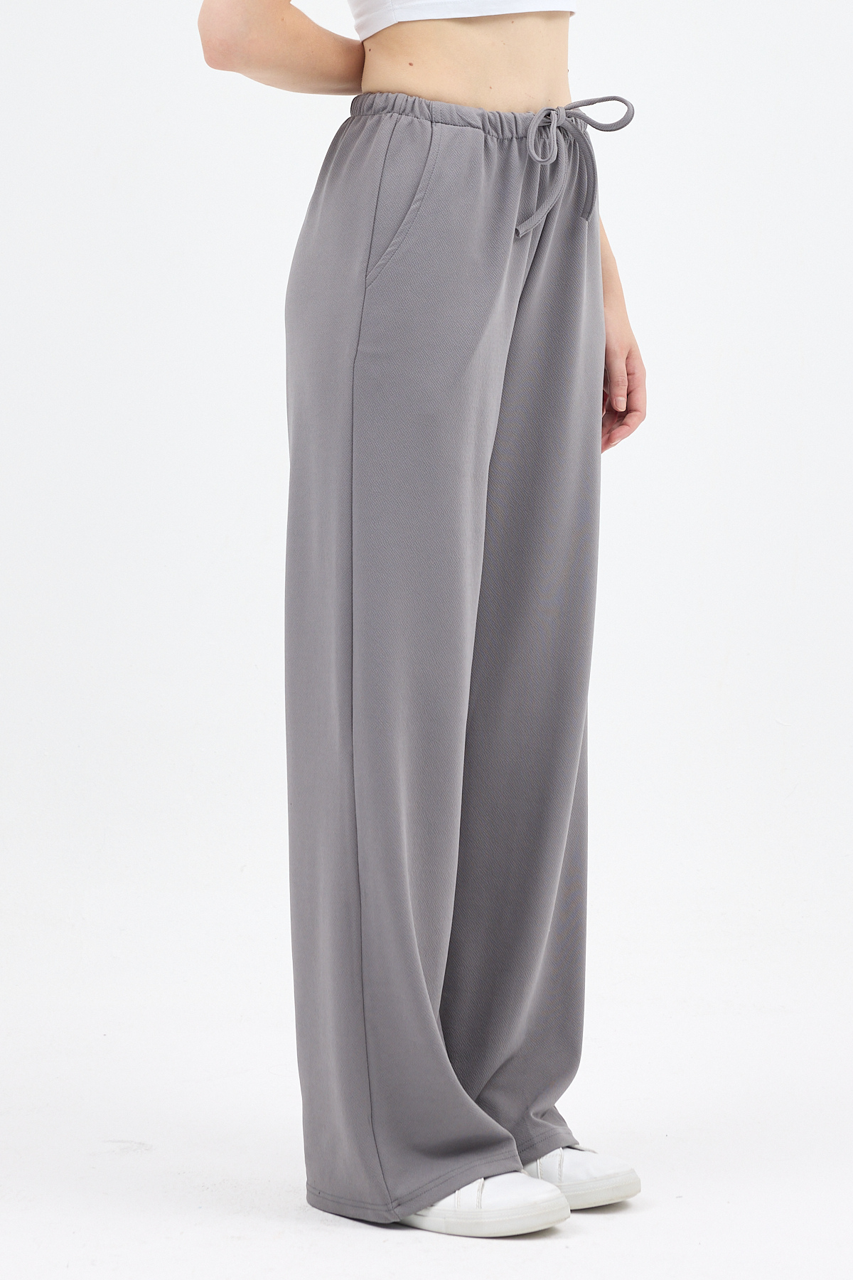 Gri Bel Lastikli Bol Paça Kadın Pantolon 8194A