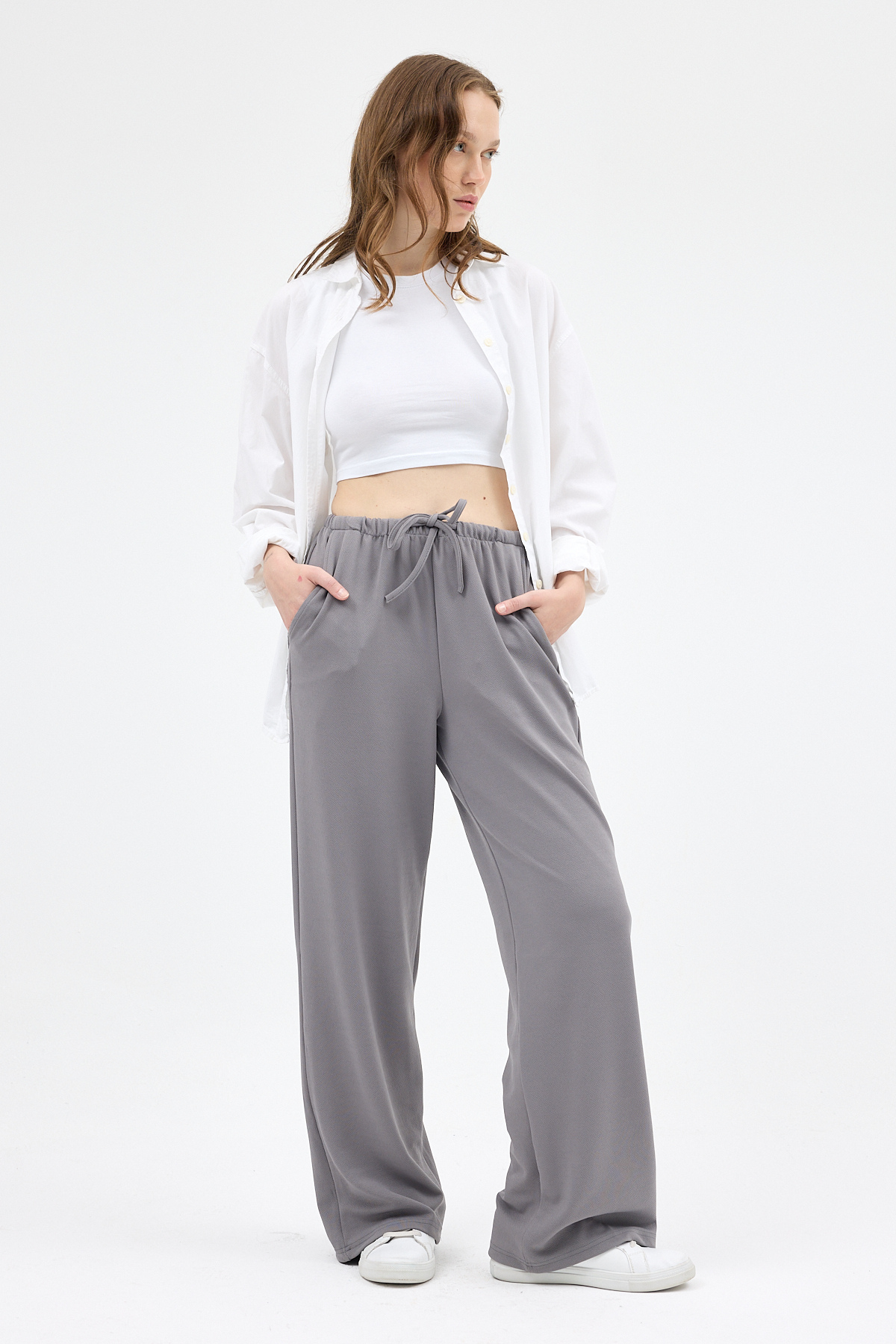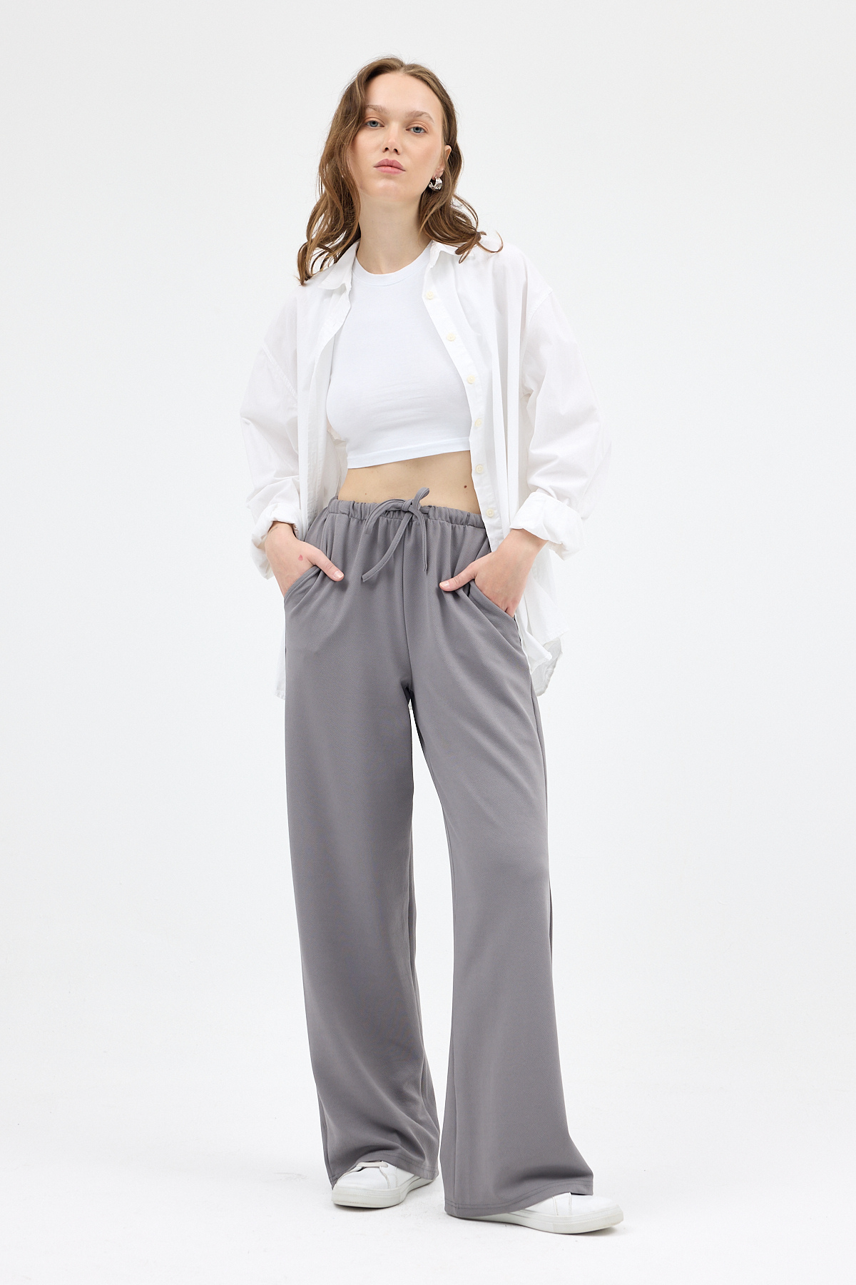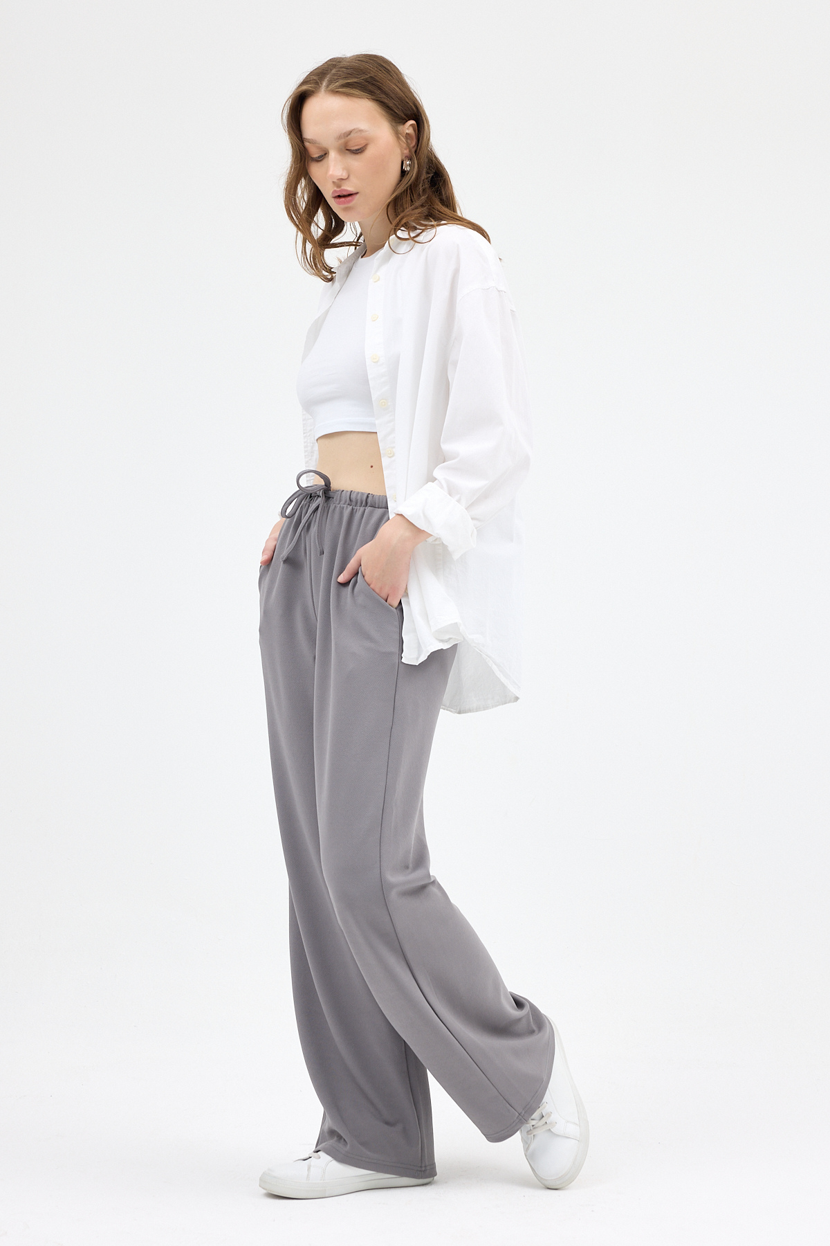 Gri Bel Lastikli Bol Paça Kadın Pantolon 8194A