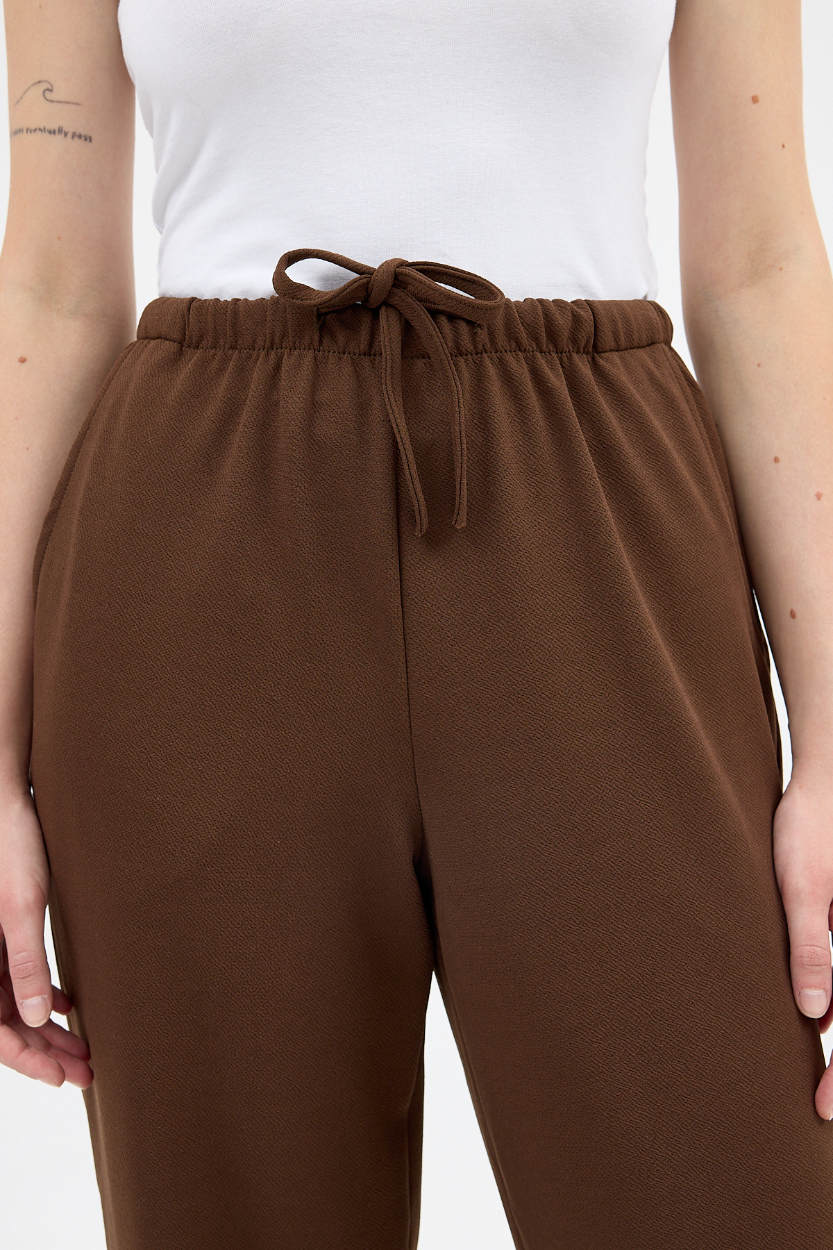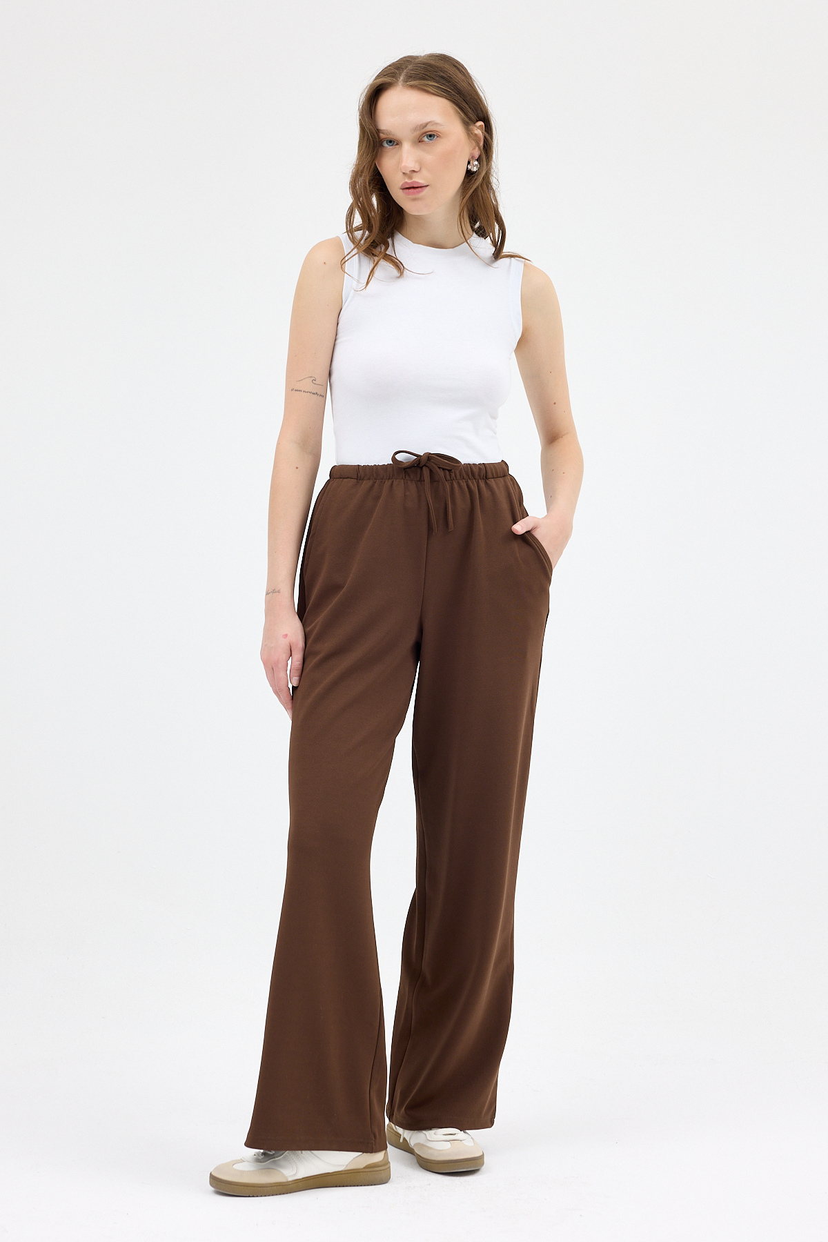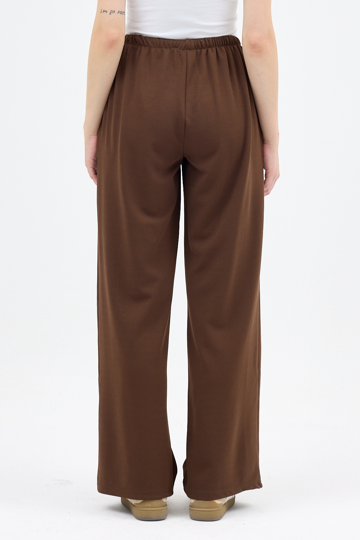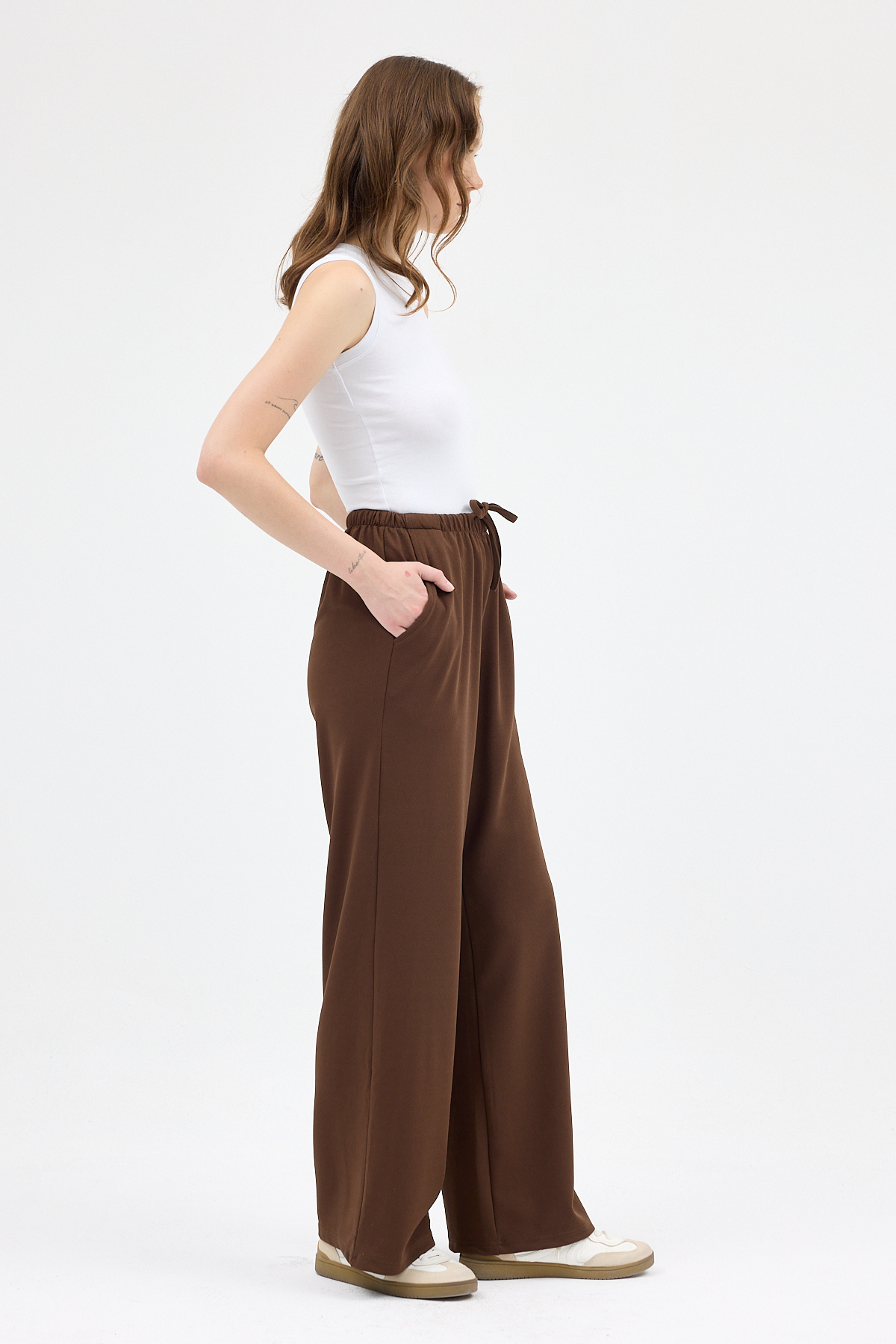 Kahve Bel Lastikli Bol Paça Kadın Pantolon 8194A