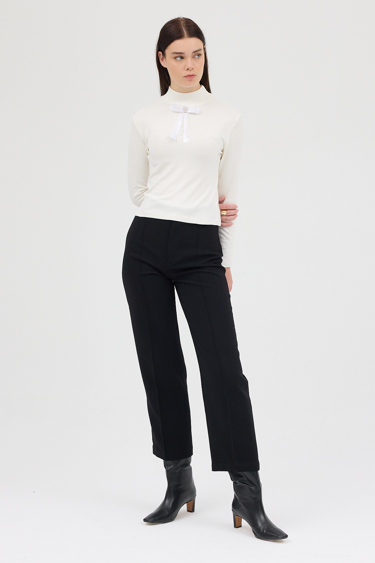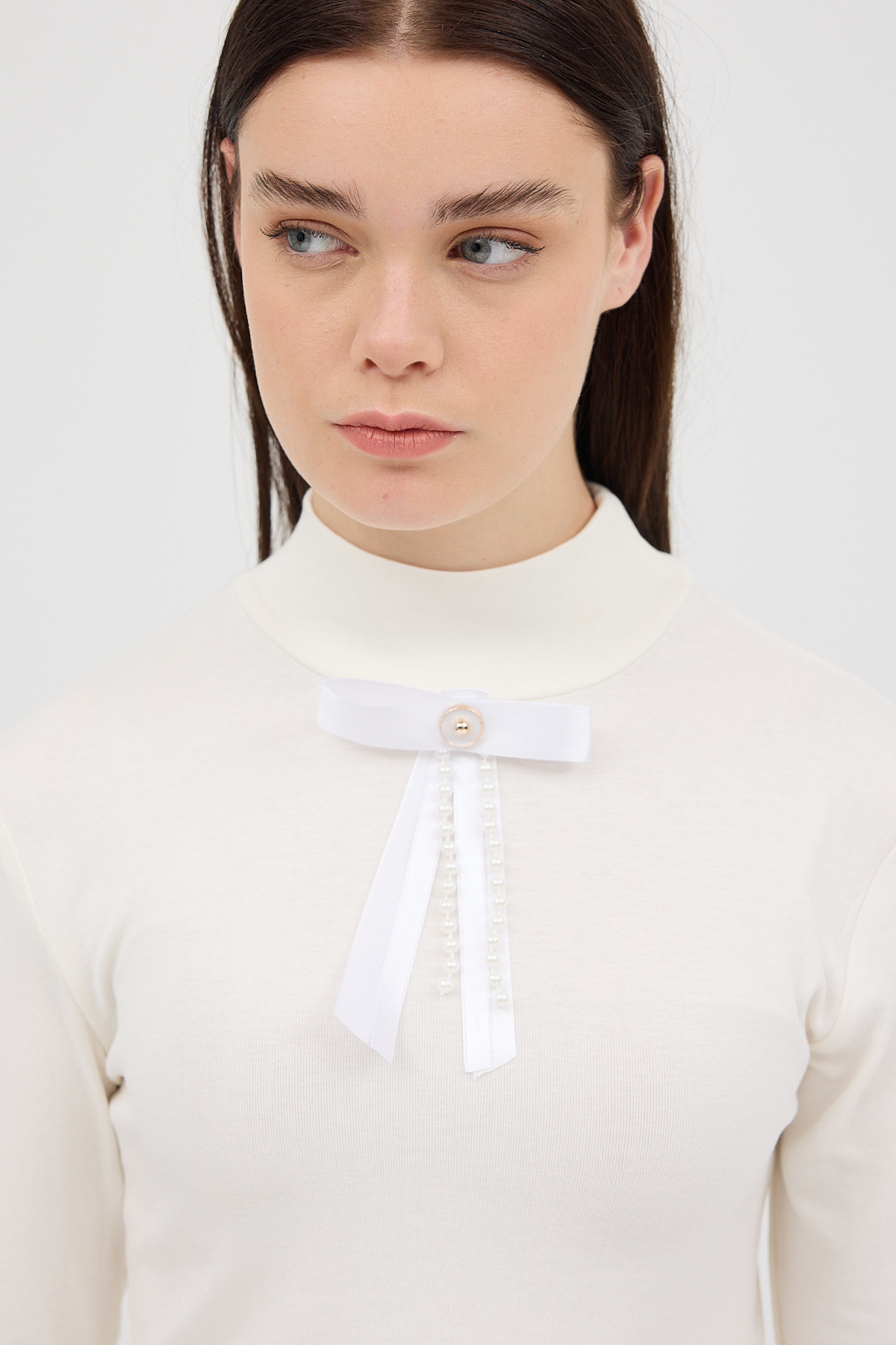 Ekru Bronşlu Uzun Kol Bluz 8197A
