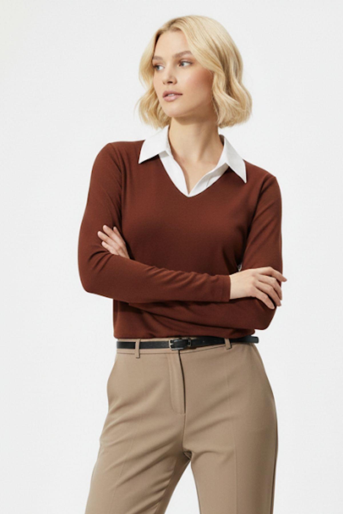 2447 Fermuarlı Uzun Kol Bluz Ekru