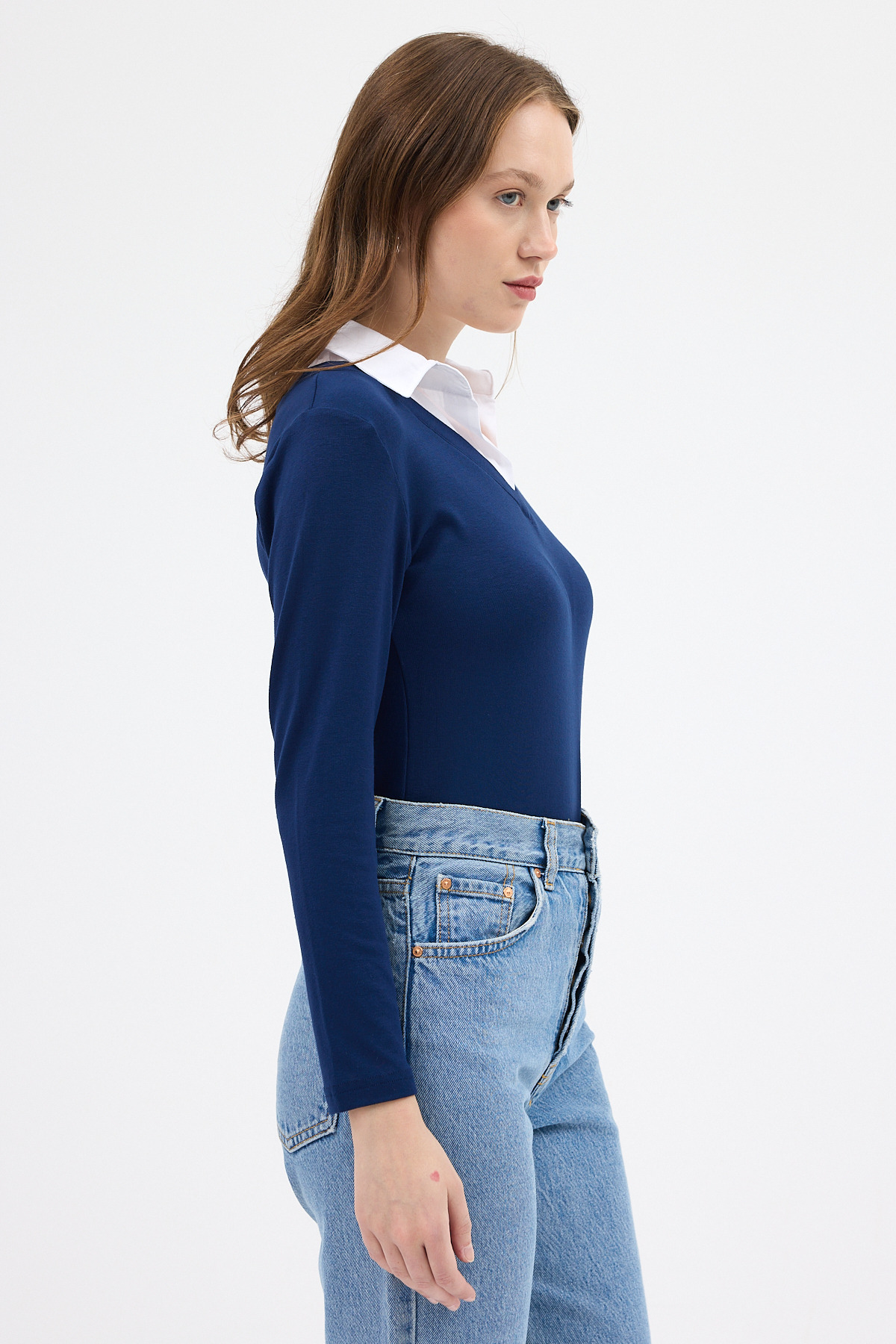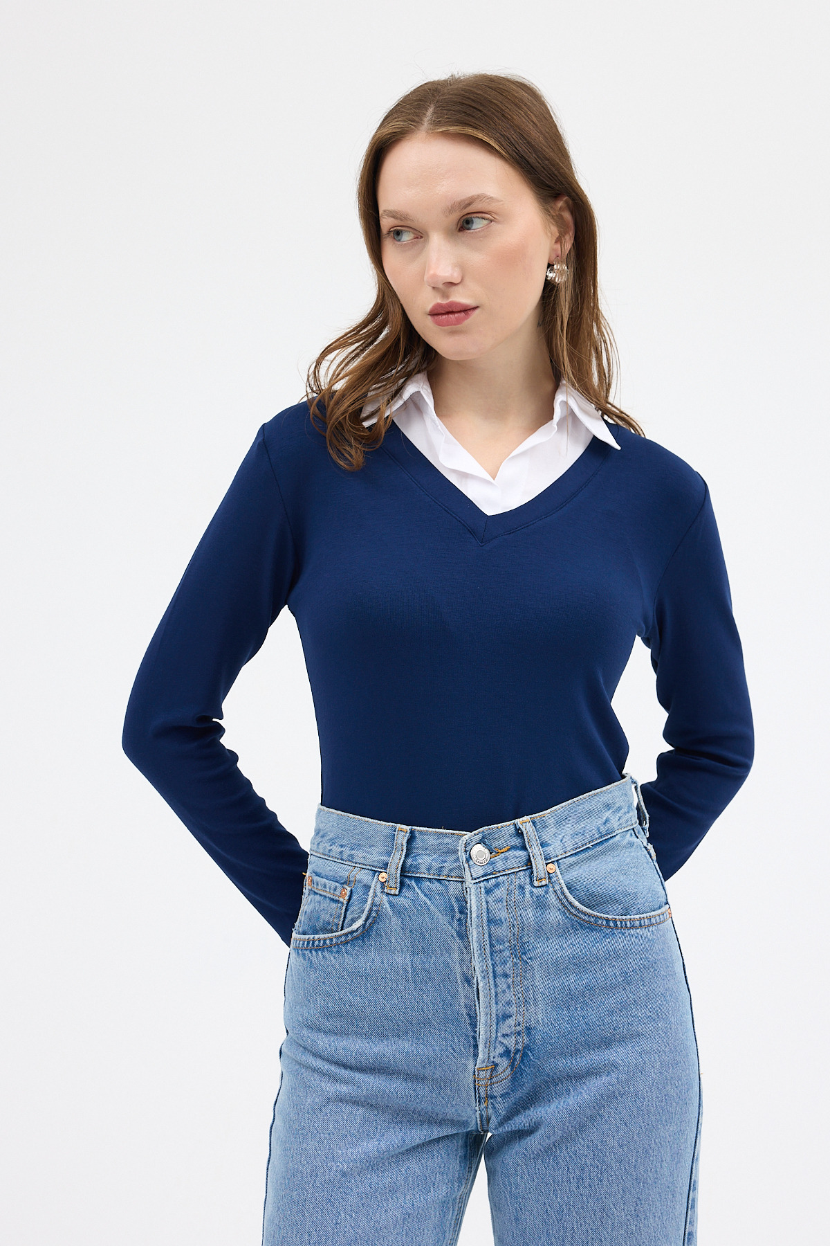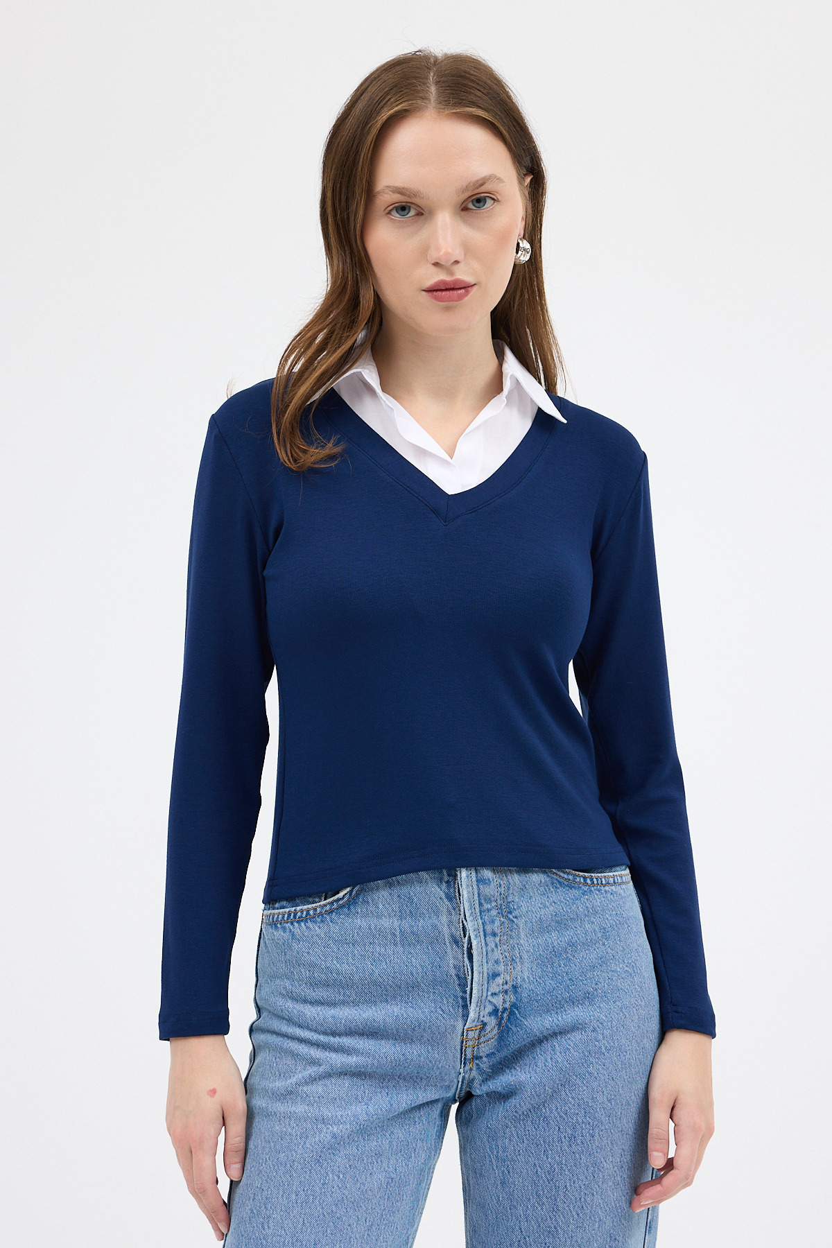 Laci Yumuşak Dokulu Gömlek Yaka Görünümlü Bluz 8198A