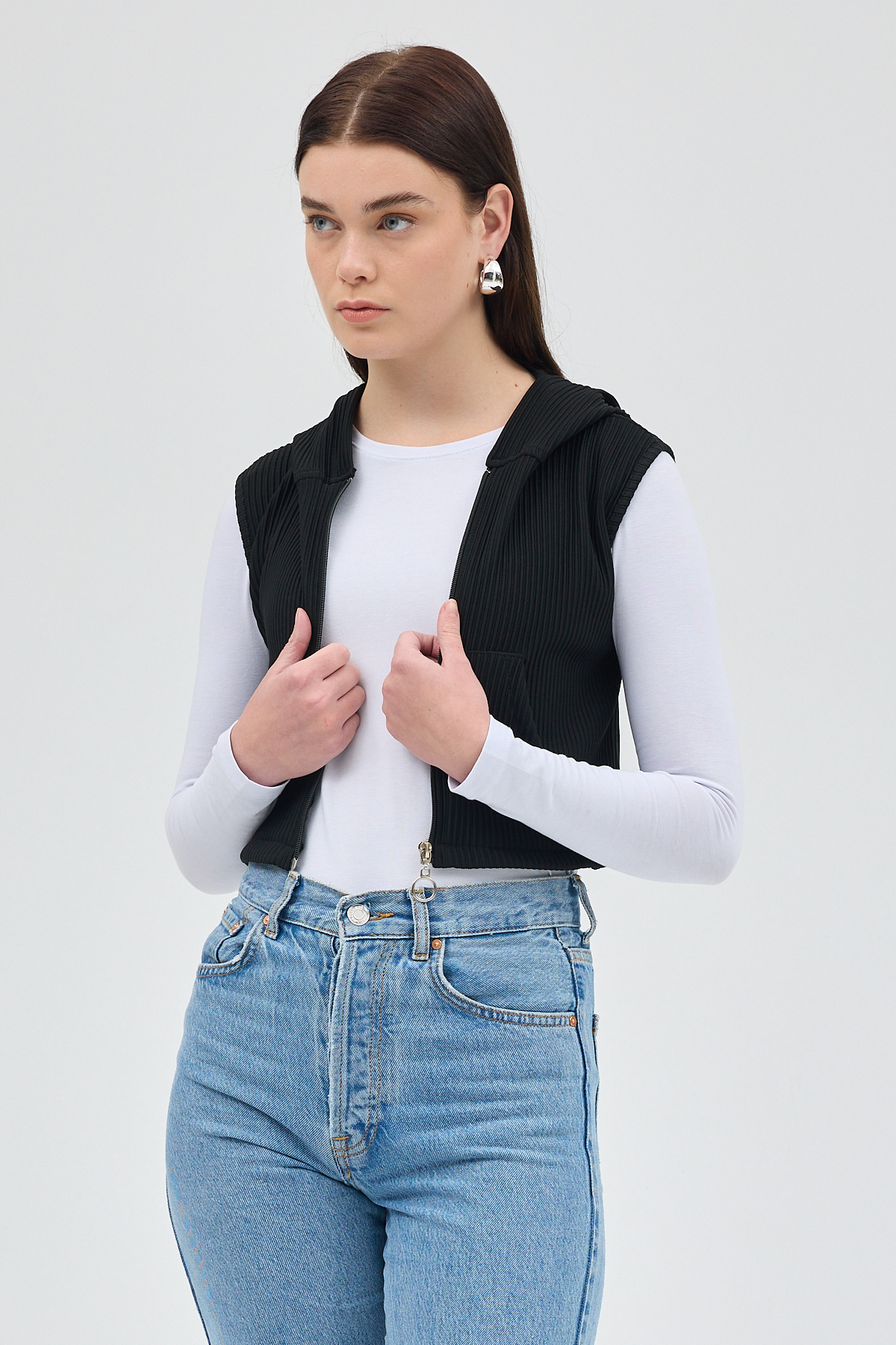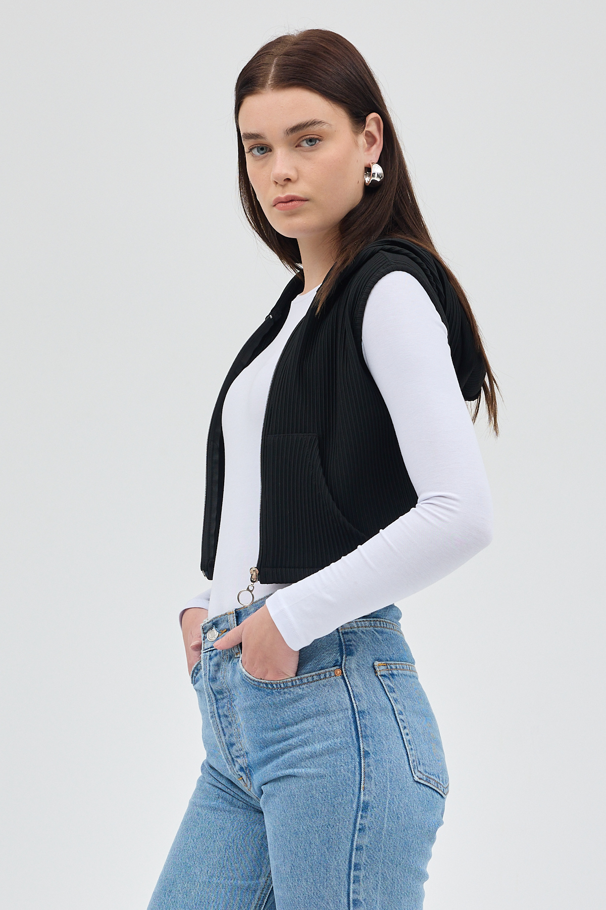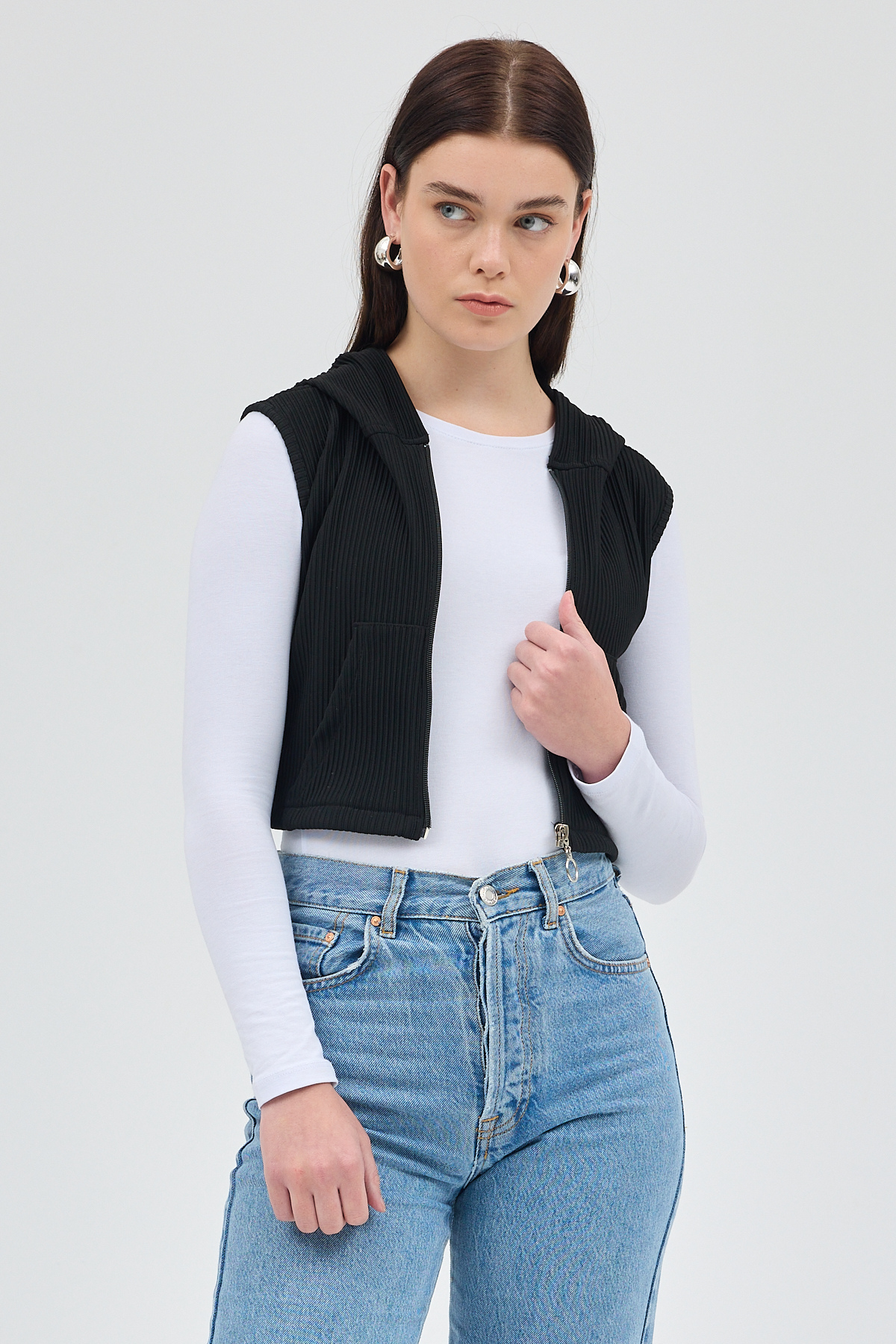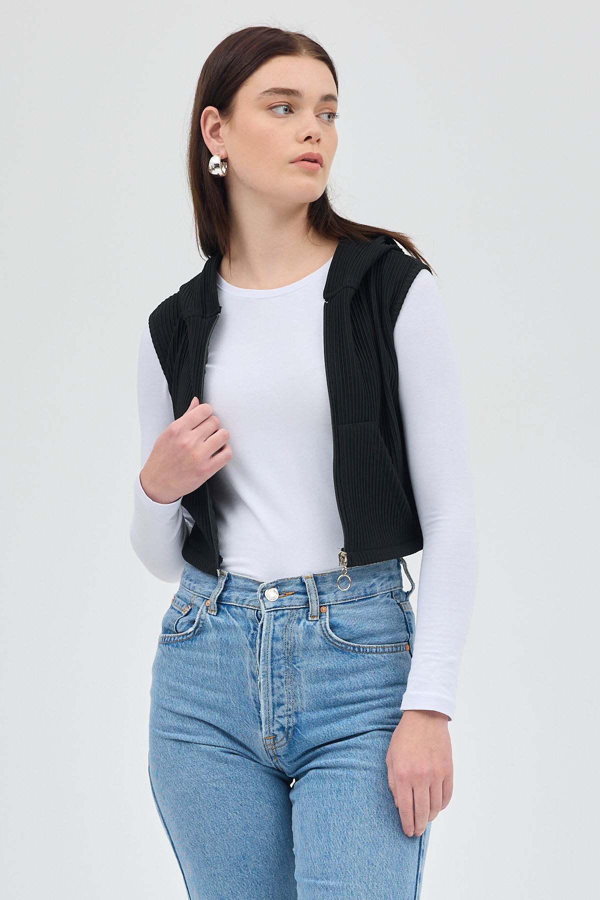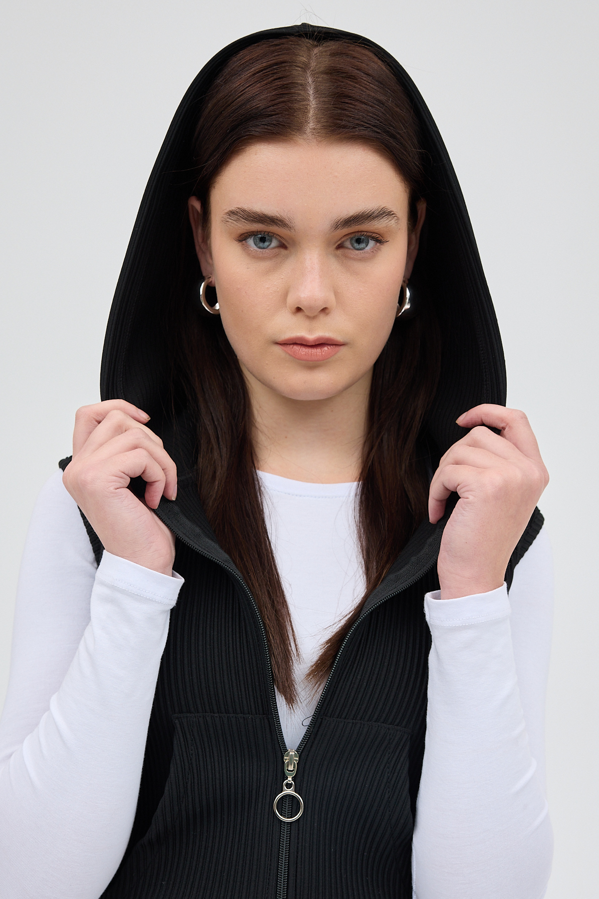 Siyah Fermuarlı Sıfır Kol Kadın Yelek 8201A