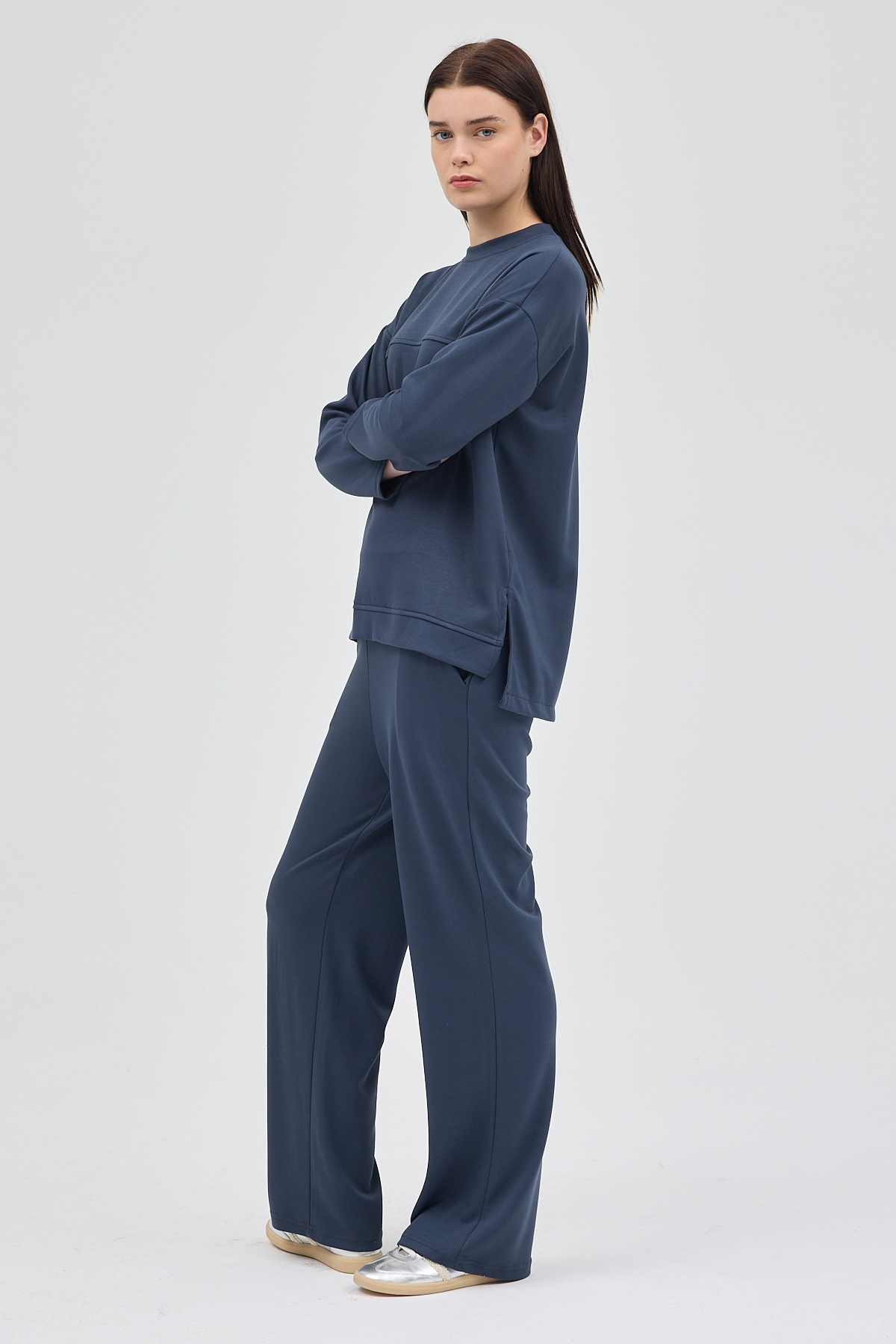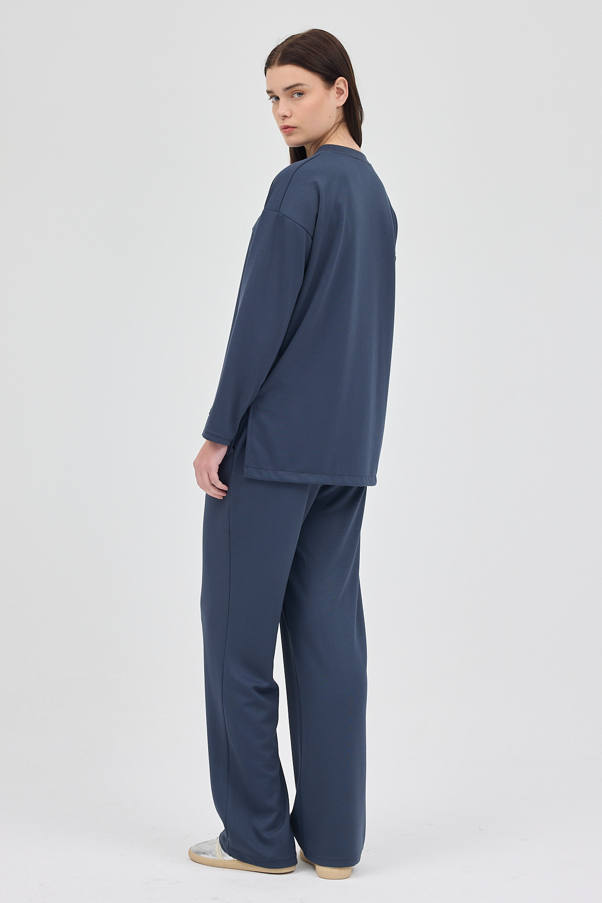 Antrasit Bisiklet Yaka Kadın Pantolon Takım 8213A