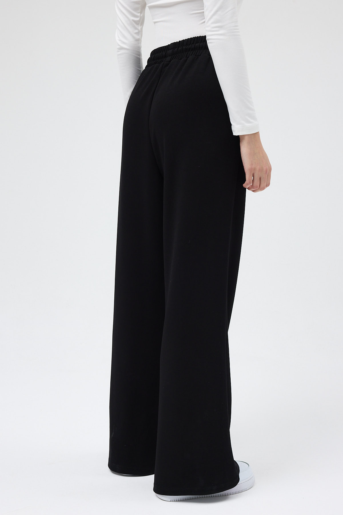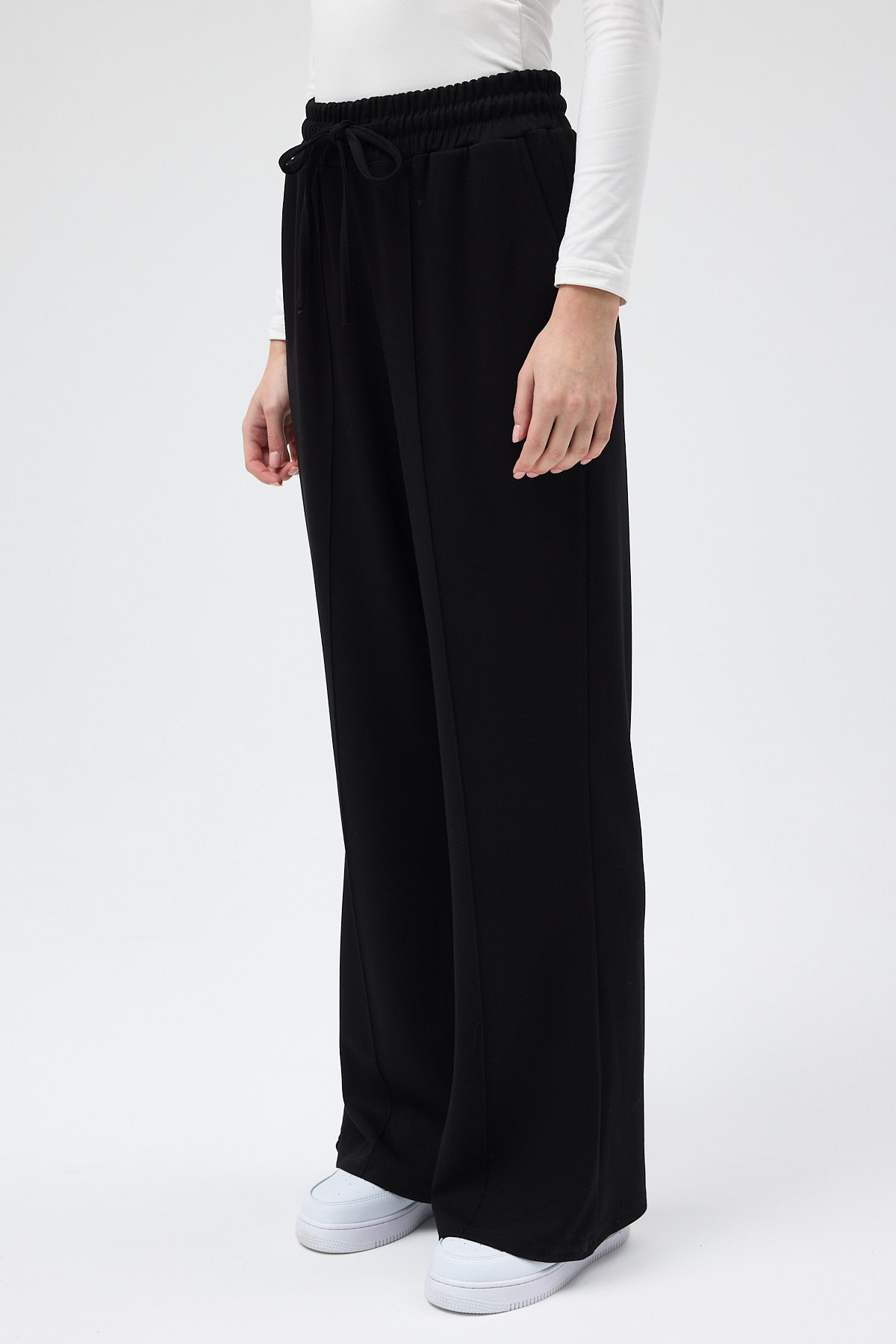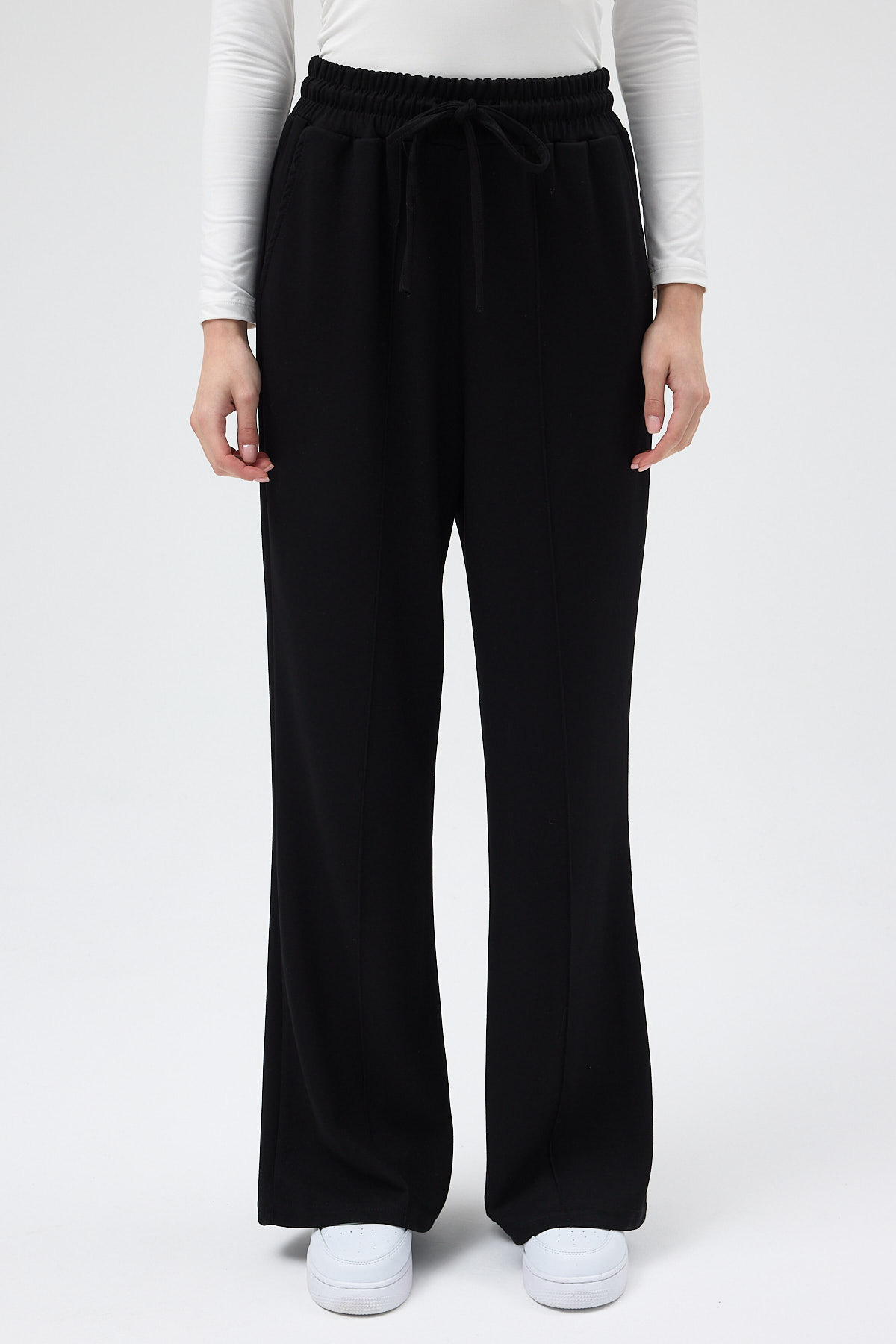 Siyah Bel Lastikli Geniş Paça Kadın Eşofman Altı 9218M