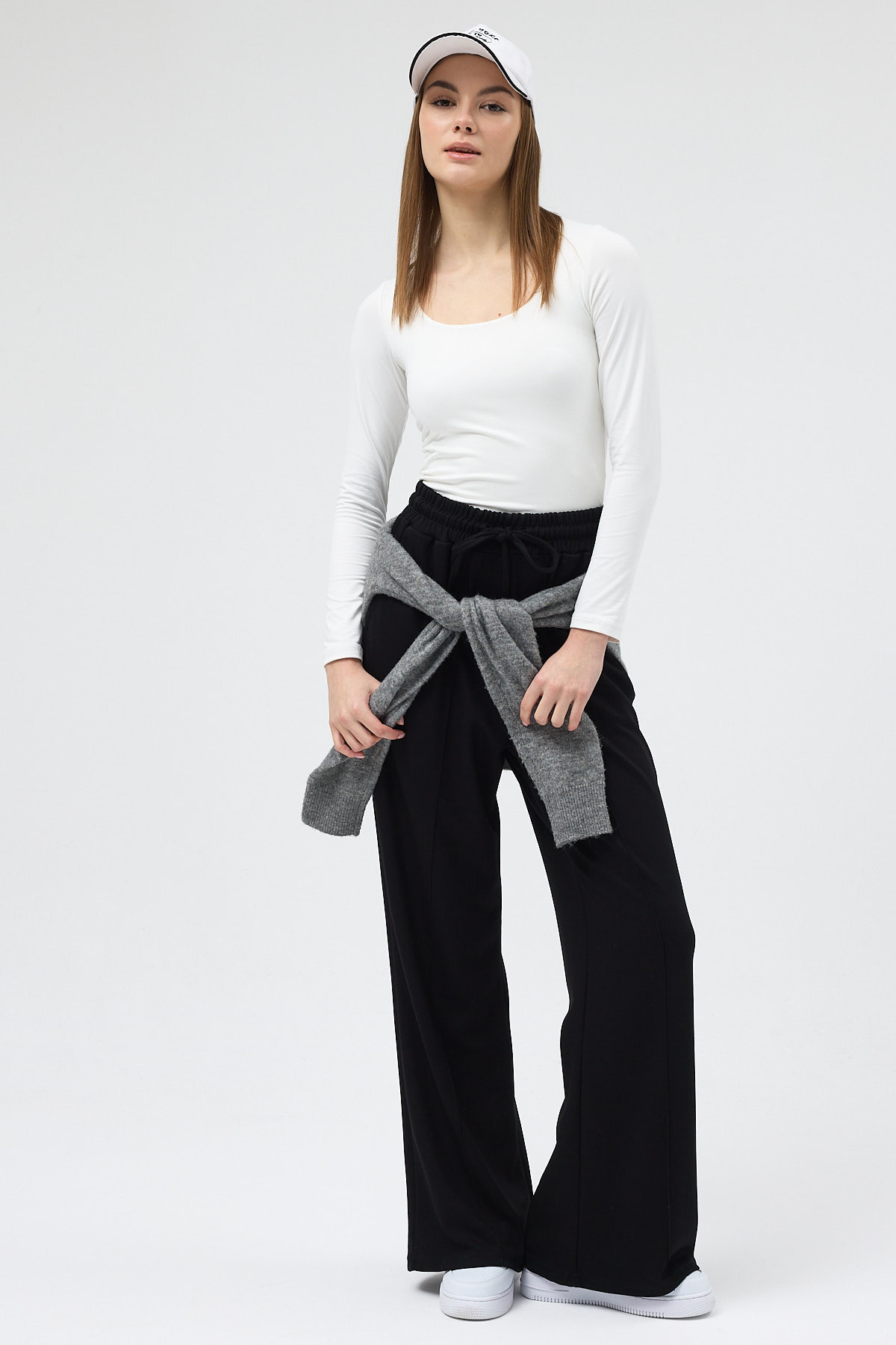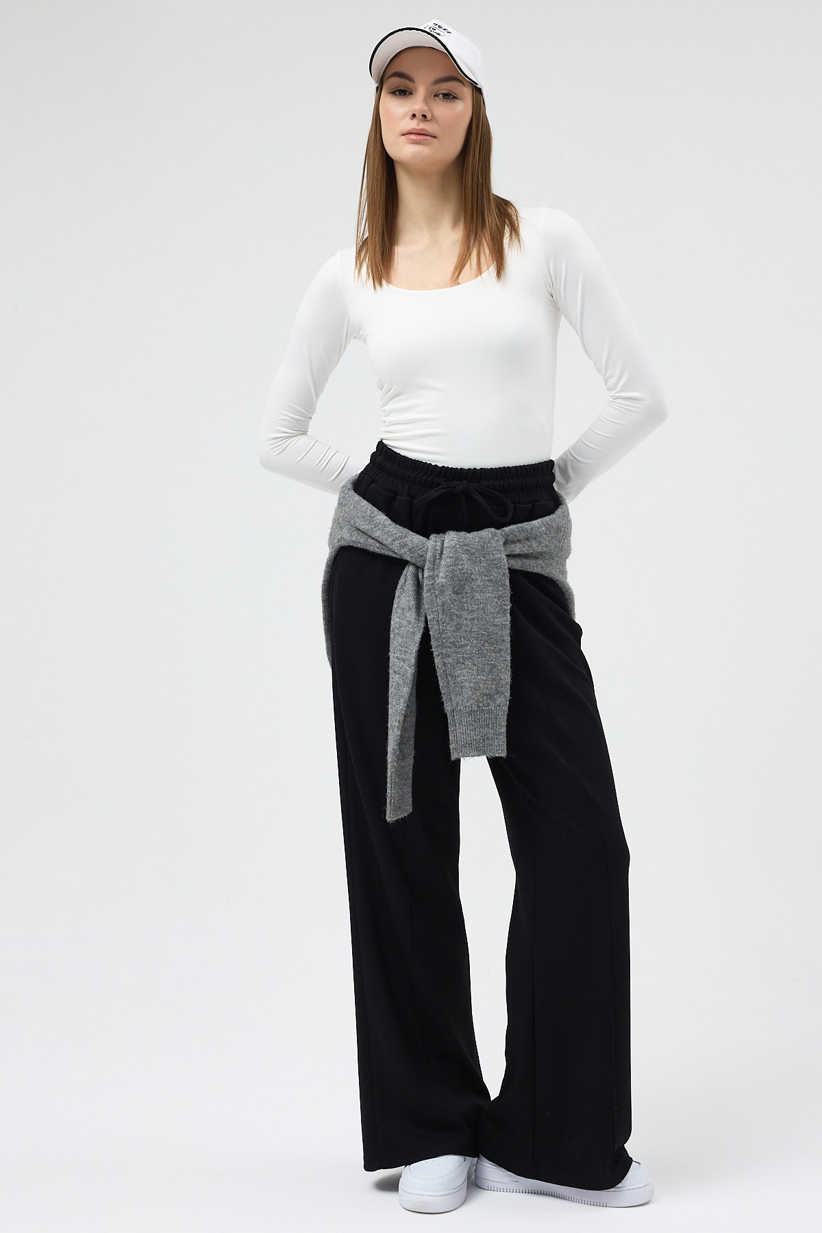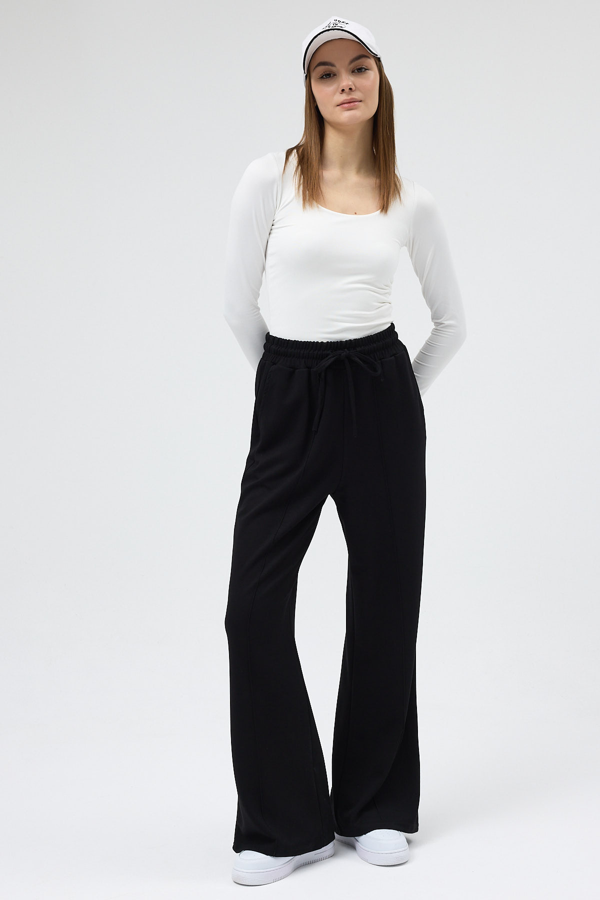 Siyah Bel Lastikli Geniş Paça Kadın Eşofman Altı 9218M