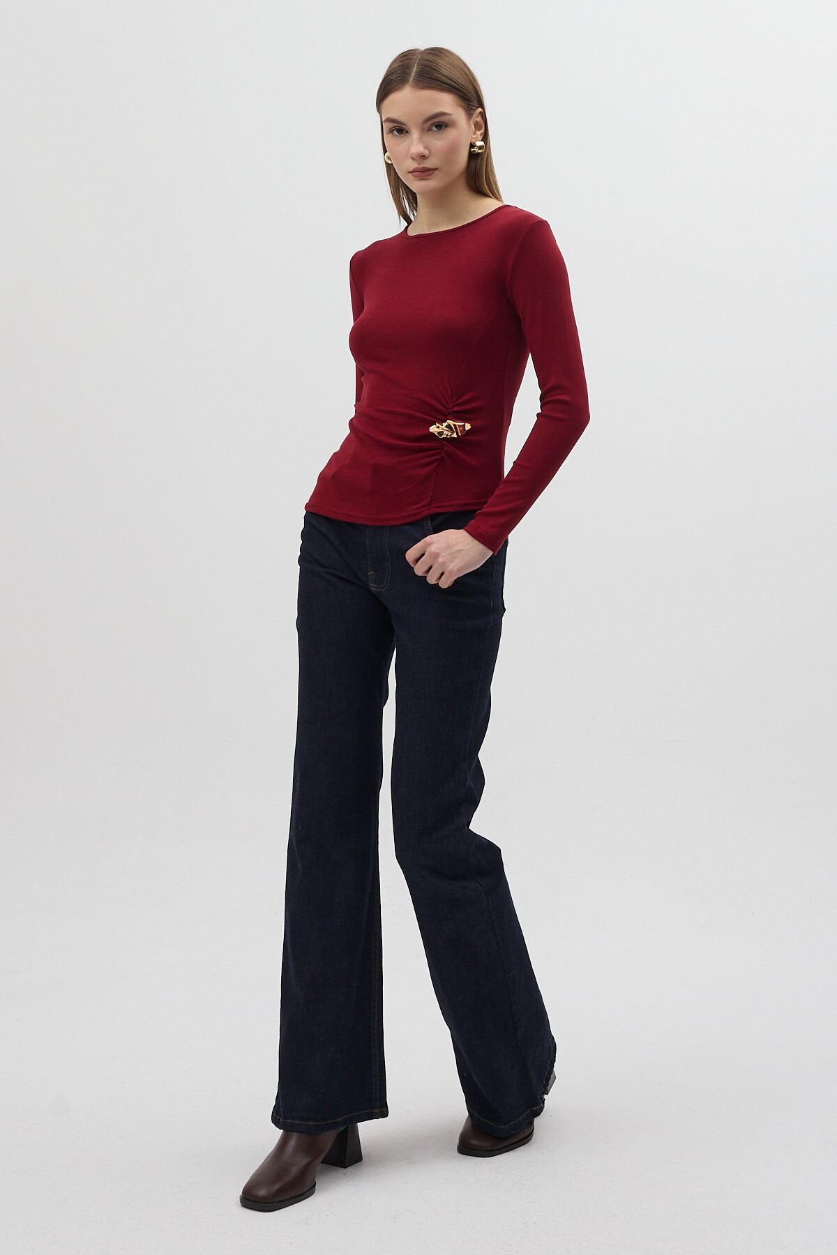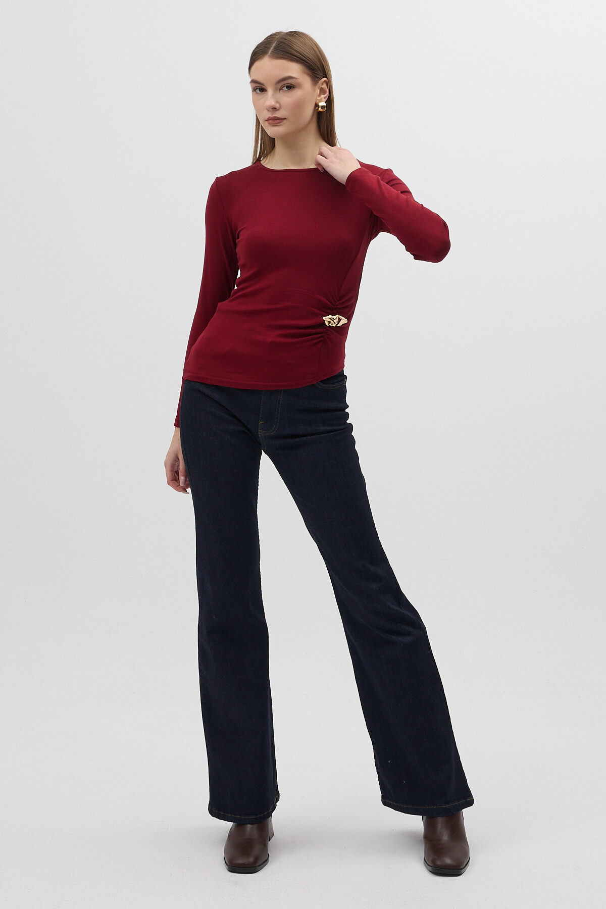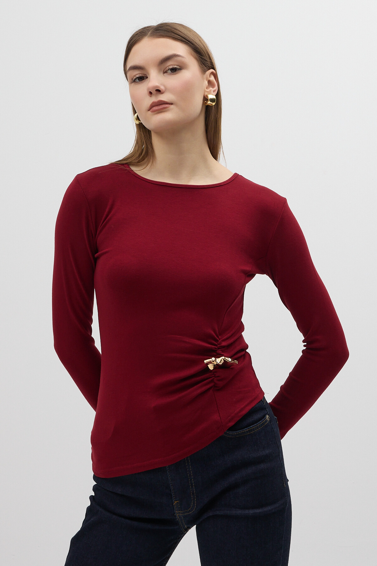 Bordo Bel Toka Detaylı Uzun Kollu Bluz 8221A