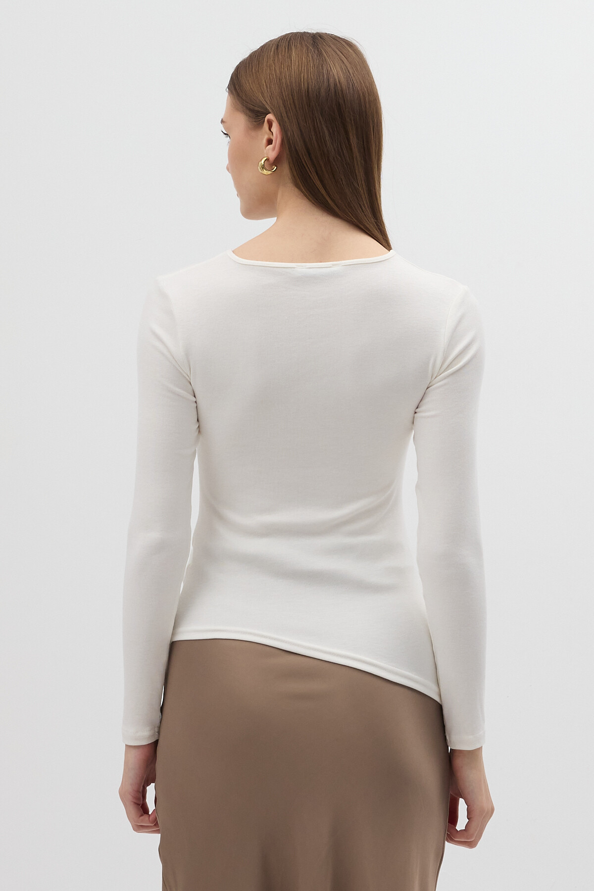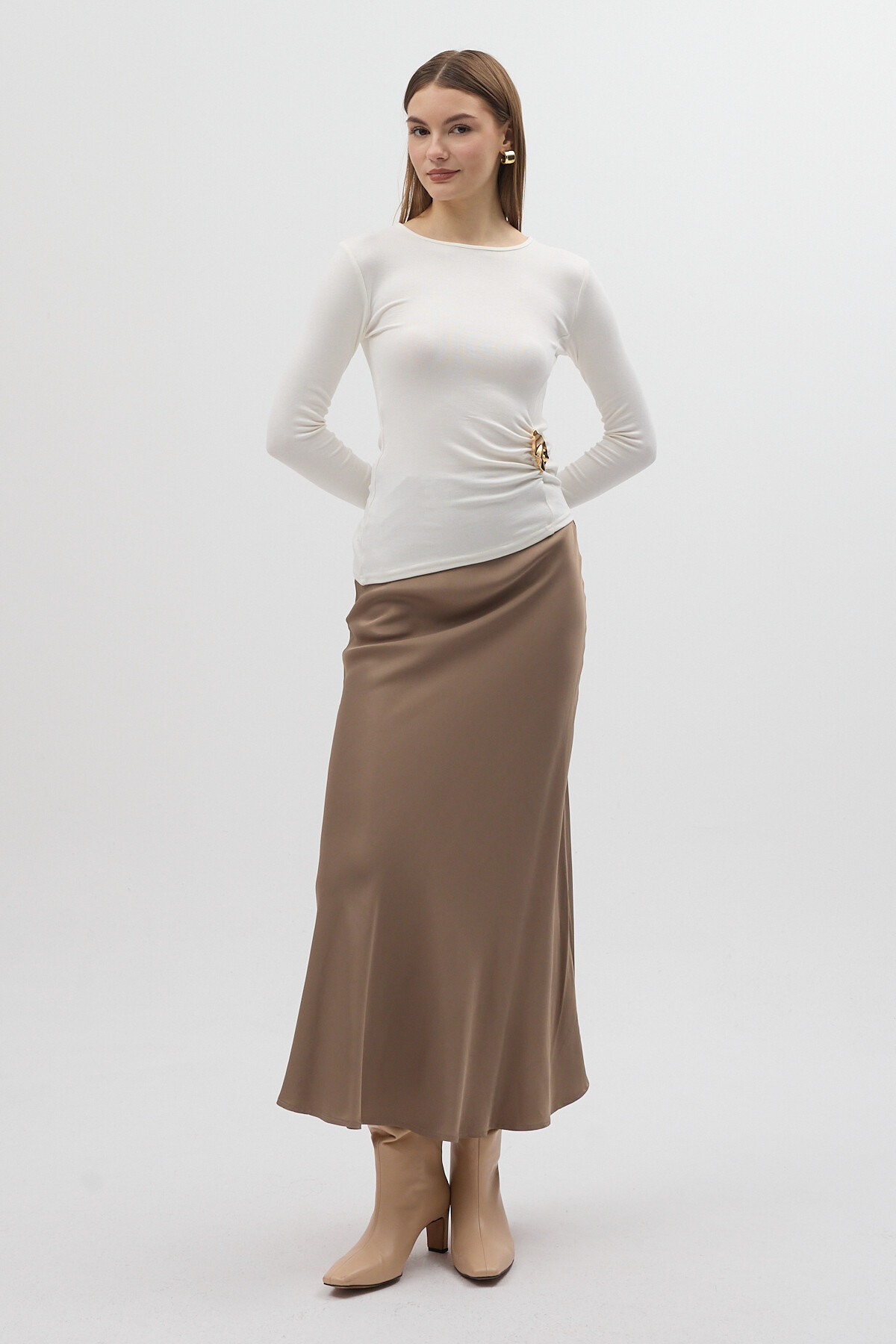 Ekru Bel Toka Detaylı Uzun Kollu Bluz 8221A