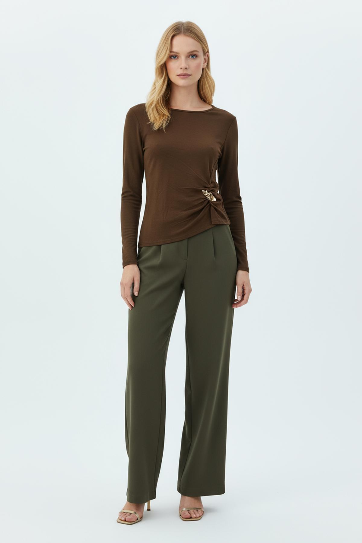 8222A Polo Yaka Uzun Kol Bluz Kahve