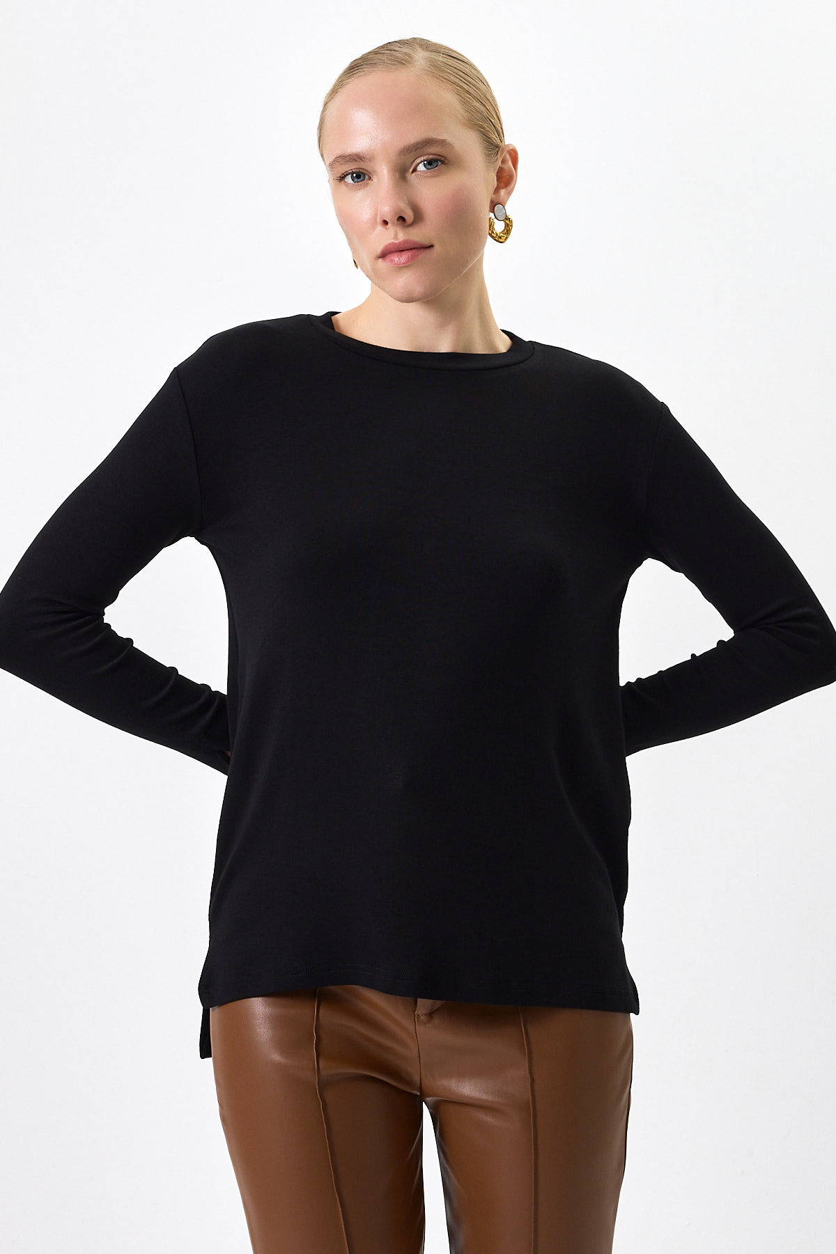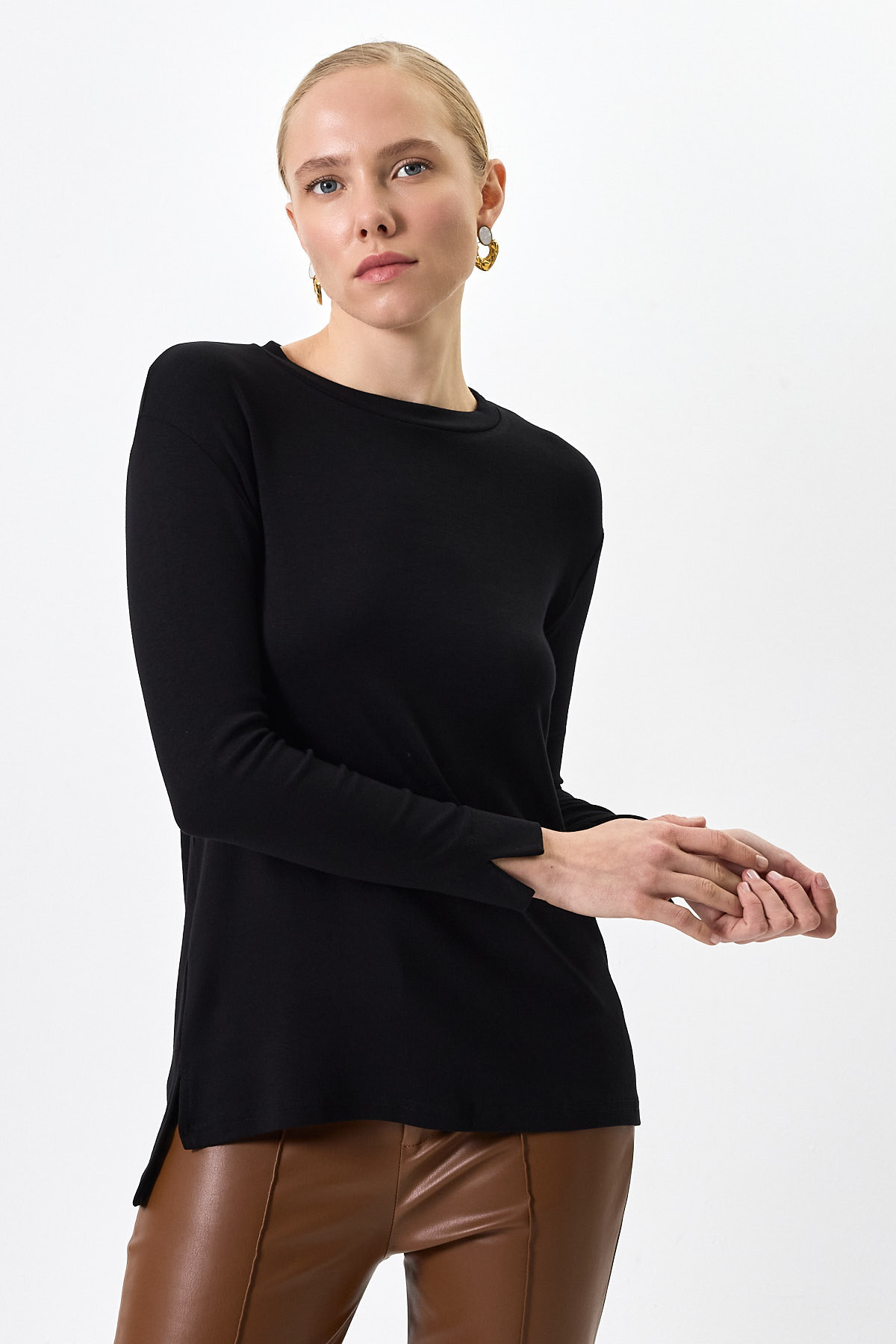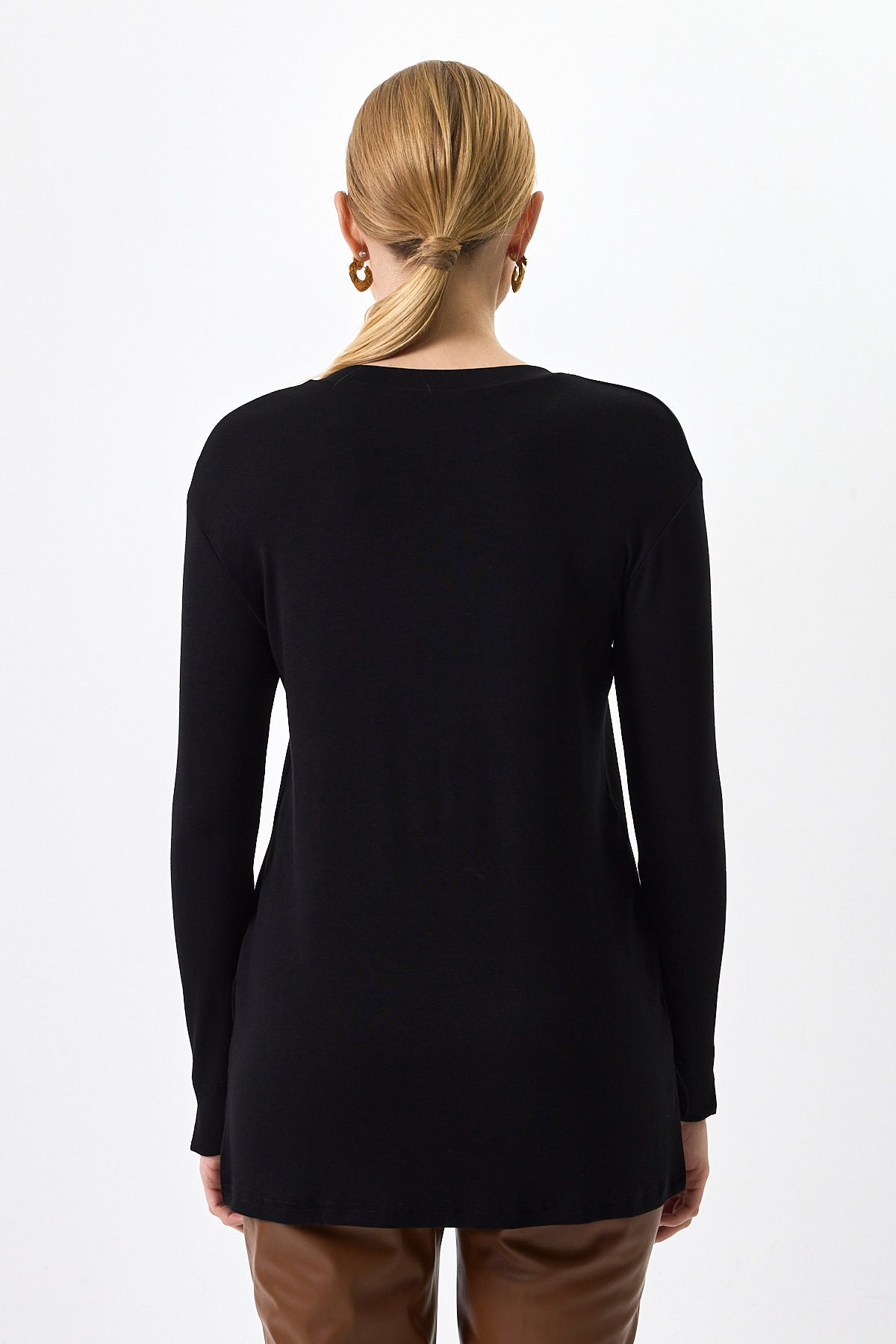 Siyah Bisiklet Yaka Yan Yırtmaçlı Tunik 8229A