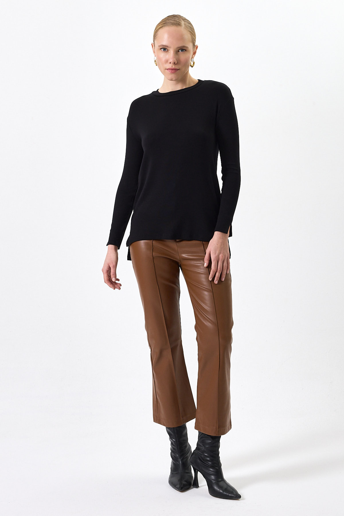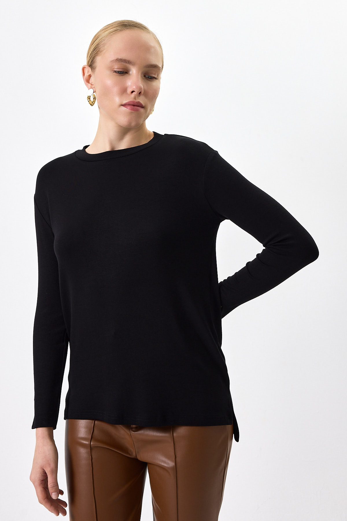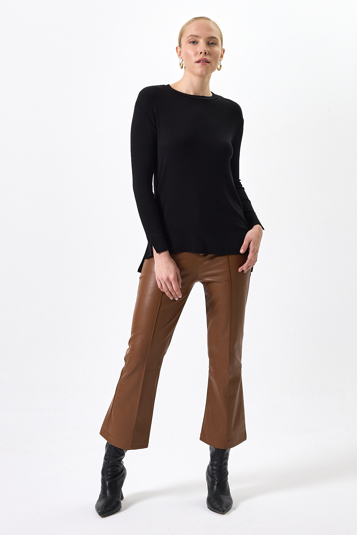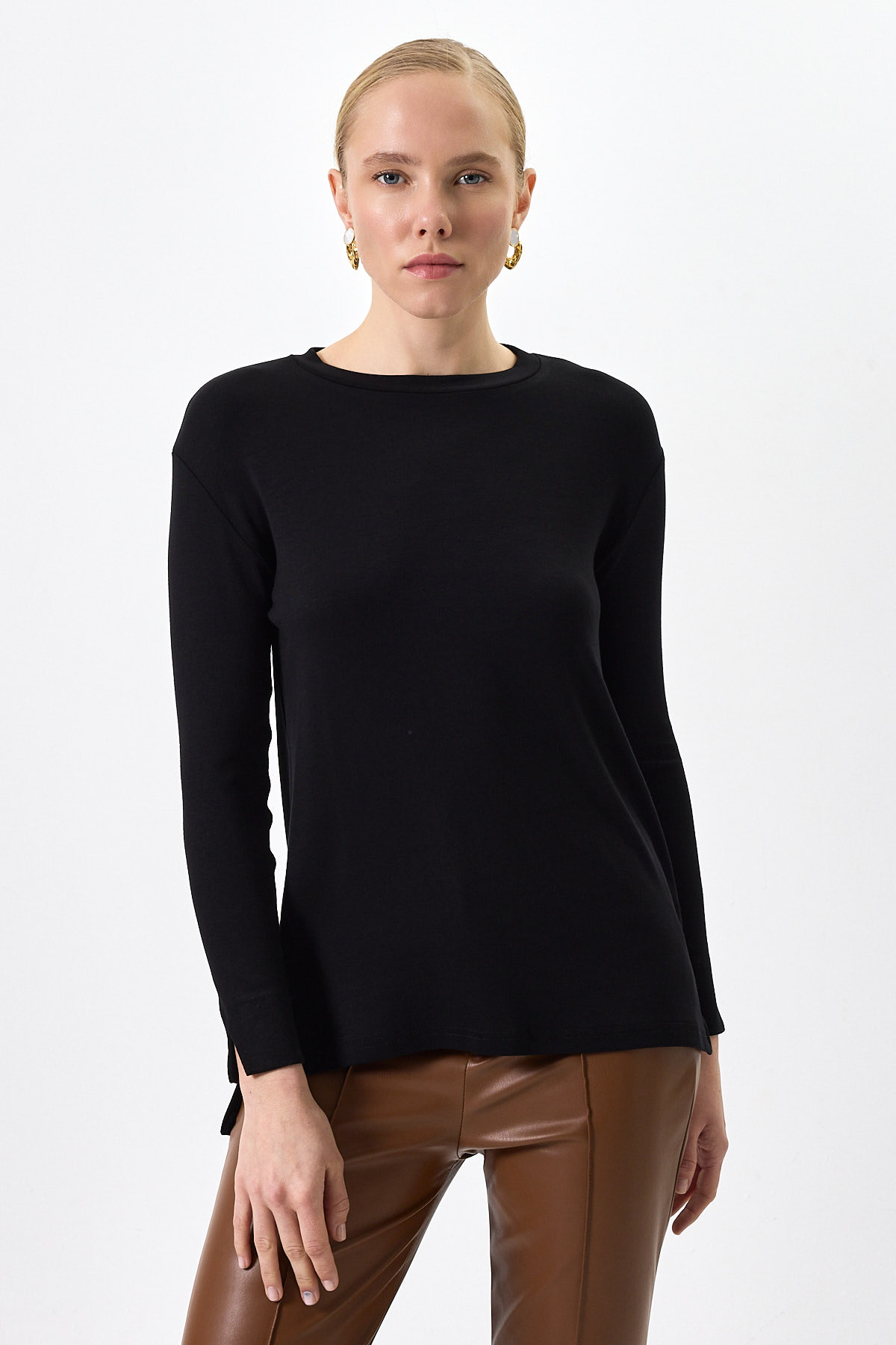 Siyah Bisiklet Yaka Yan Yırtmaçlı Tunik 8229A