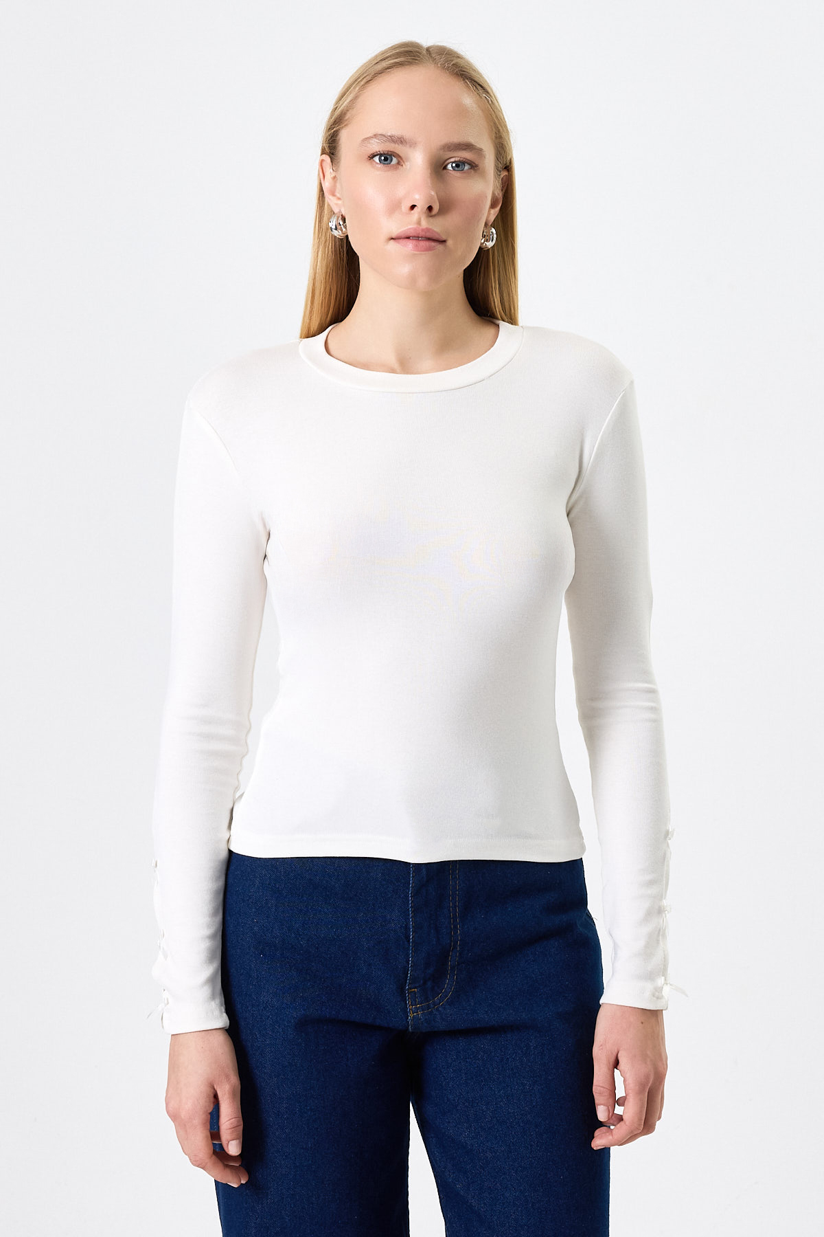 Ekru Kol Kurdele Detaylı Bluz 8232A