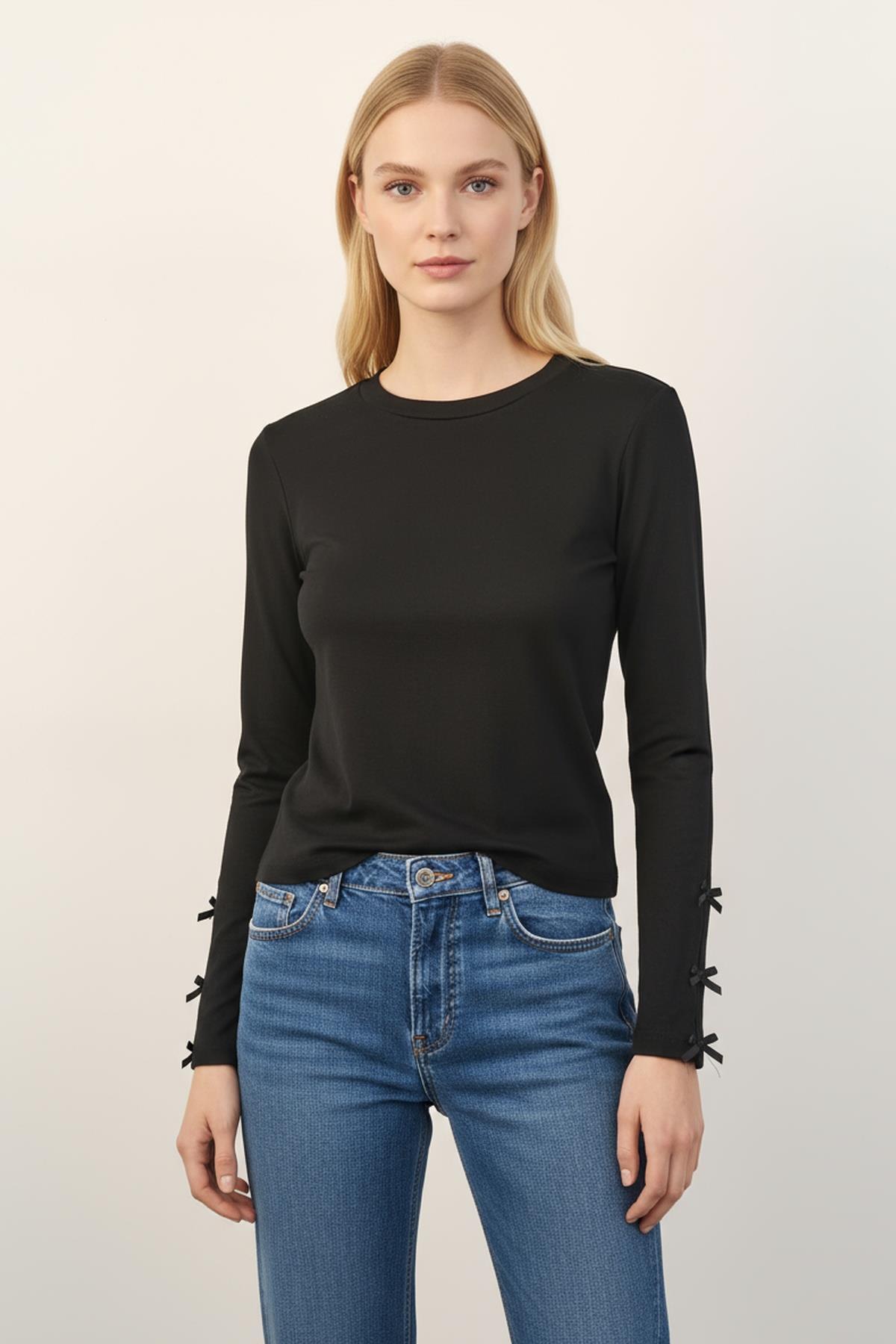 8226A V Yaka Ön Düğme Detay Bluz Siyah