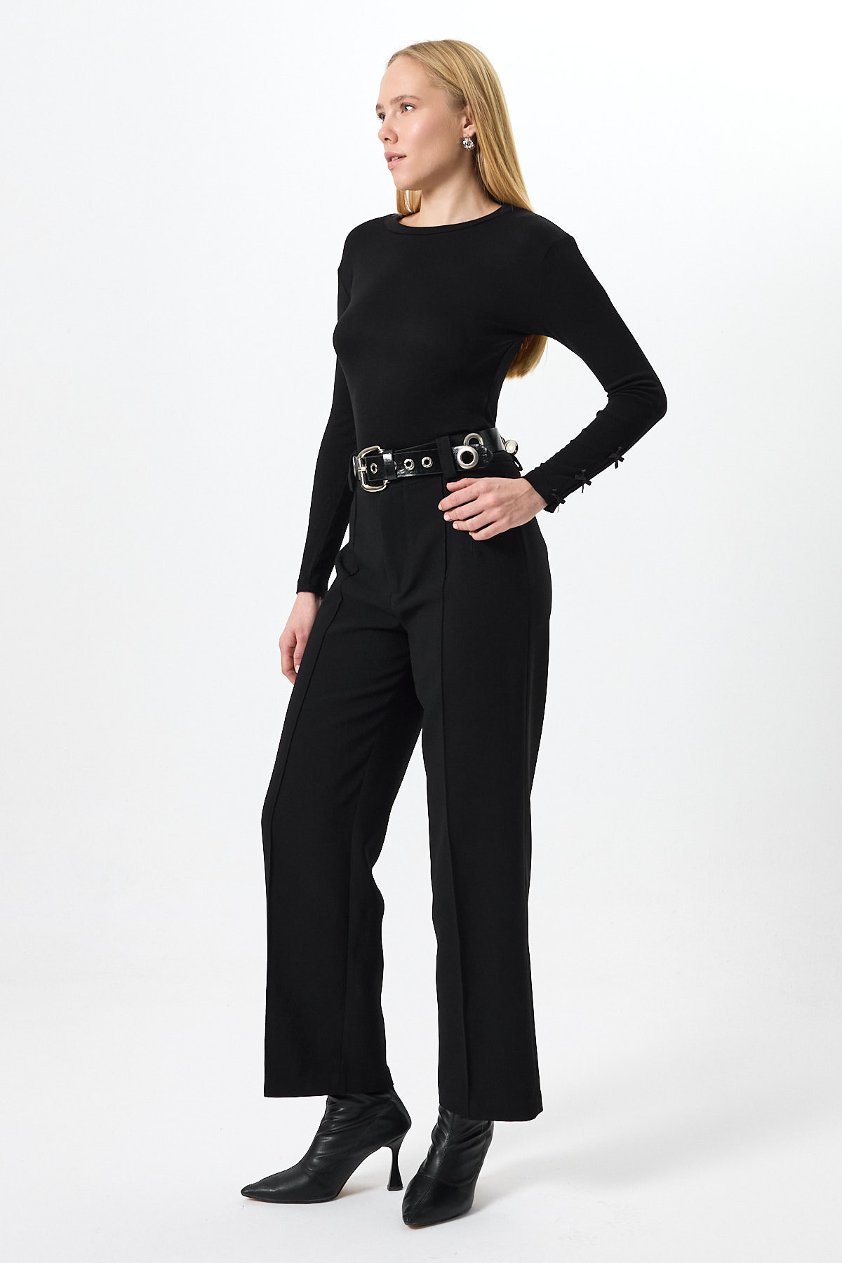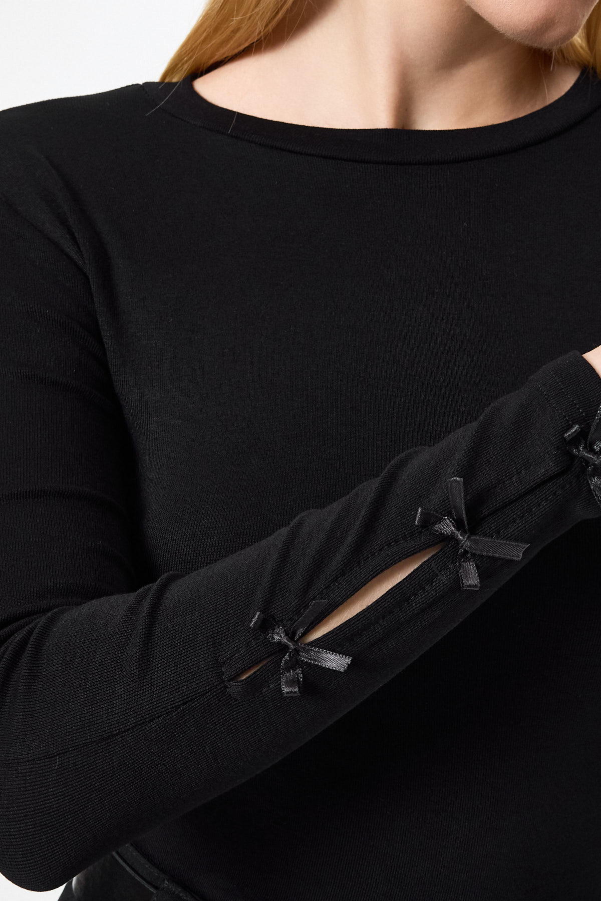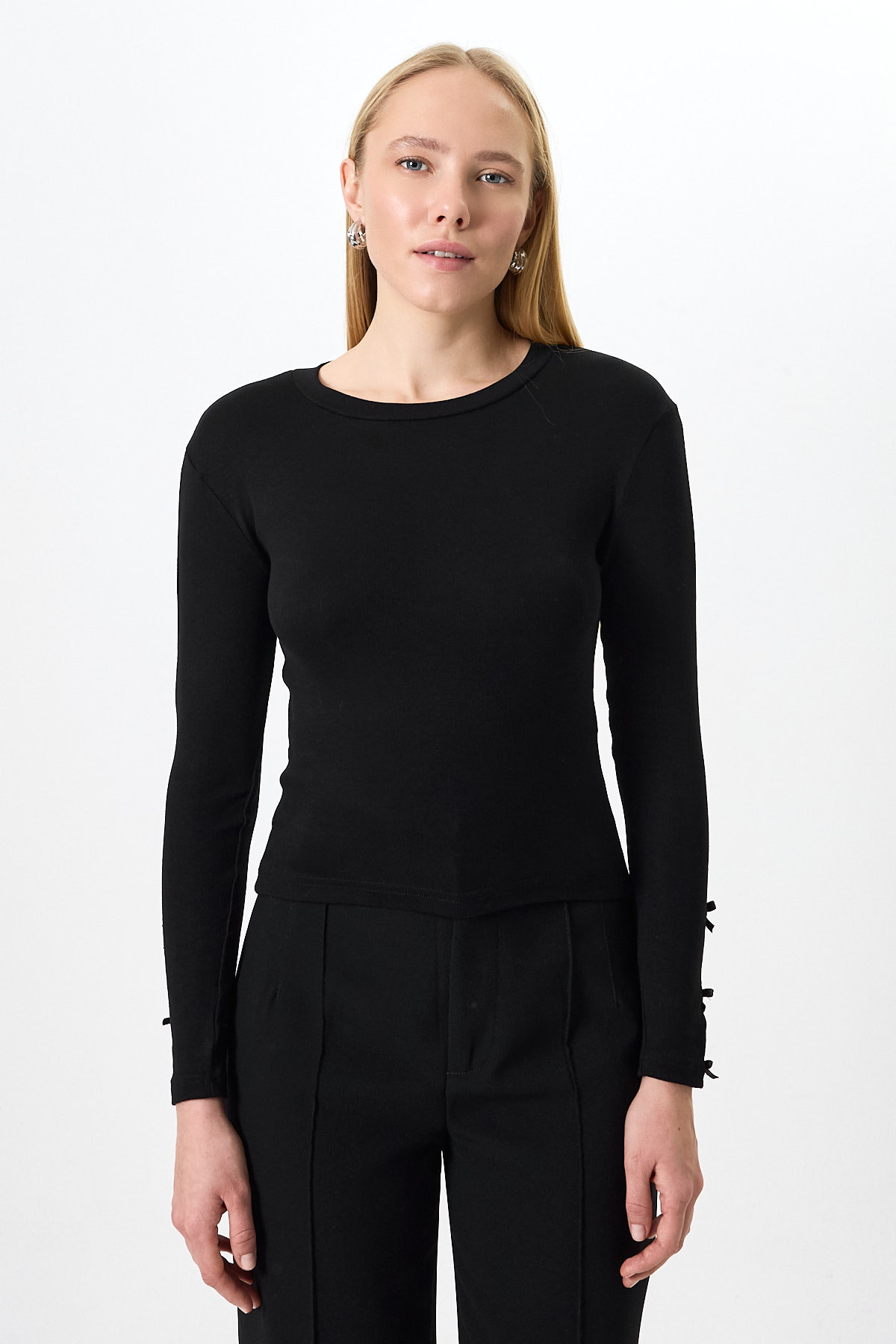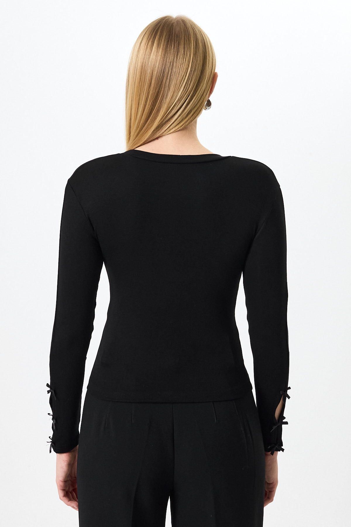 Siyah Kol Kurdele Detaylı Bluz 8232A