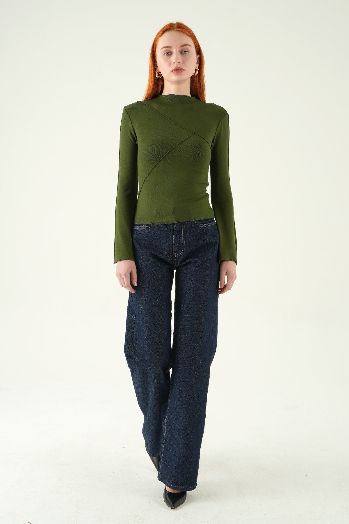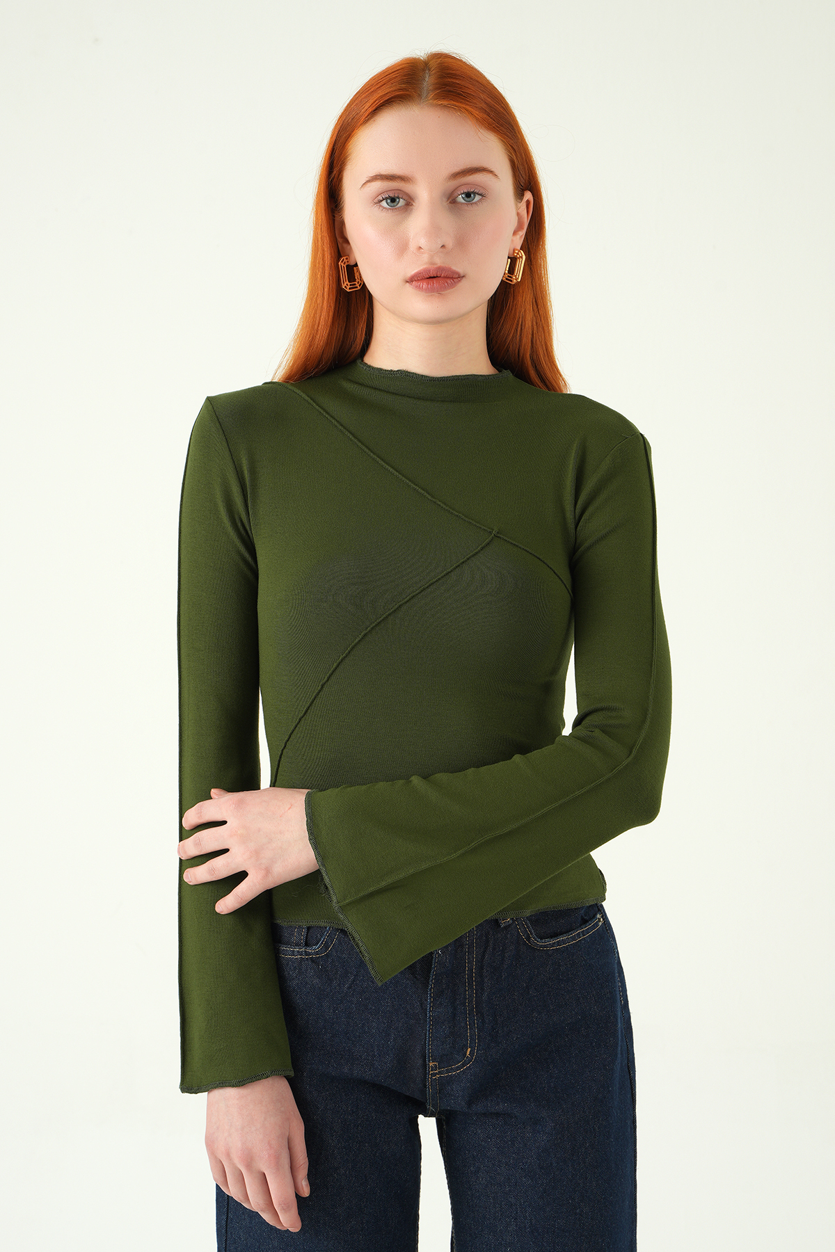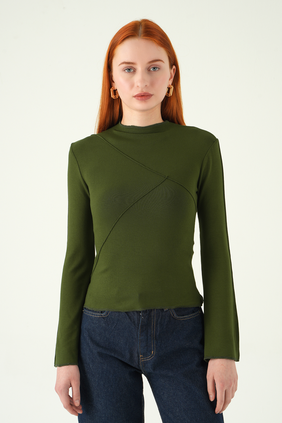 8238A Bisiklet Yaka Ön Çimalı Bluz Haki