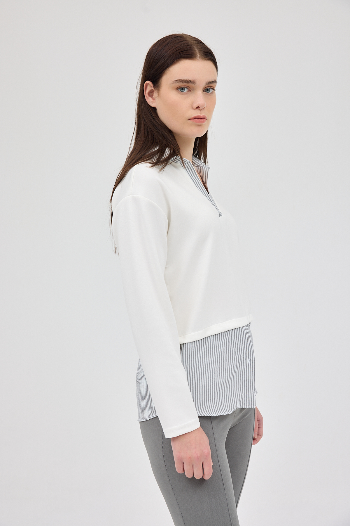 251181 Bisiklet Yaka Kat Kat Bluz Ekru - RAYS 251181 Bisiklet Yaka Kat Kat Bluz Ekru - RAYS (1)