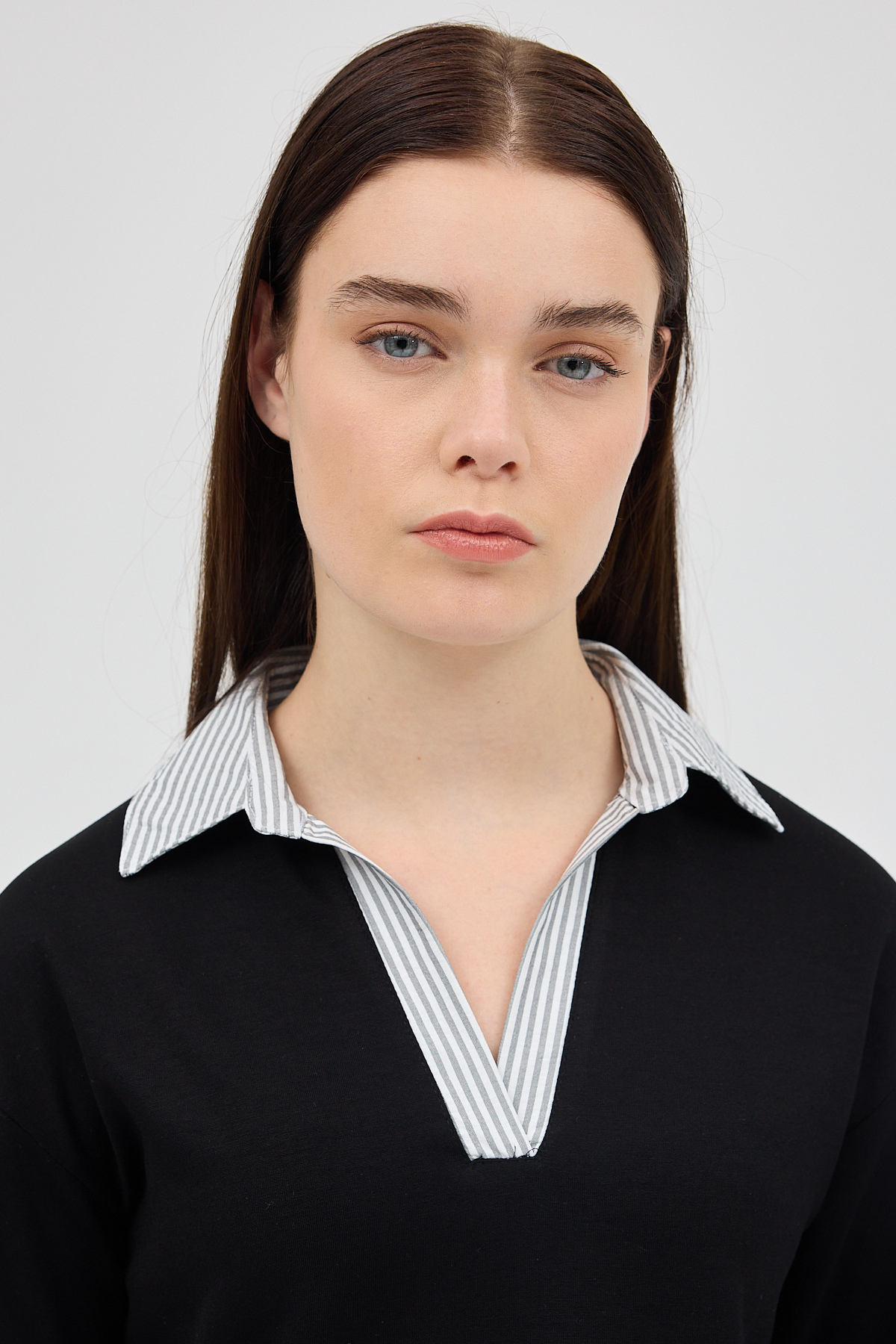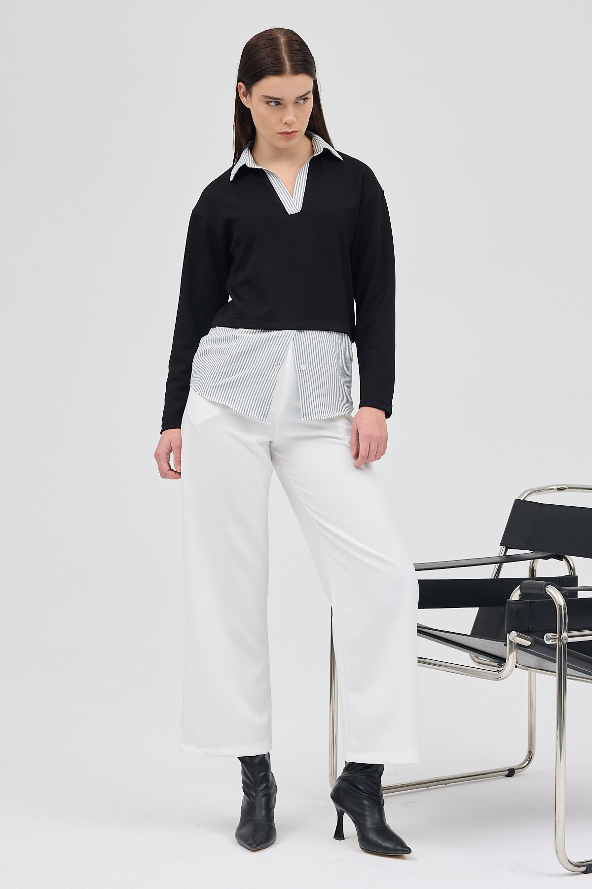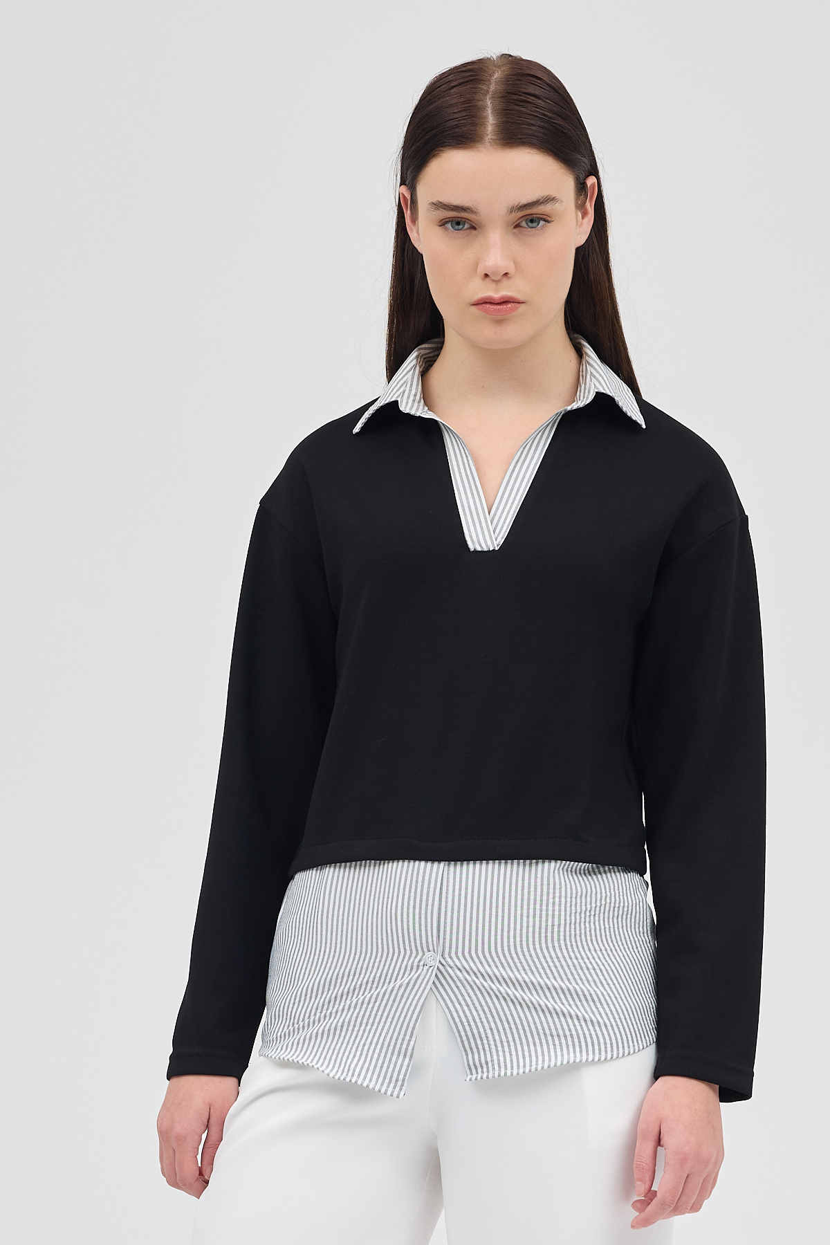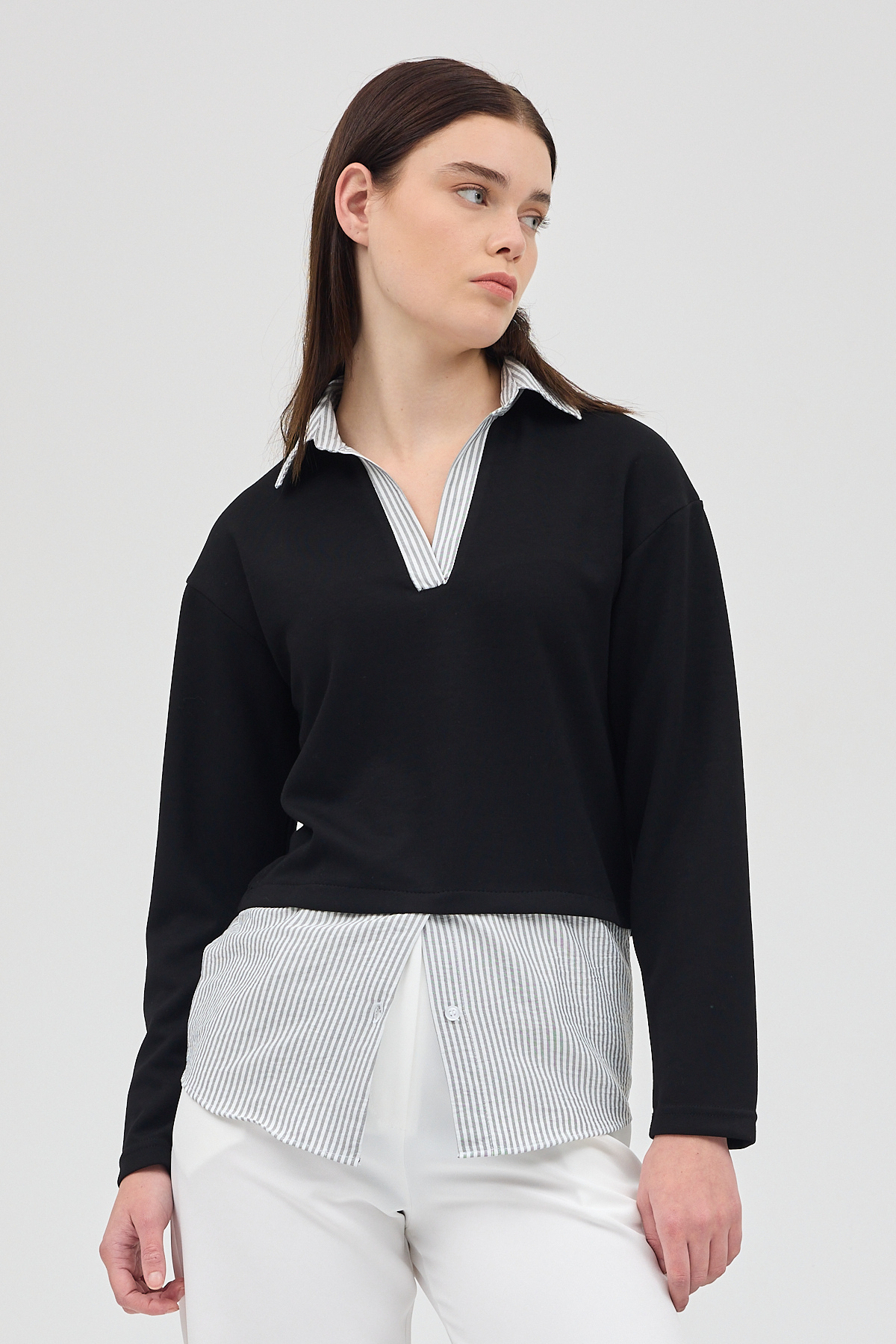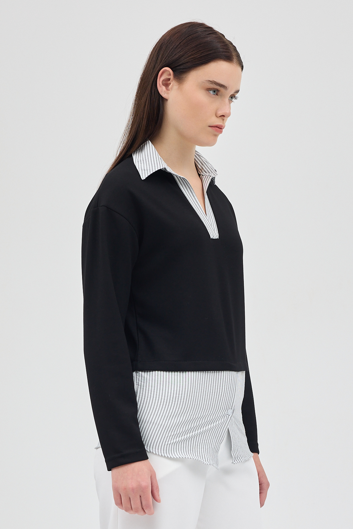 Siyah Gömlek Yaka Detaylı Triko Bluz 8241A