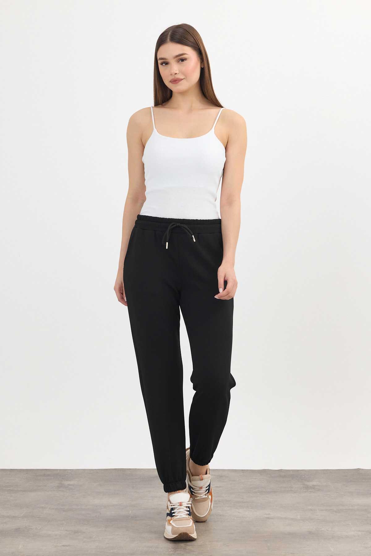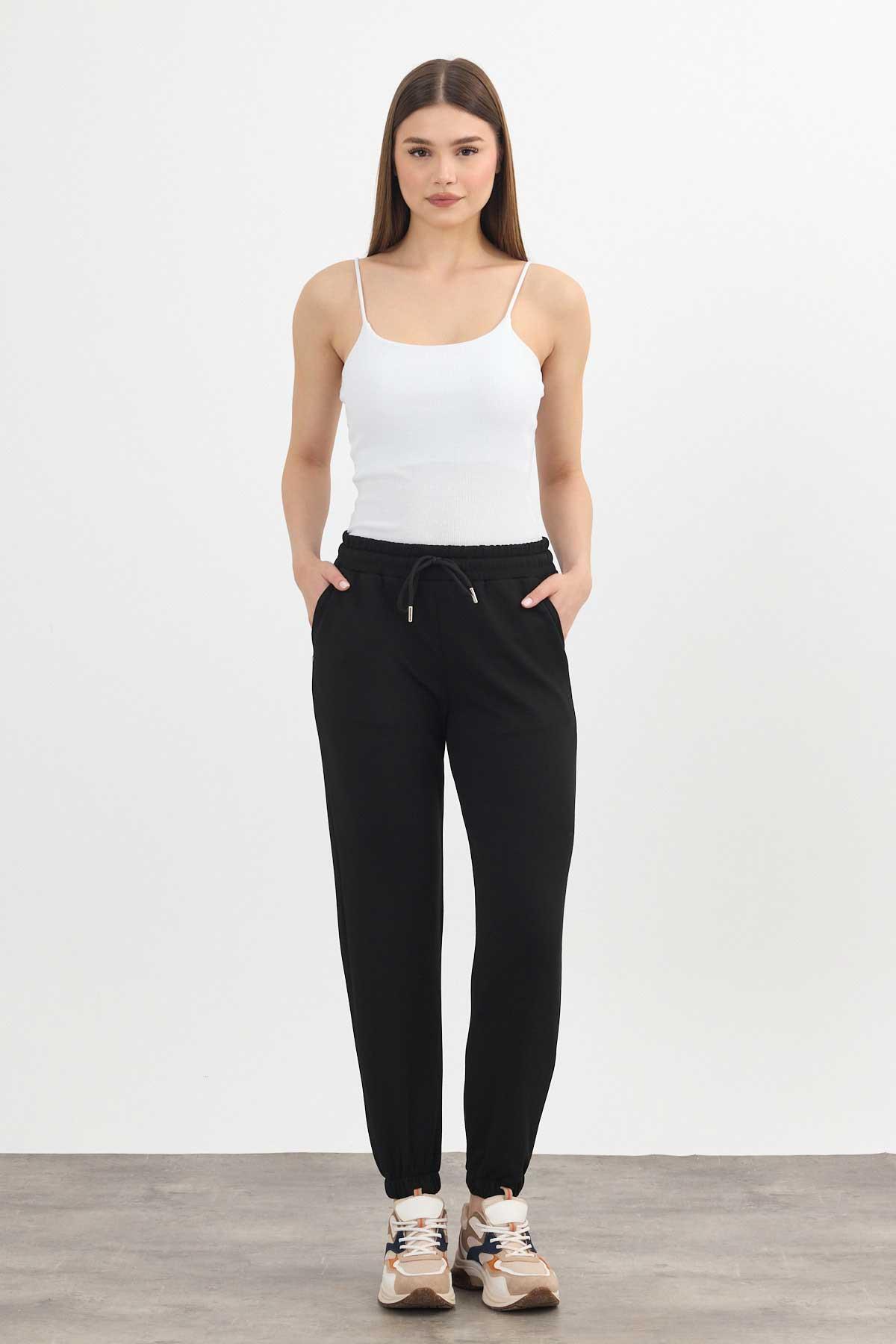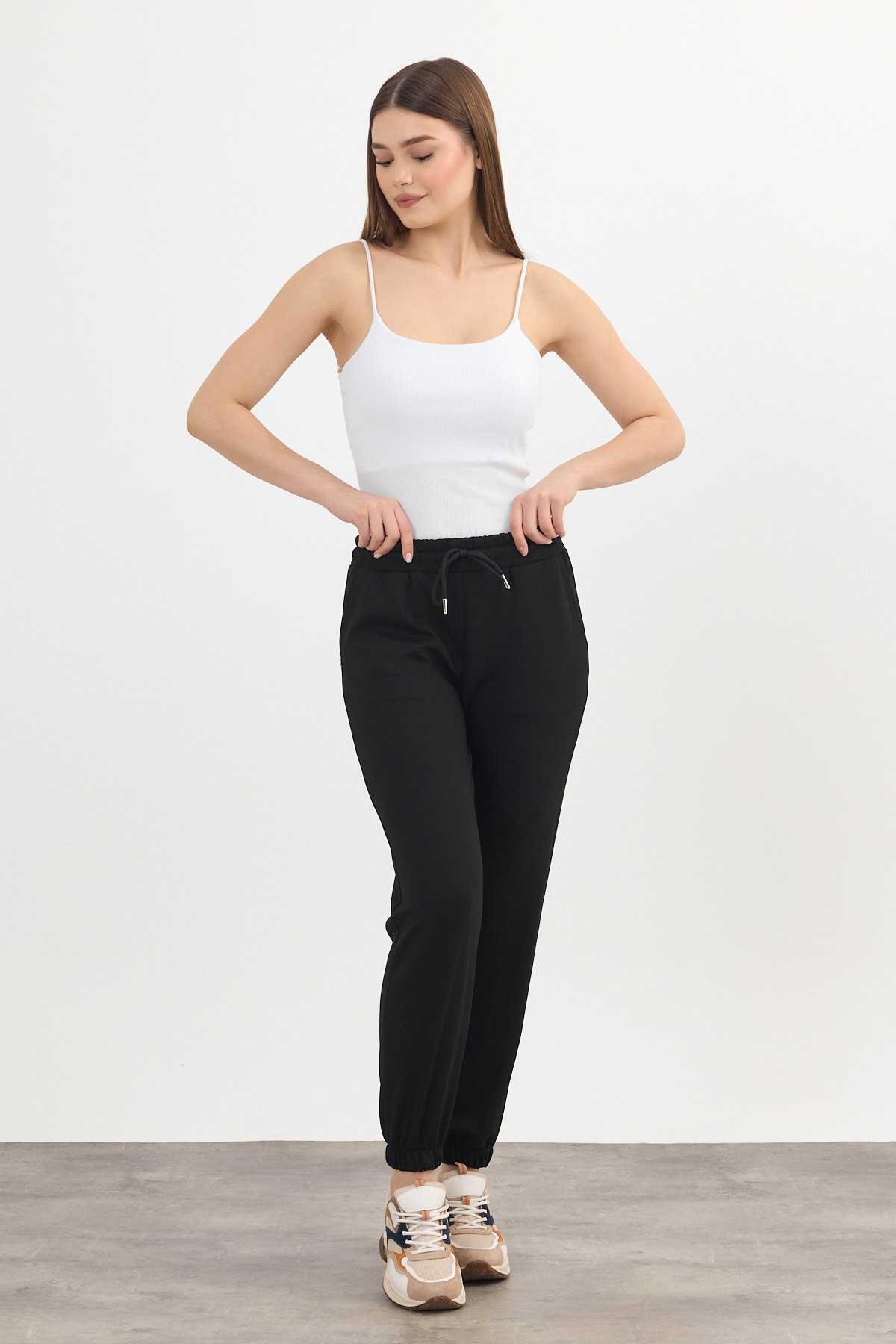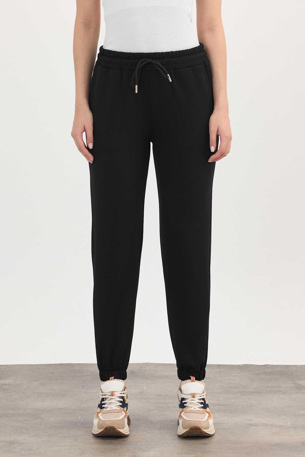 Yumuşak Dokulu Esnek Premium Kumaş Rahat Kalıp Eşofman Altı Siyah - 8242