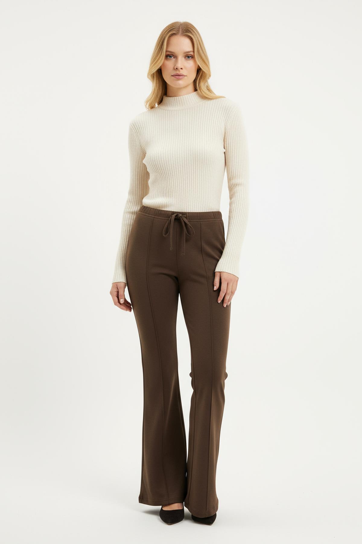 8246A İspanyol Paça Bel Lastikli Pantolon Kahve