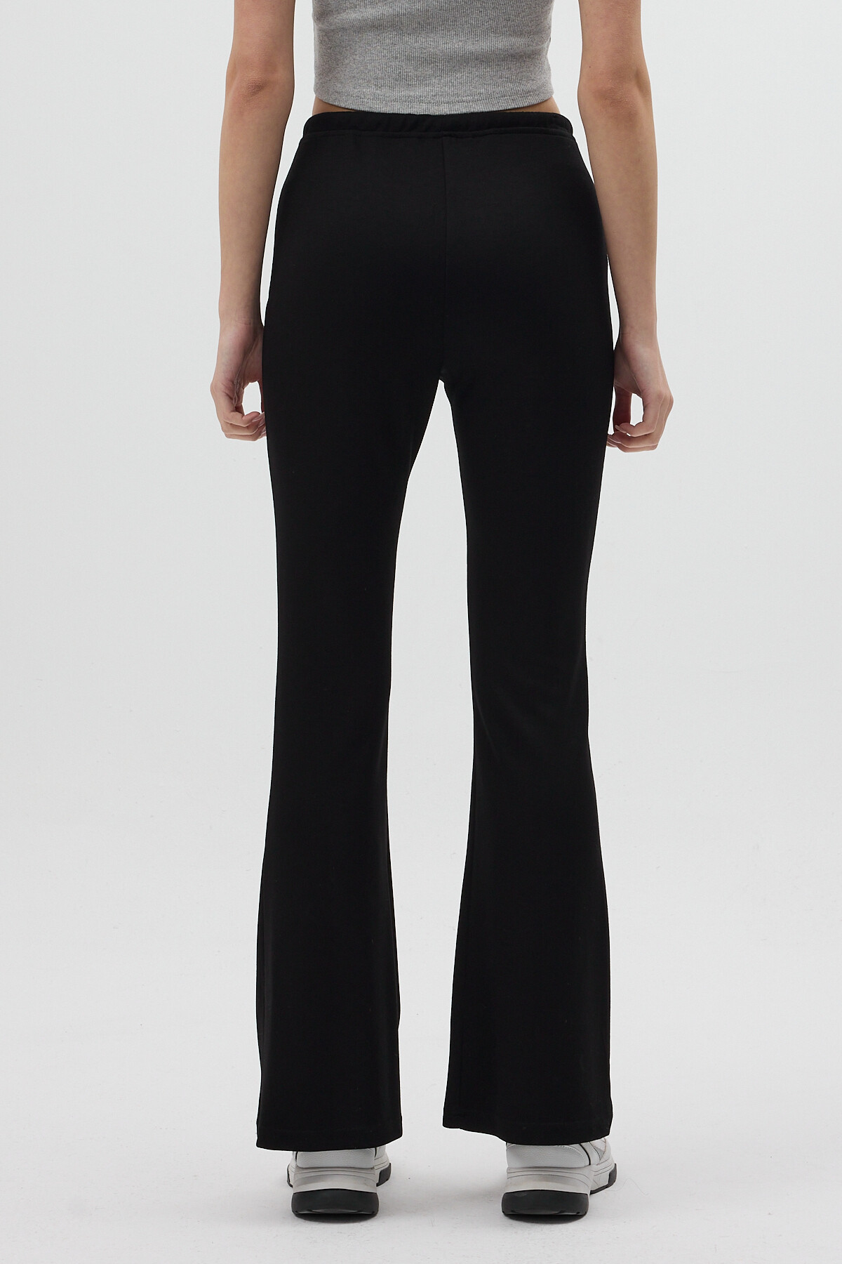 Siyah Geniş Paça Beli Bağcıklı Kadın Pantolon 8246A