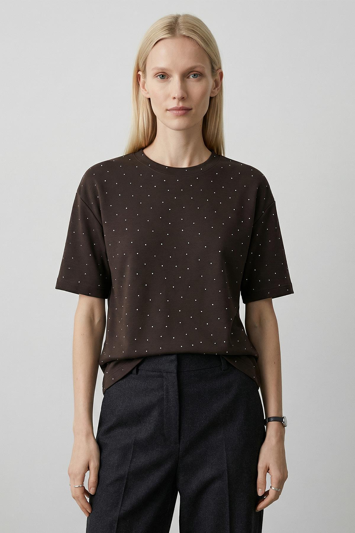 Acı Kahve Taşlı Bisiklet Yaka Tişört 8255