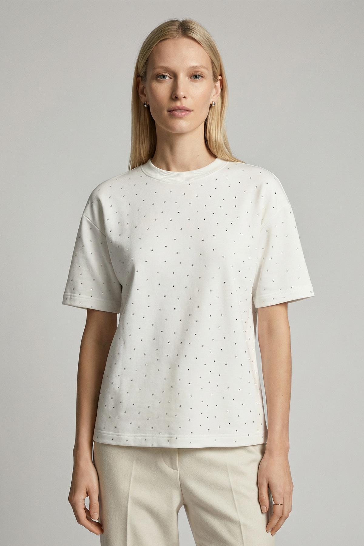 Ekru Taşlı Bisiklet Yaka Tişört 8255