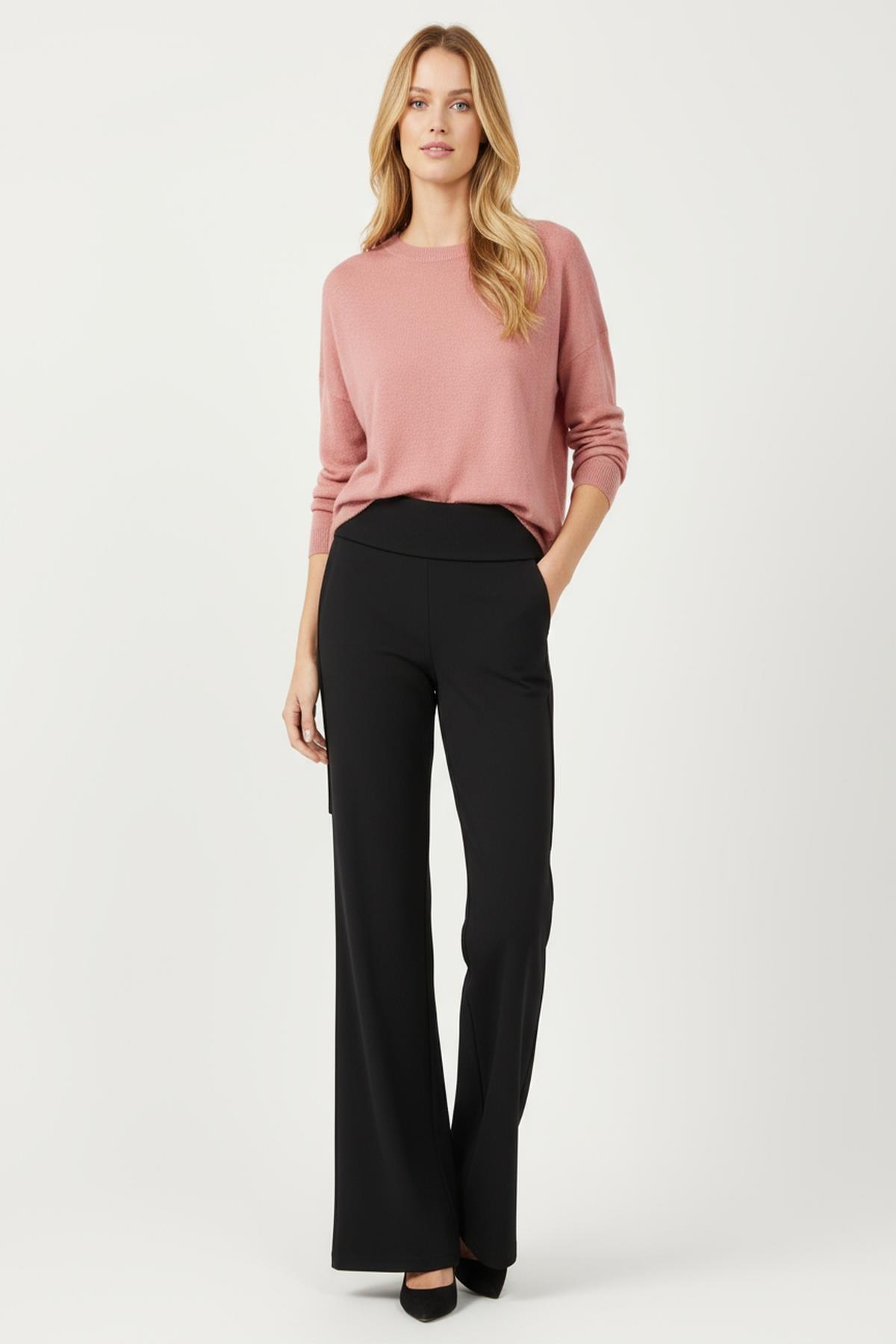 8246A İspanyol Paça Bel Lastikli Pantolon Siyah