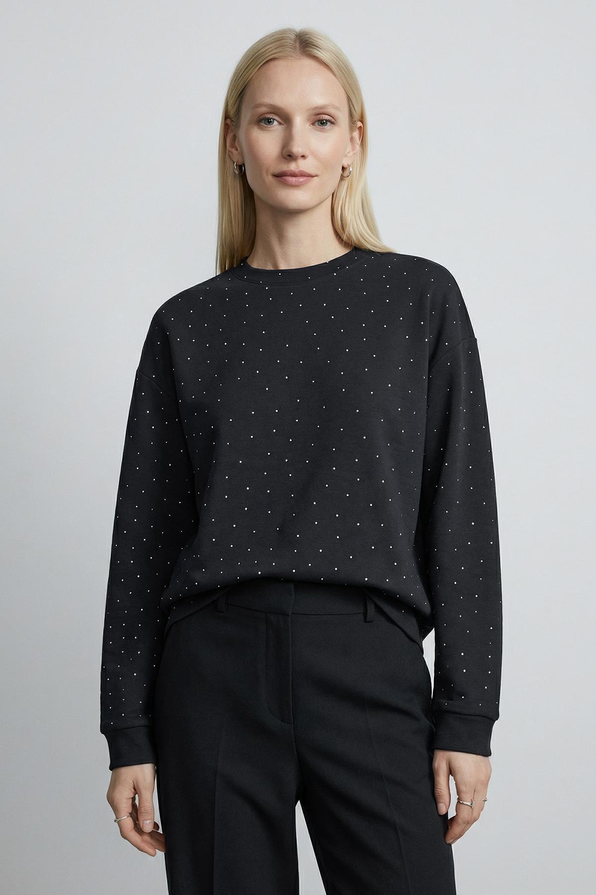 Siyah Taşlı Uzun Kol Bluz 8256