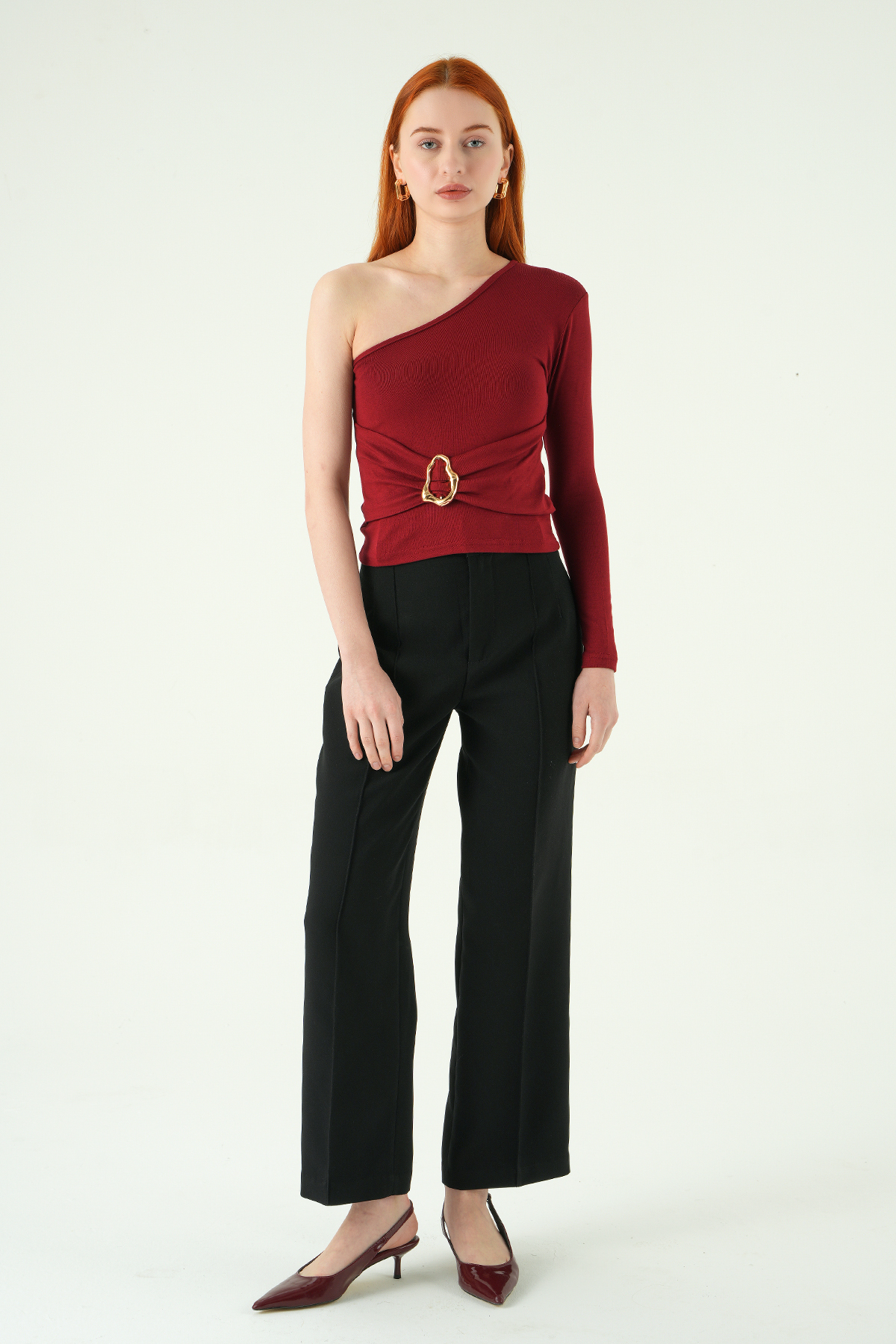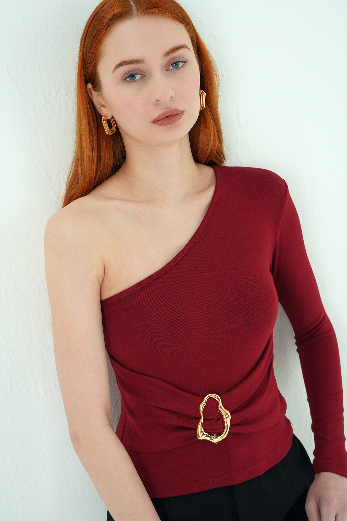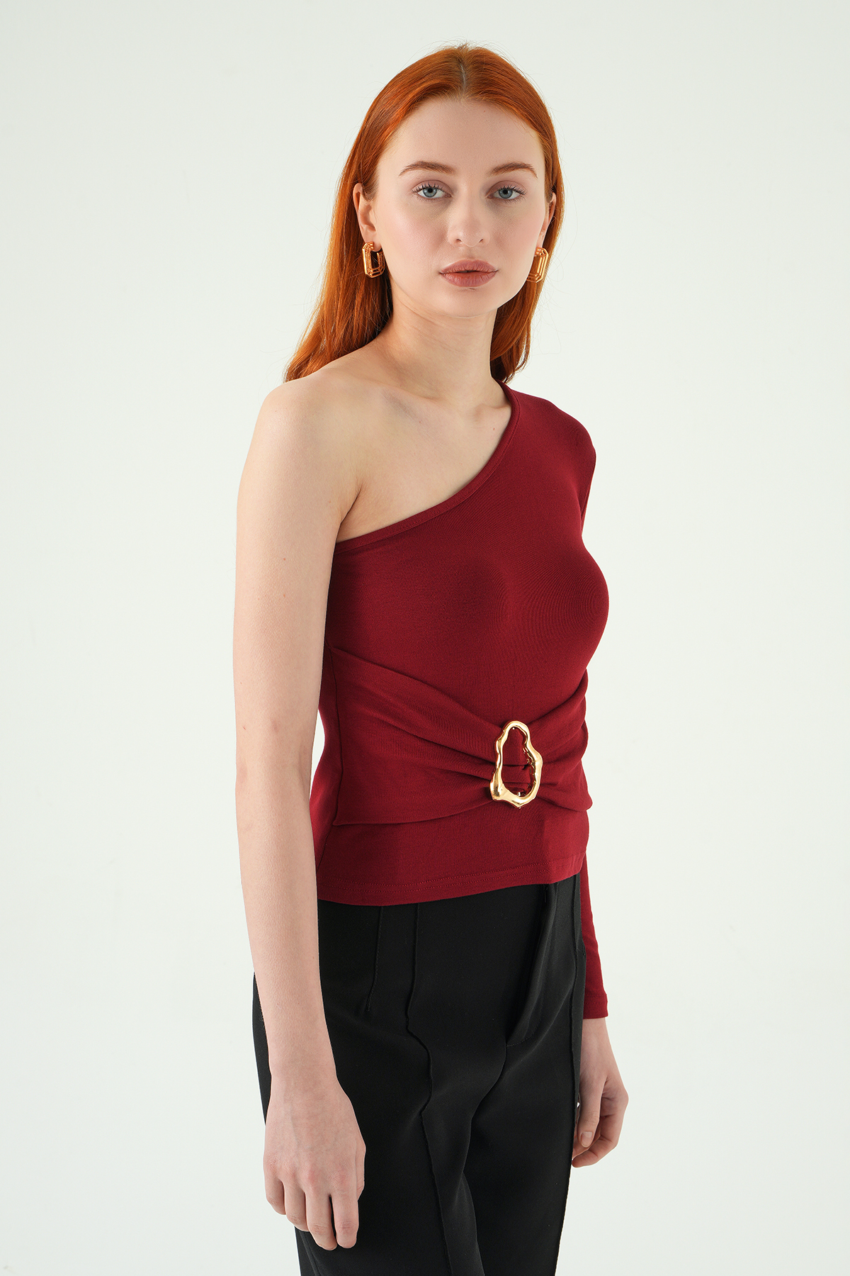 8261A Tek Kol Tokalı Bluz Bordo