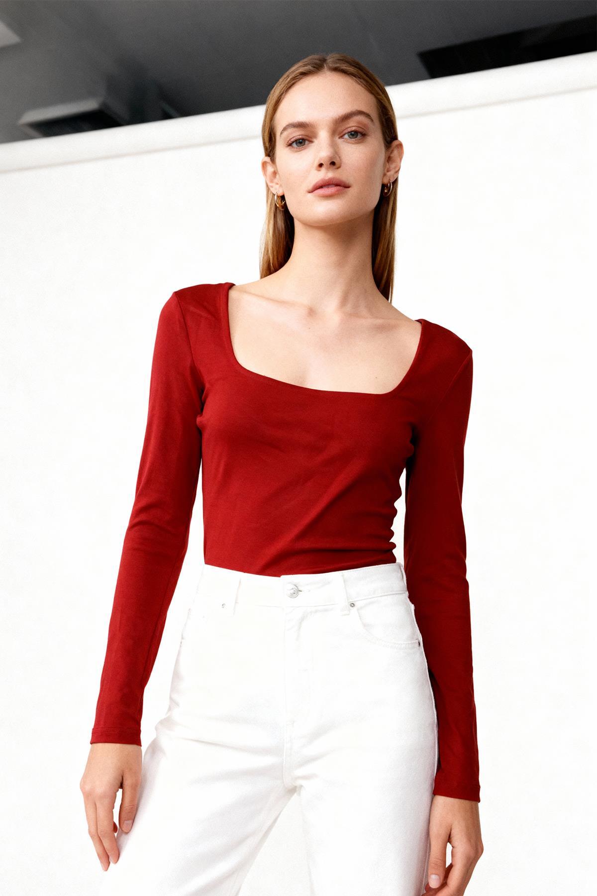 8264A Bisiklet Yaka Kurdeleli Badi Bordo