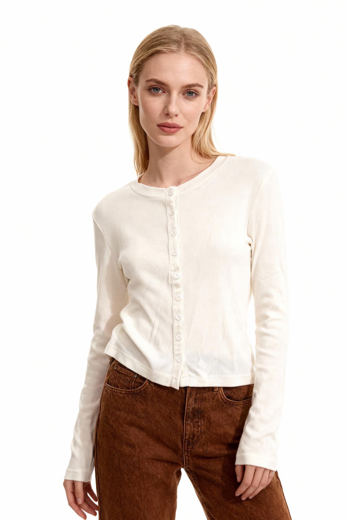 8270A Ön Düğmeli Uzun Kol Badi Ekru