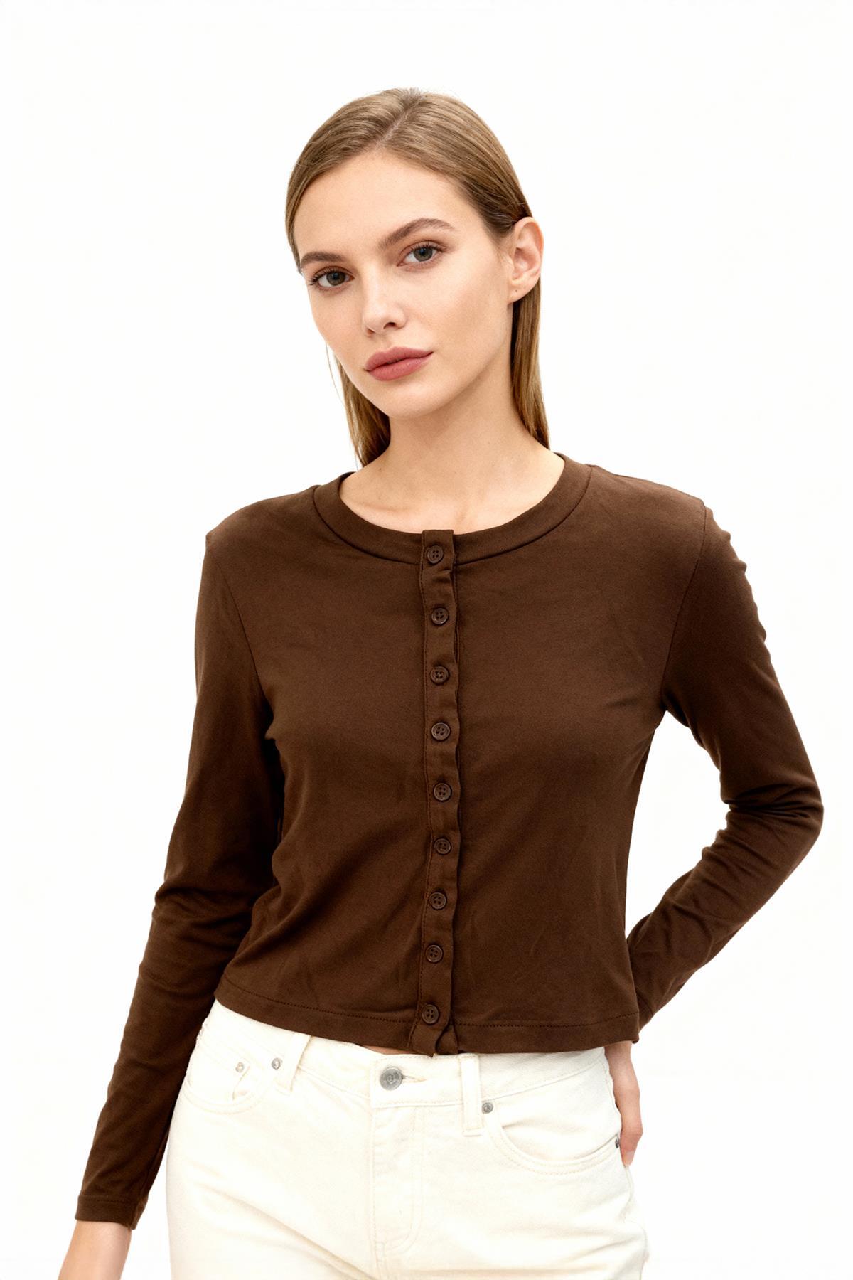 8270A Ön Düğmeli Uzun Kol Badi Kahve