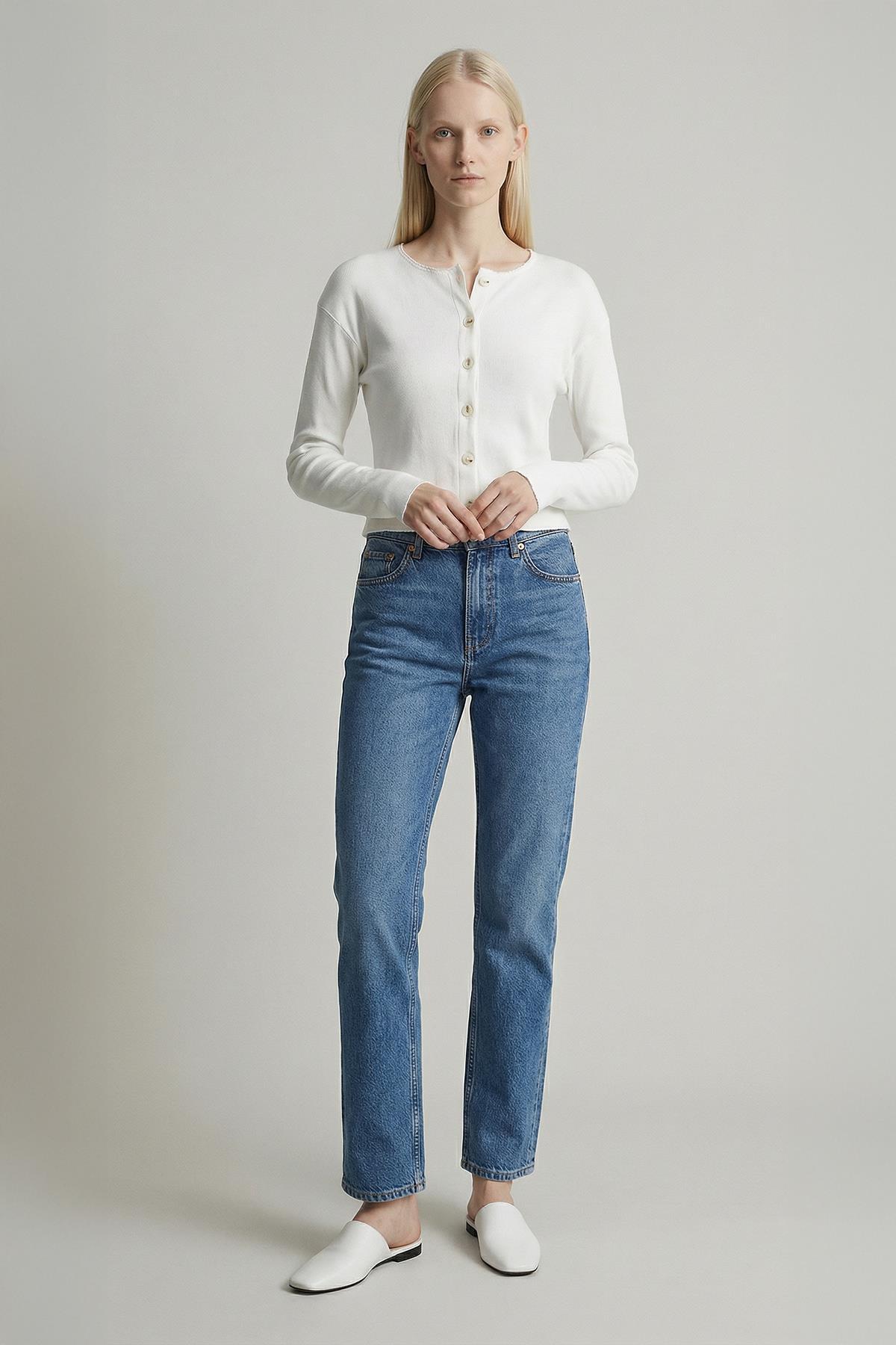 8273A Düğmeli Bisiklet Yaka Bluz Ekru