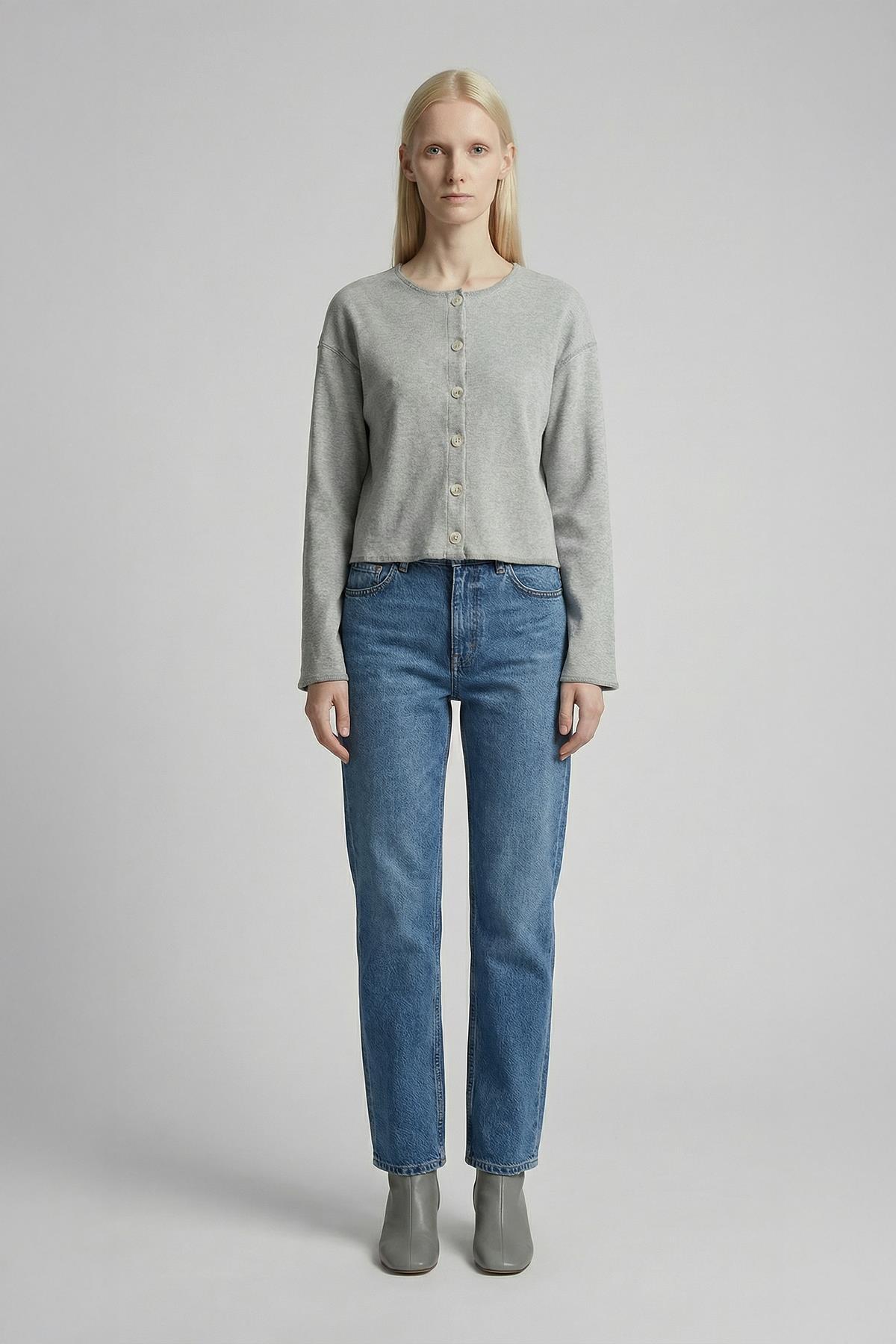 8273A Düğmeli Bisiklet Yaka Bluz Gri