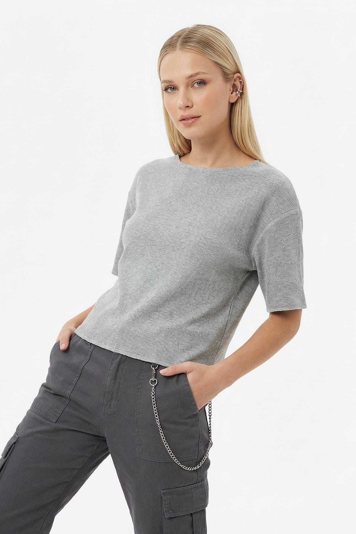 8274A Bisiklet Yaka Kısa Kol Tişört Gri