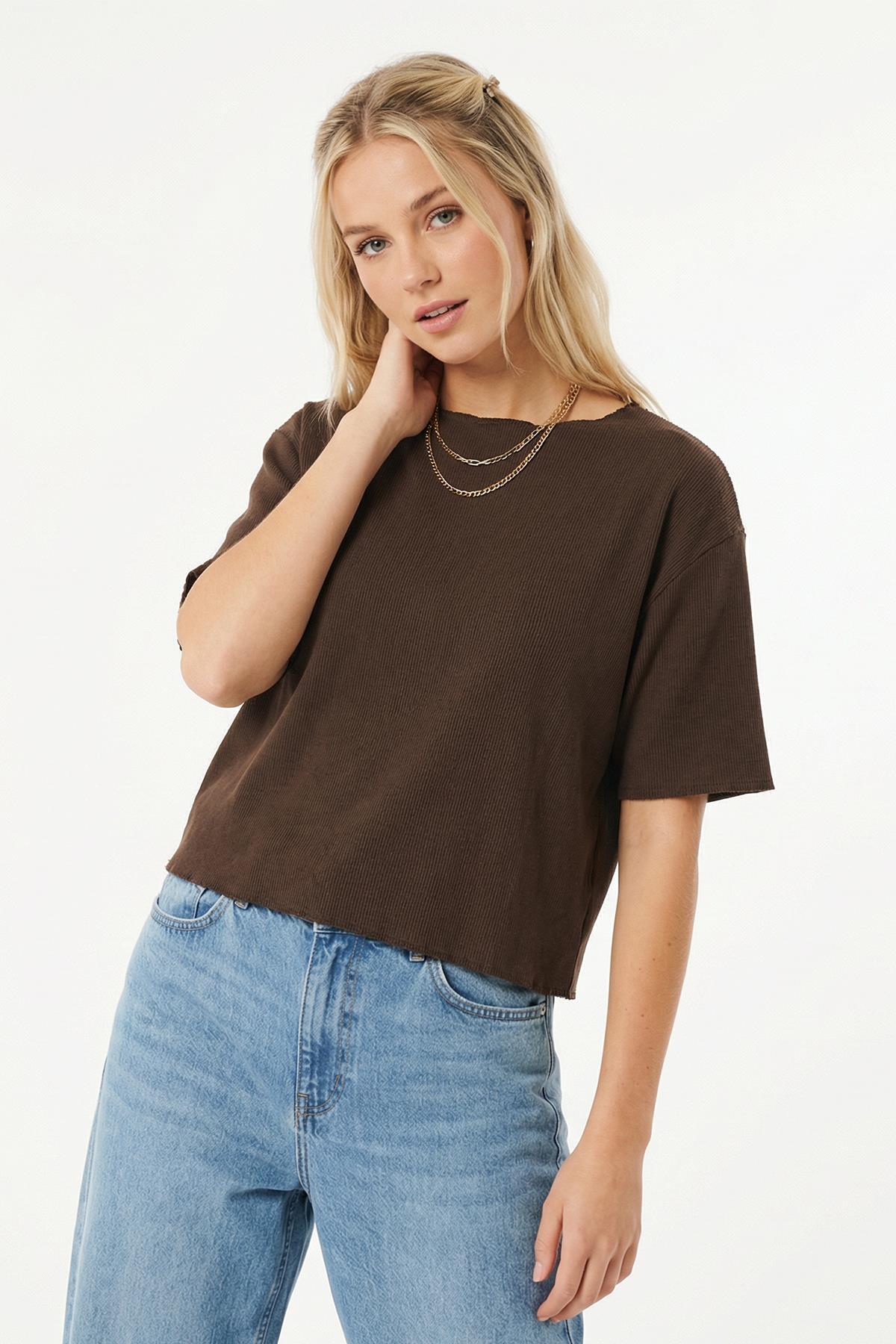 8274A Bisiklet Yaka Kısa Kol Tişört Kahve