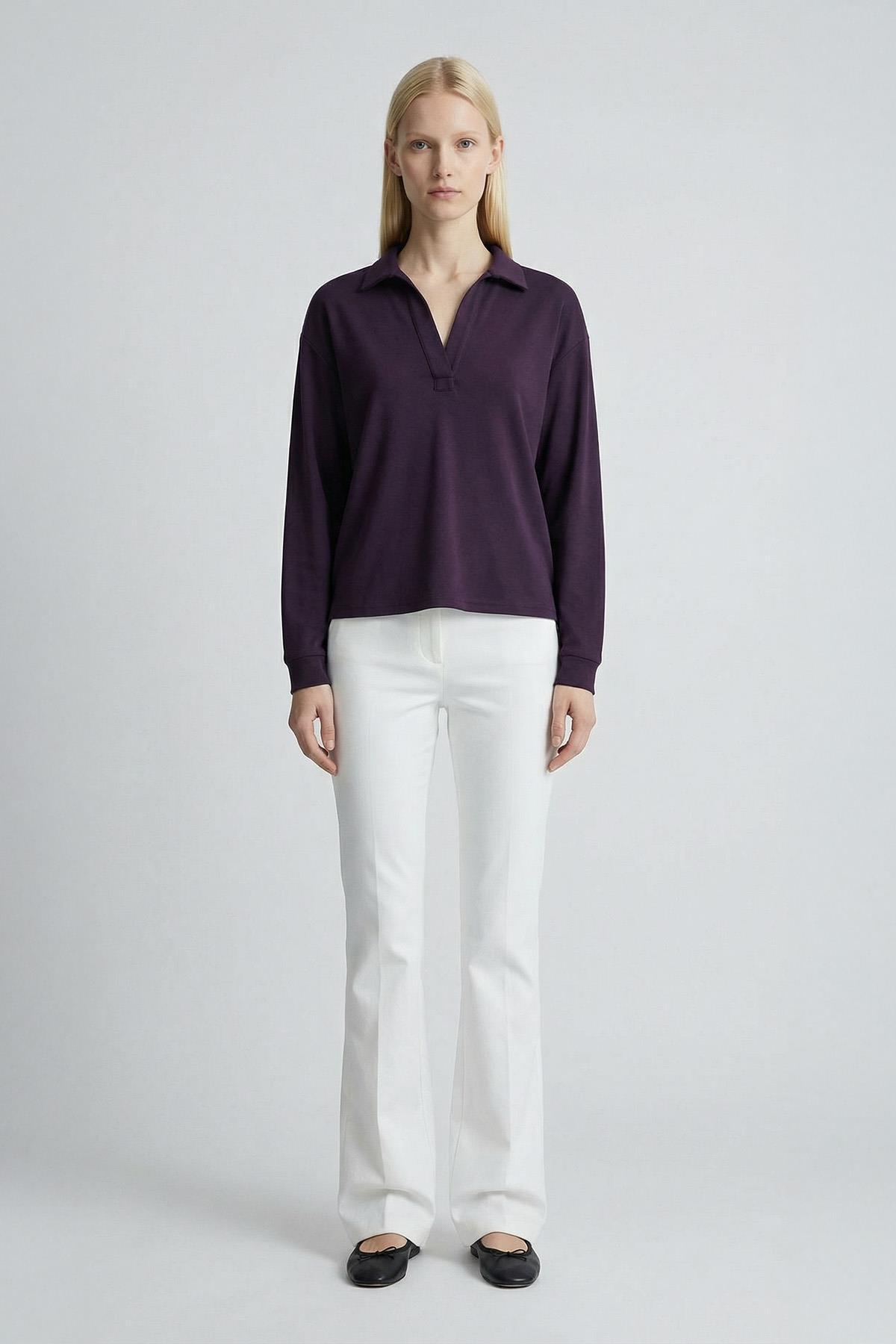 8275A GÖmlek Yaka Kazak Mürdüm