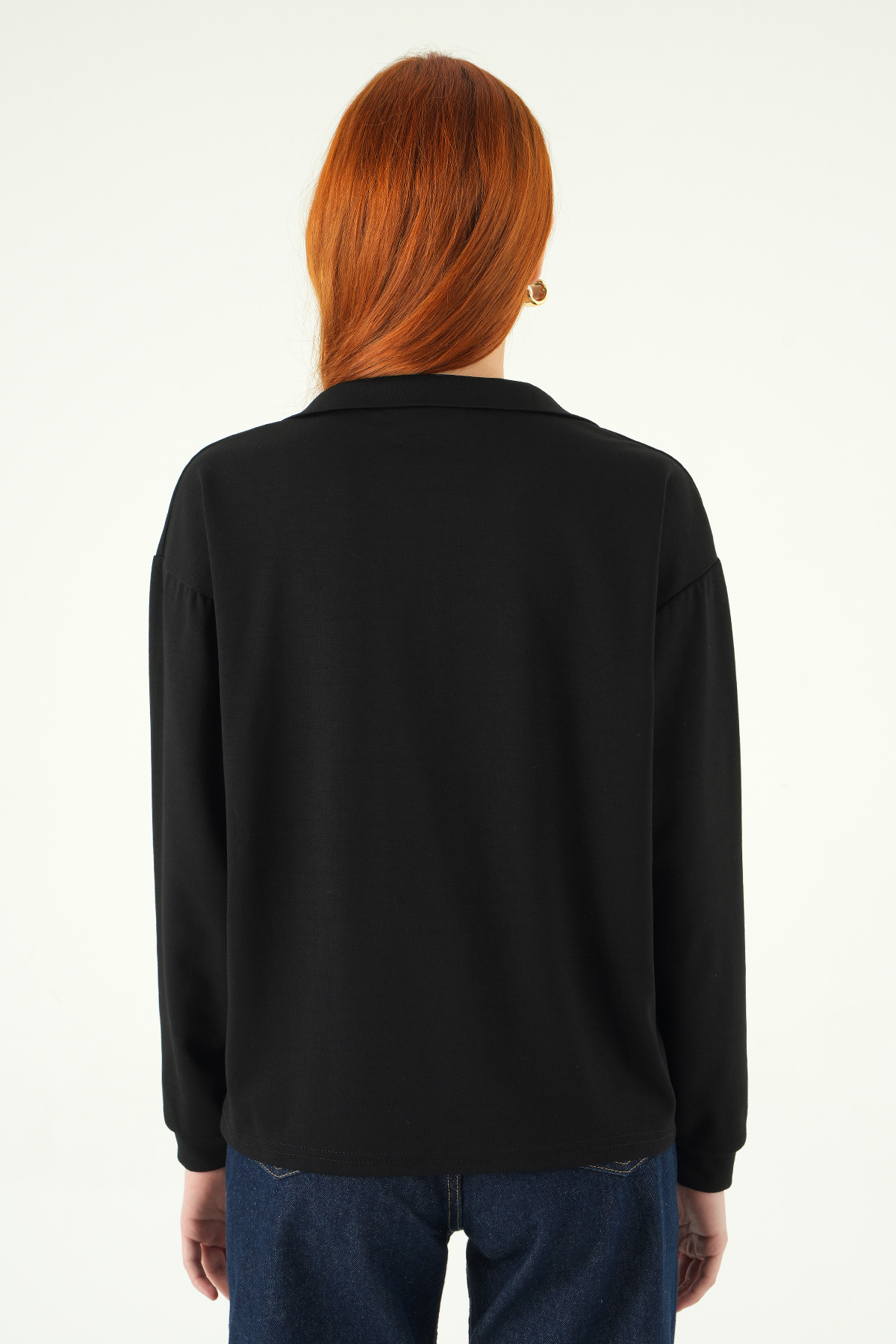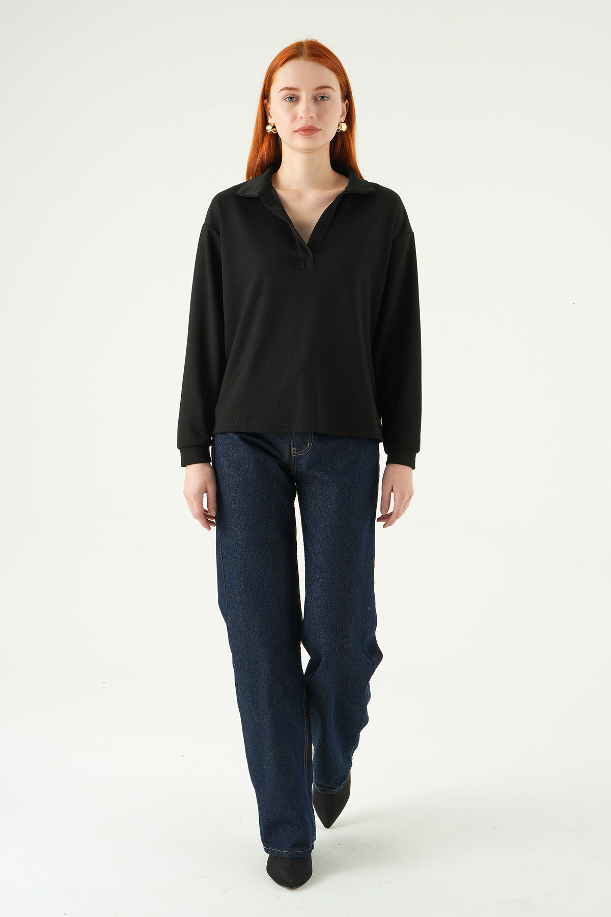 8275A Gömlek Yaka Sweat Siyah