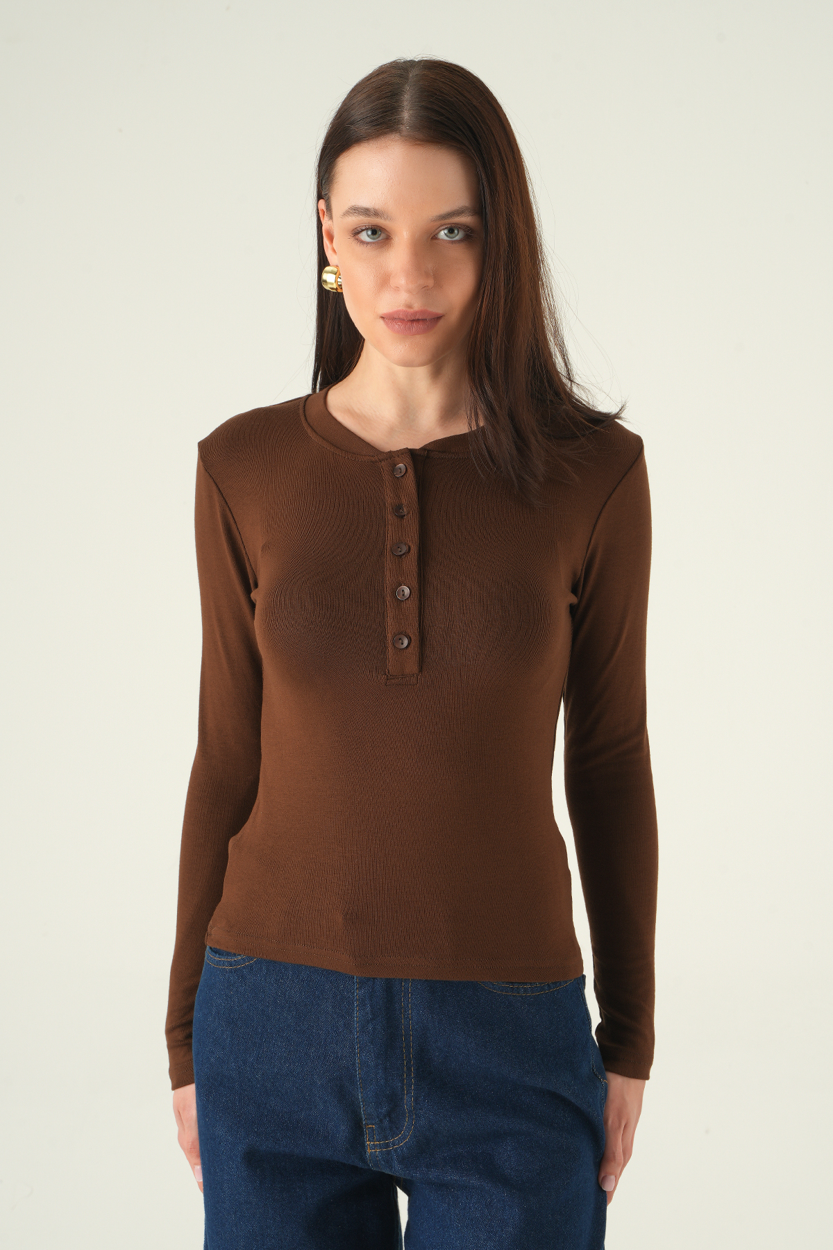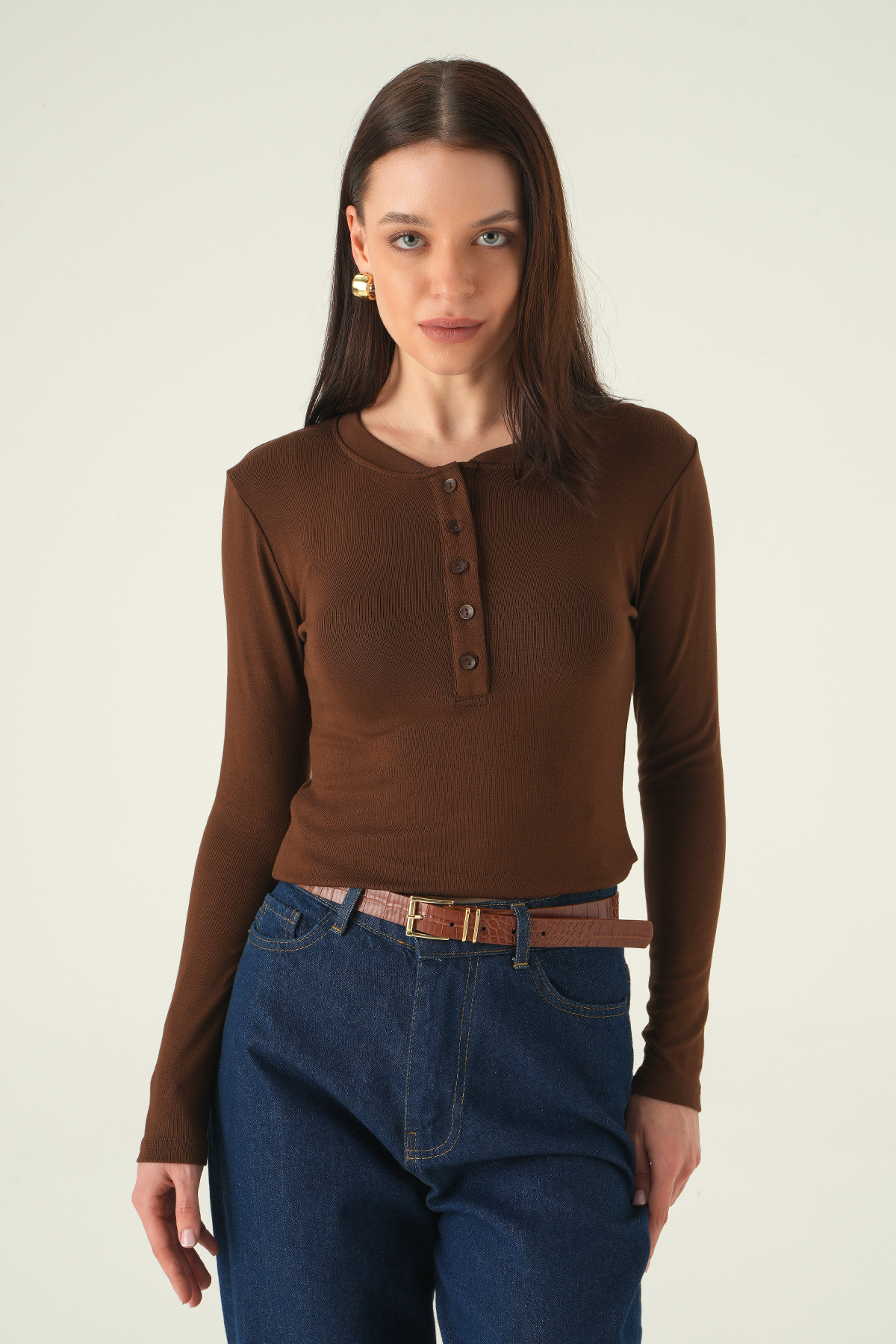 Kahve Ön Düğmeli Badi 8276A