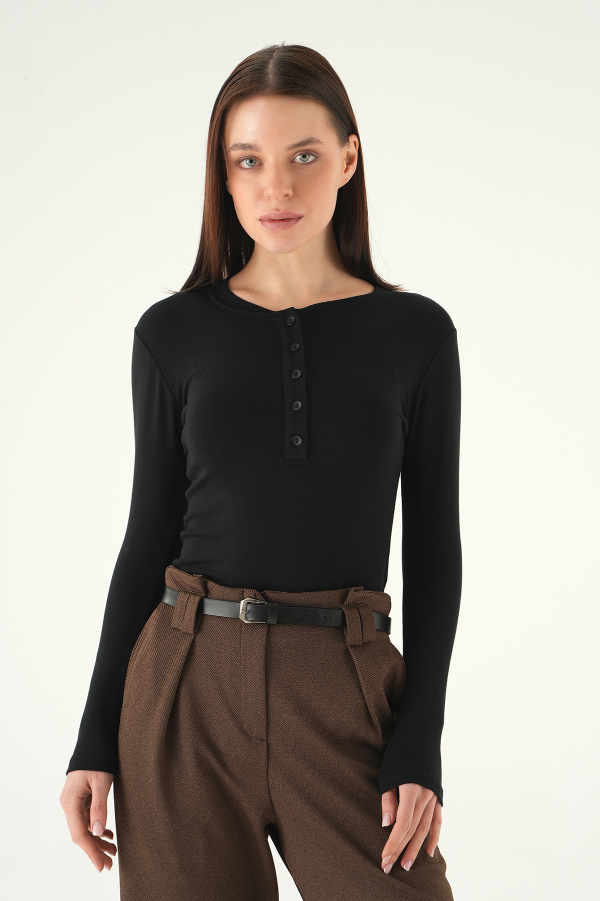 Siyah Ön Düğmeli Badi 8276A