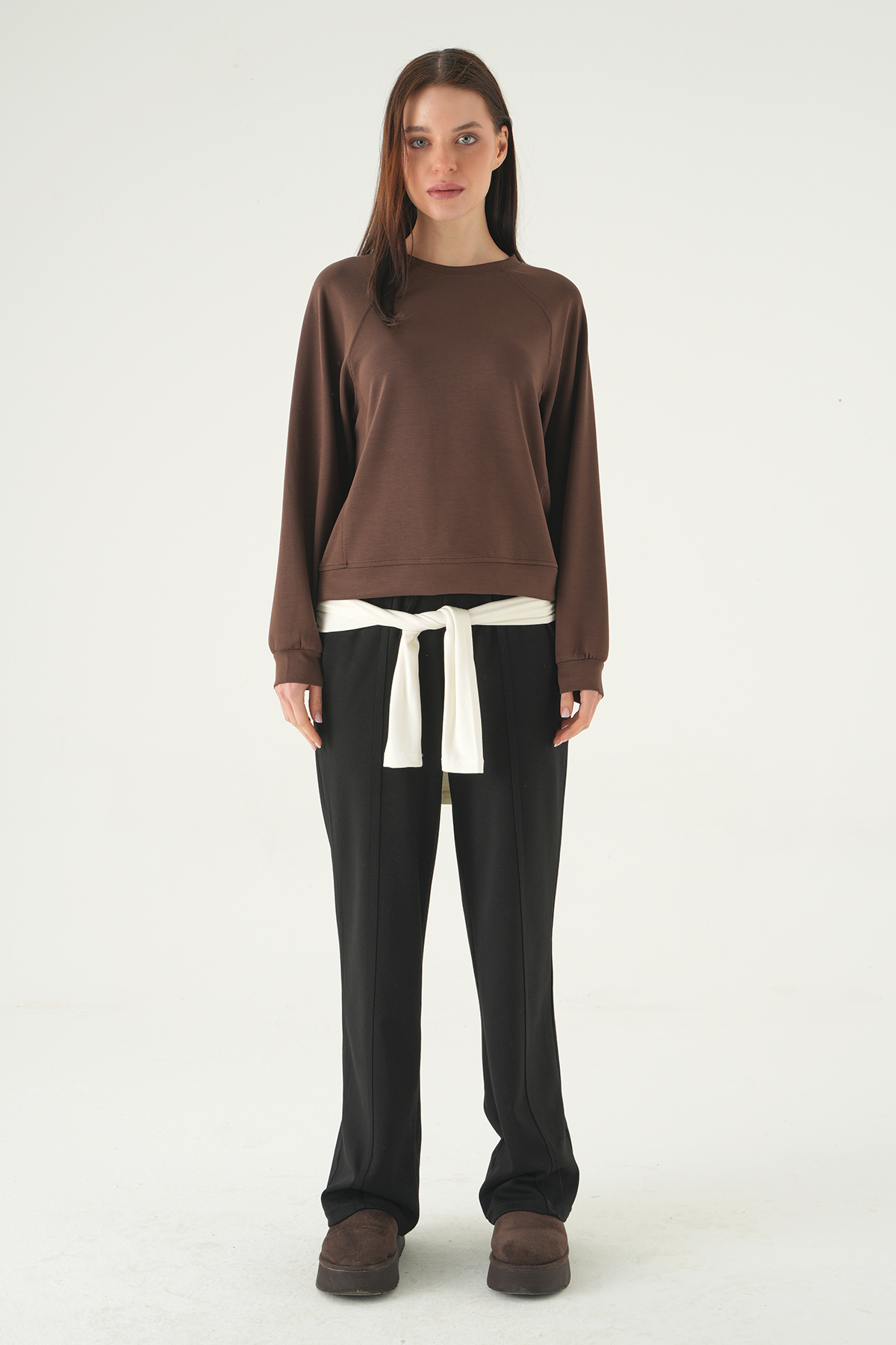 Kahve Bisiklet Yaka Sweat 8277A