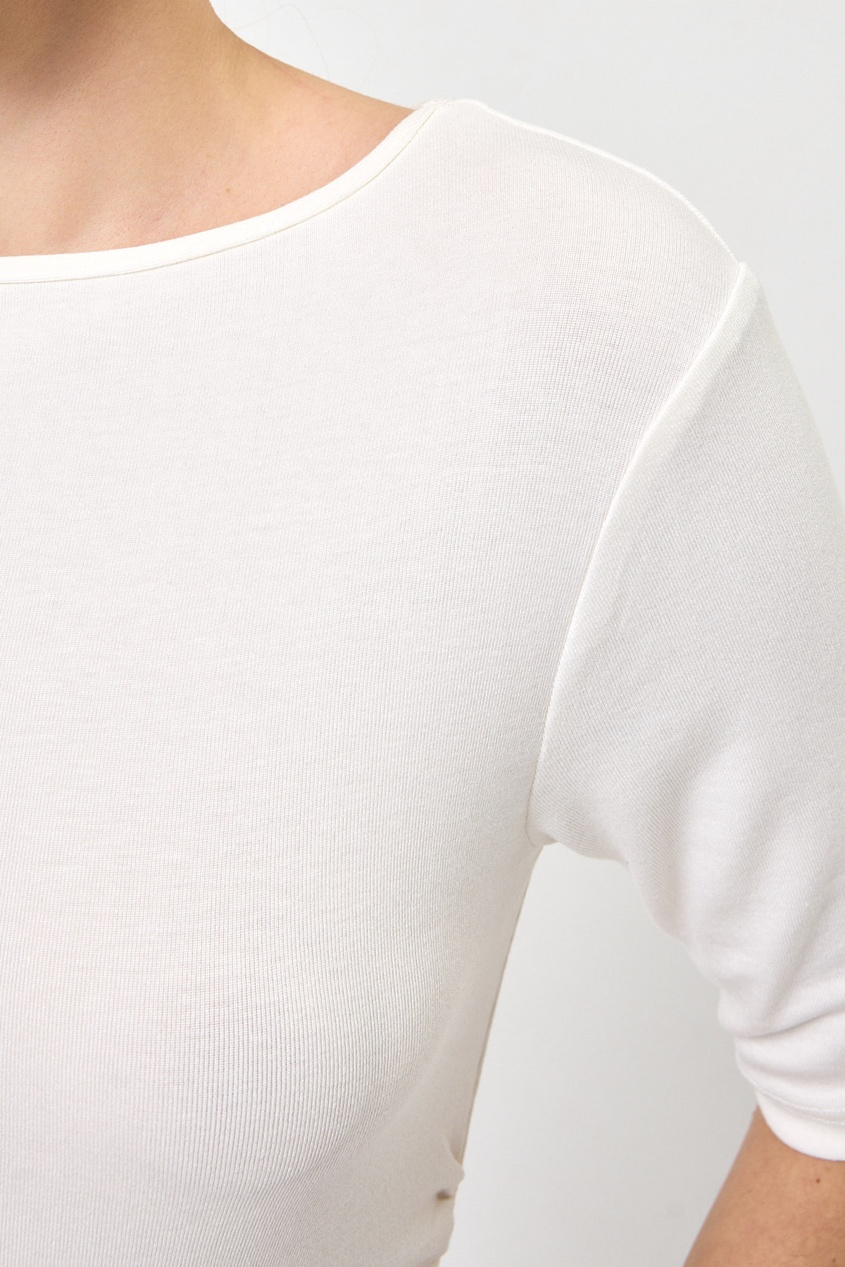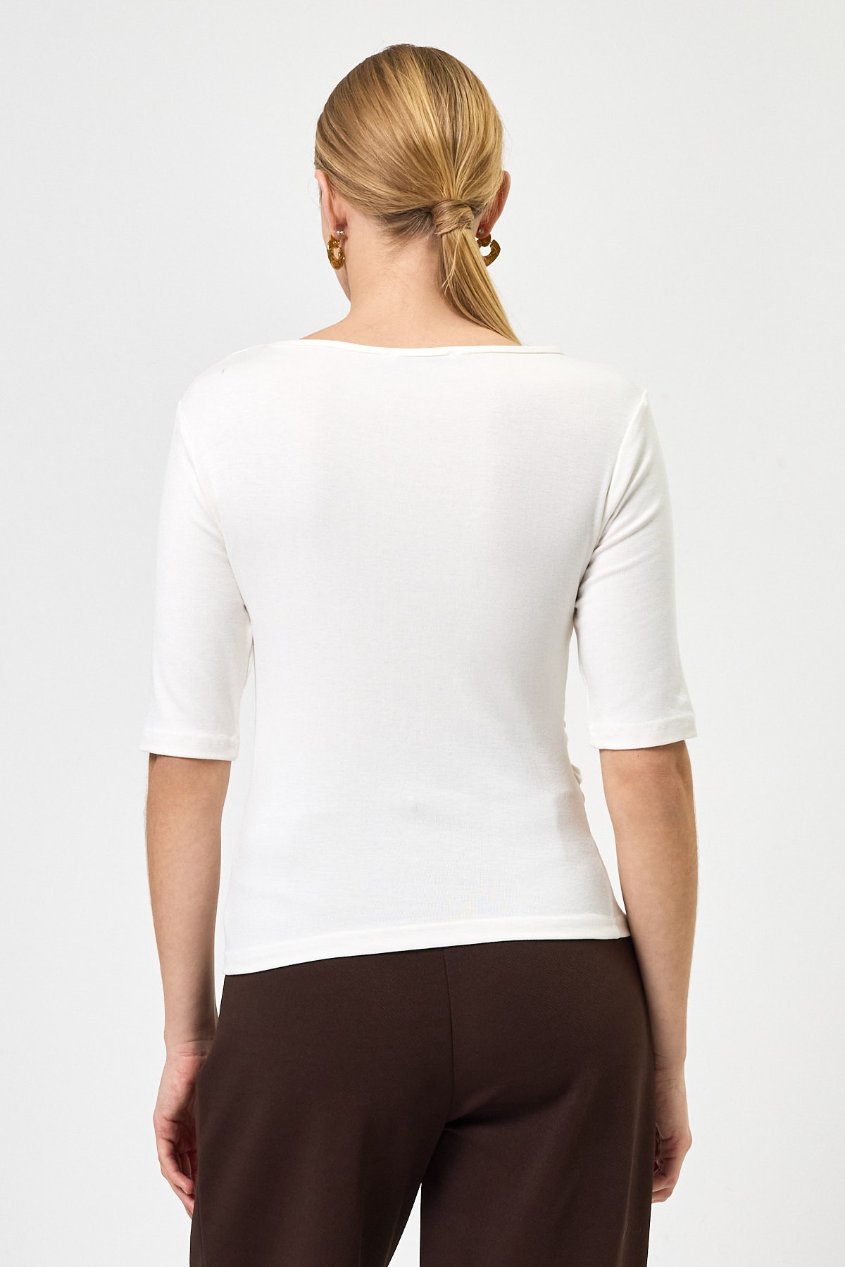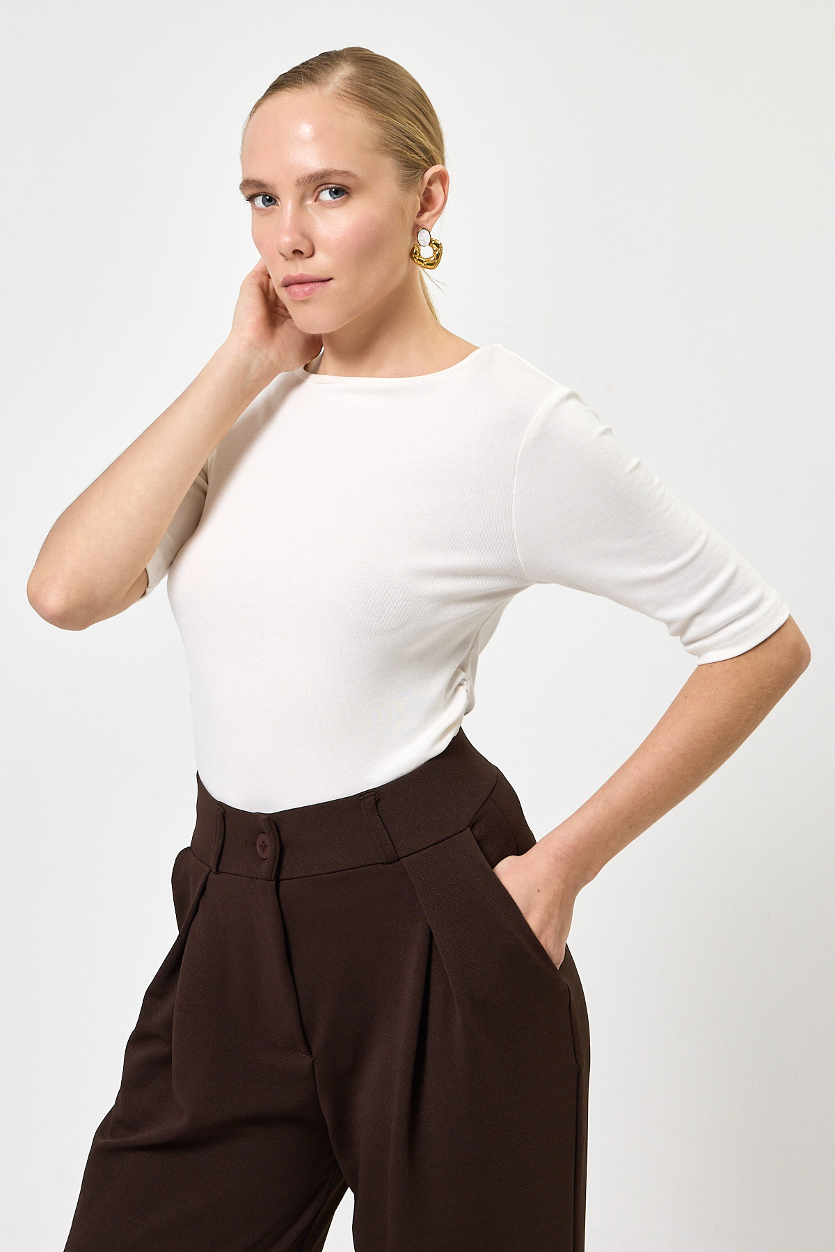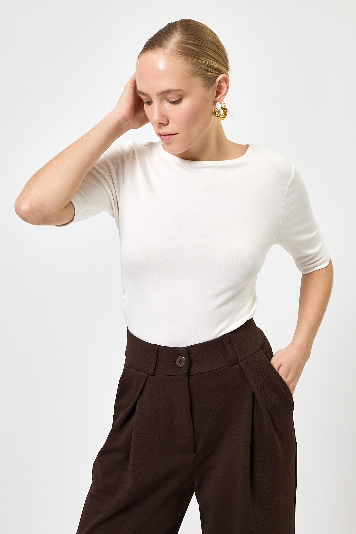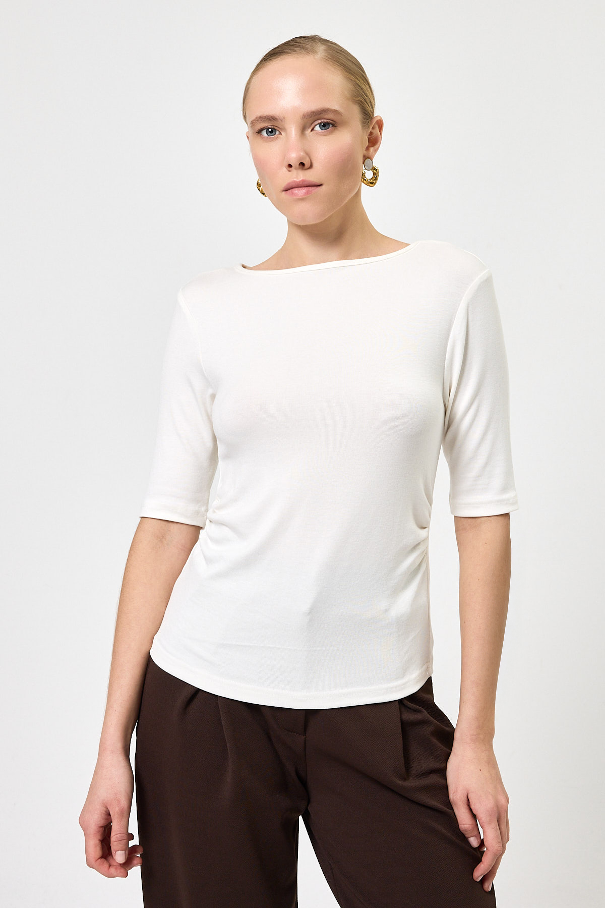 Ekru Bisiklet Yaka Ön Büzgülü Bluz 8279A
