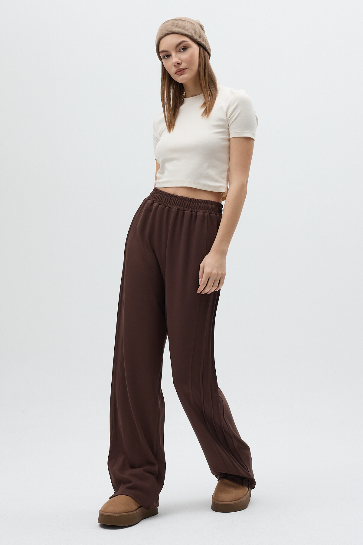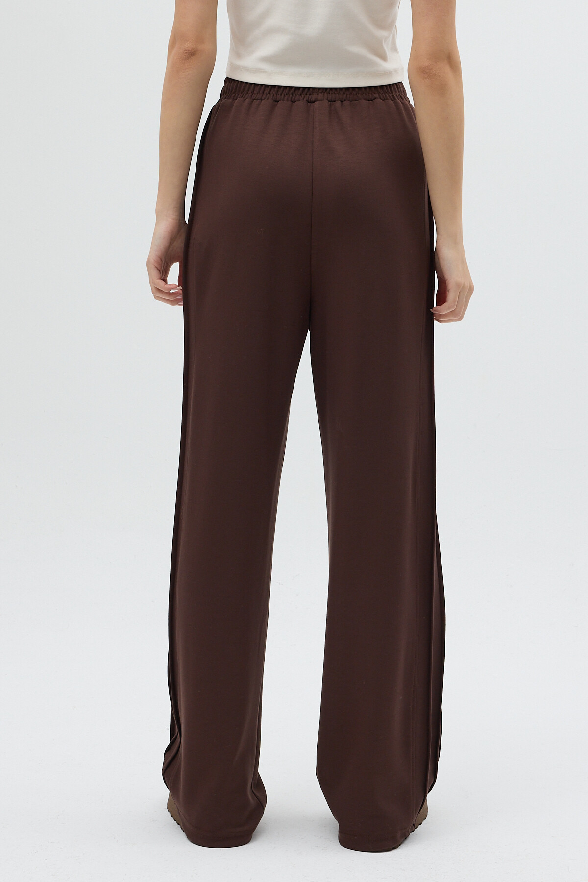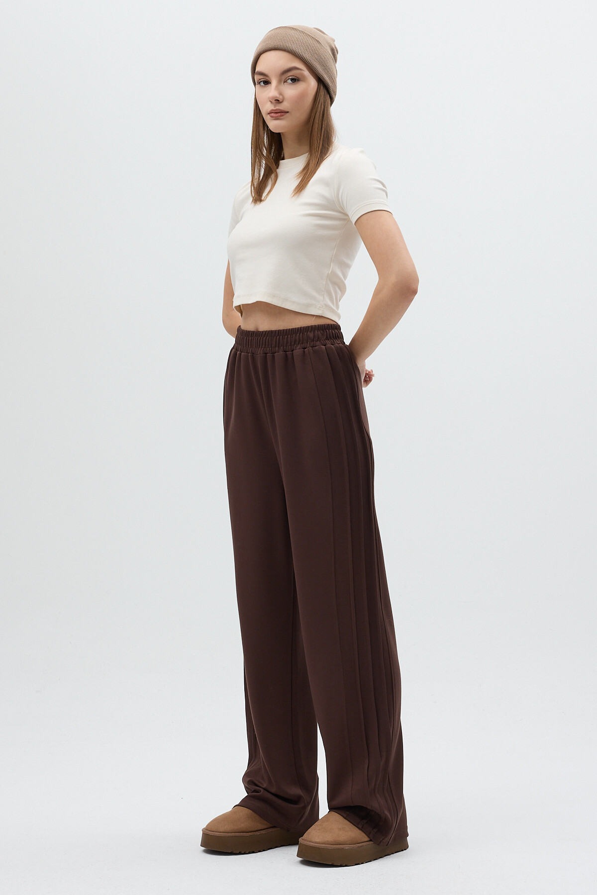 Kahverengi Yan Çimalı Dikiş Detaylı Yüksek Bel Kadın Eşofman Altı 8296A